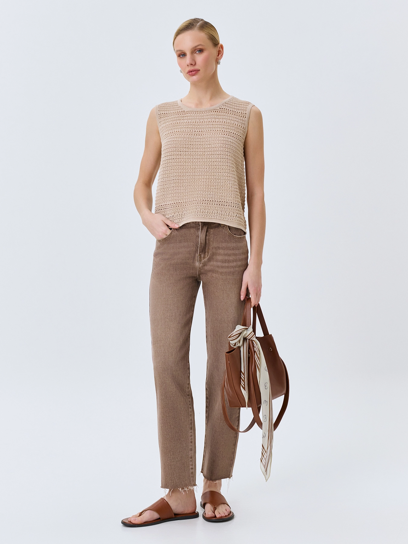 Бежевые джинсы с варкой