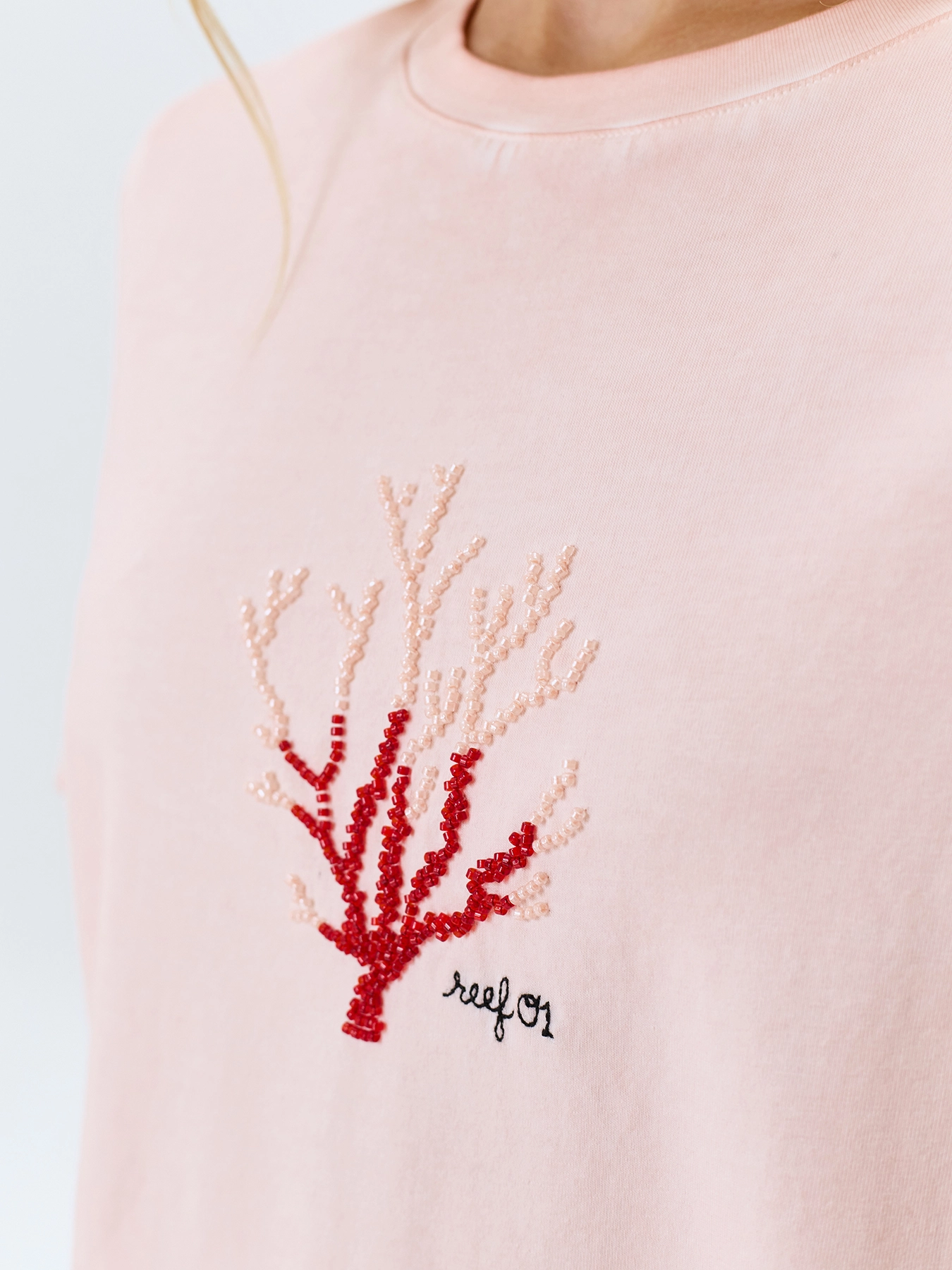 Футболка из хлопка с ручной вышивкой