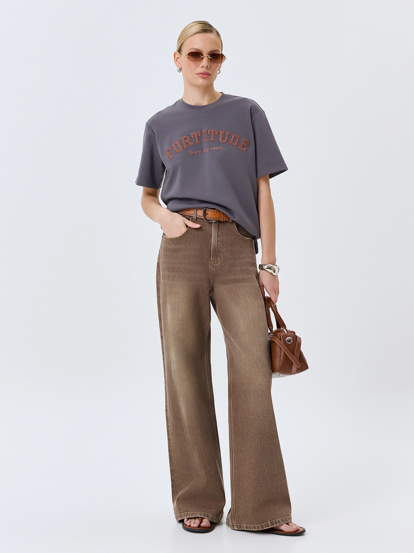 Широкие джинсы кофейного цвета