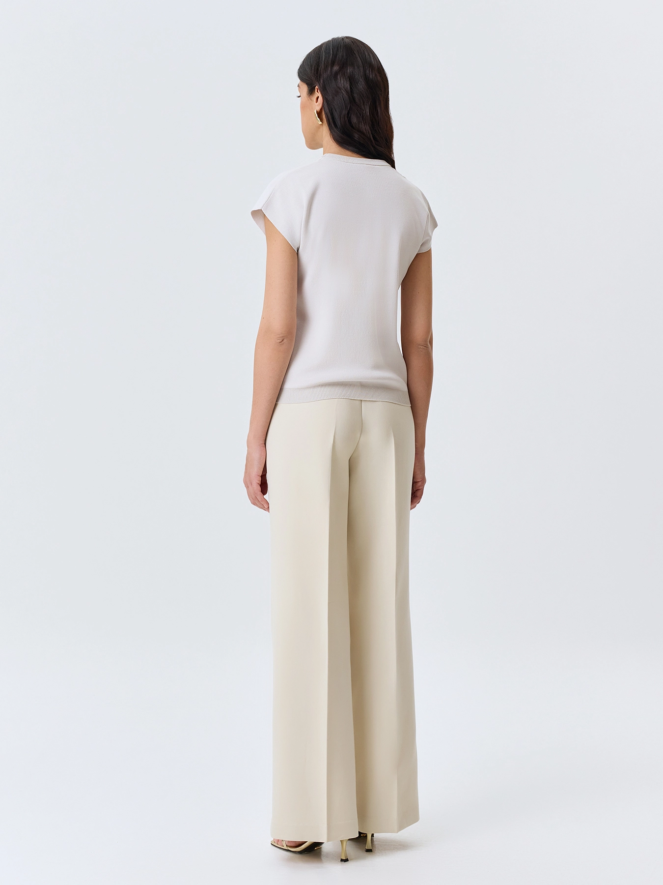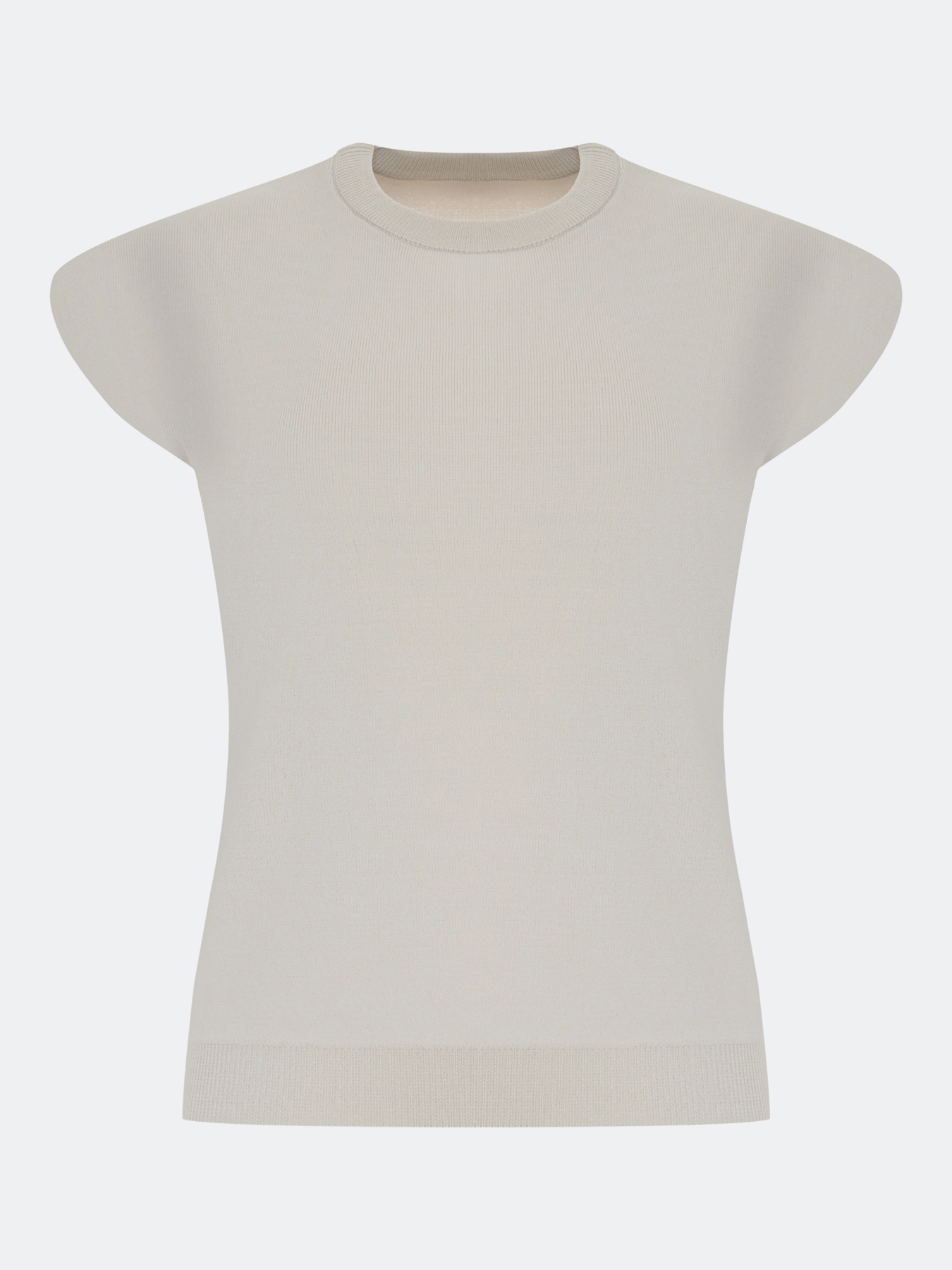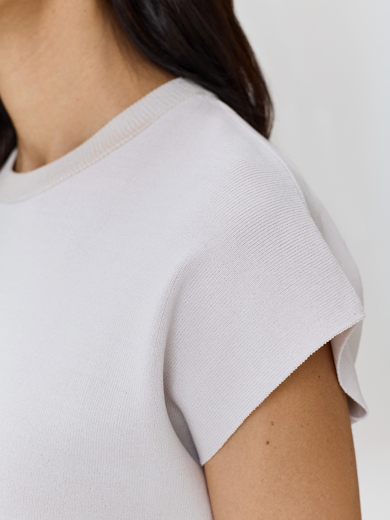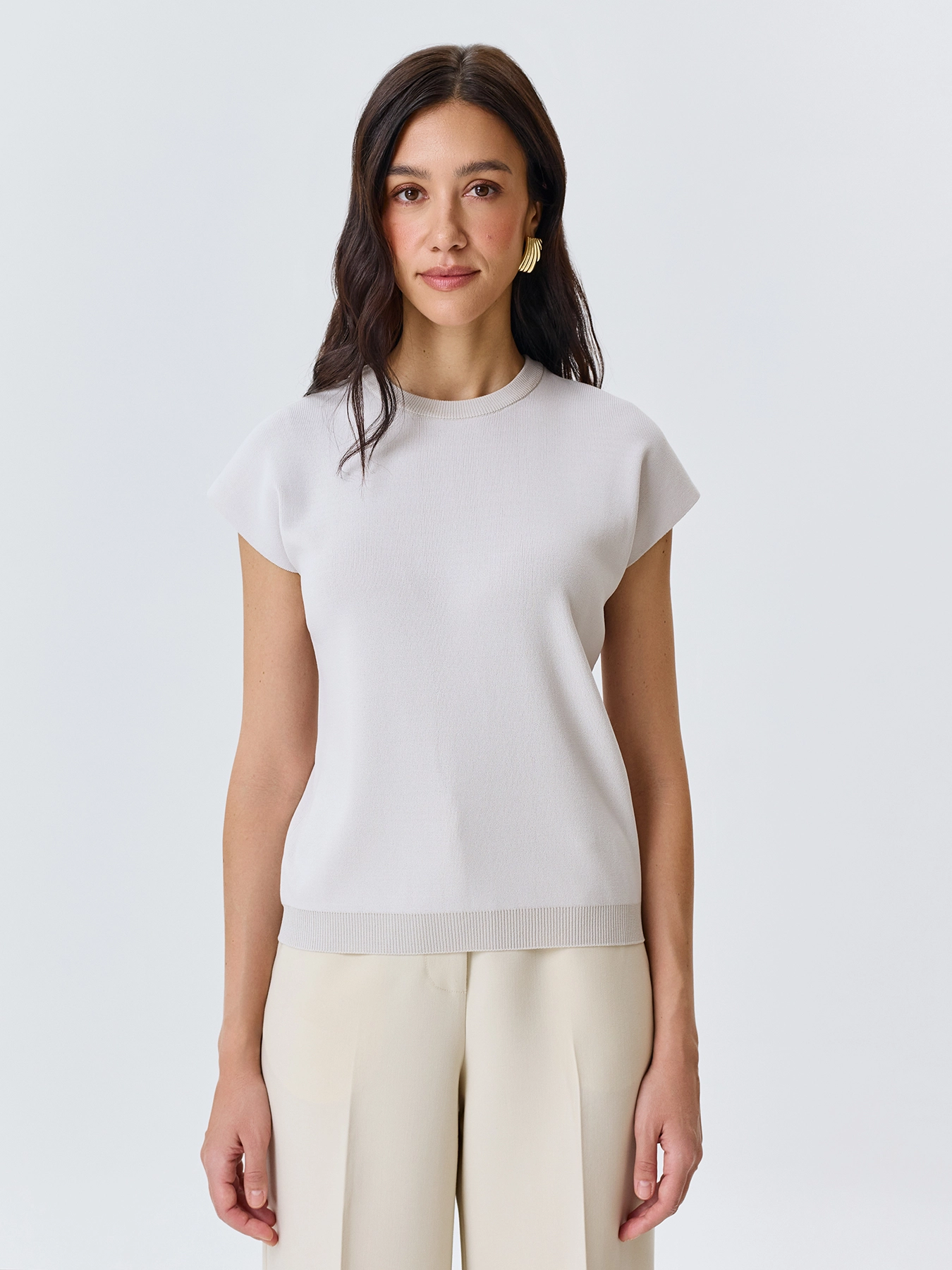 Вязаный топ из вискозы. Свободный силуэт. Круглый вырез. Риб по низу изделия. Спущенная линия плеч.