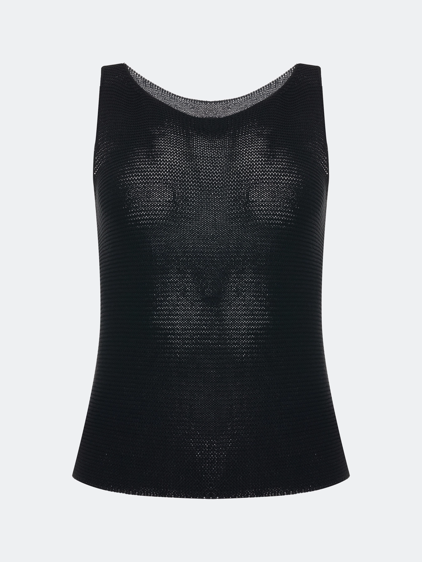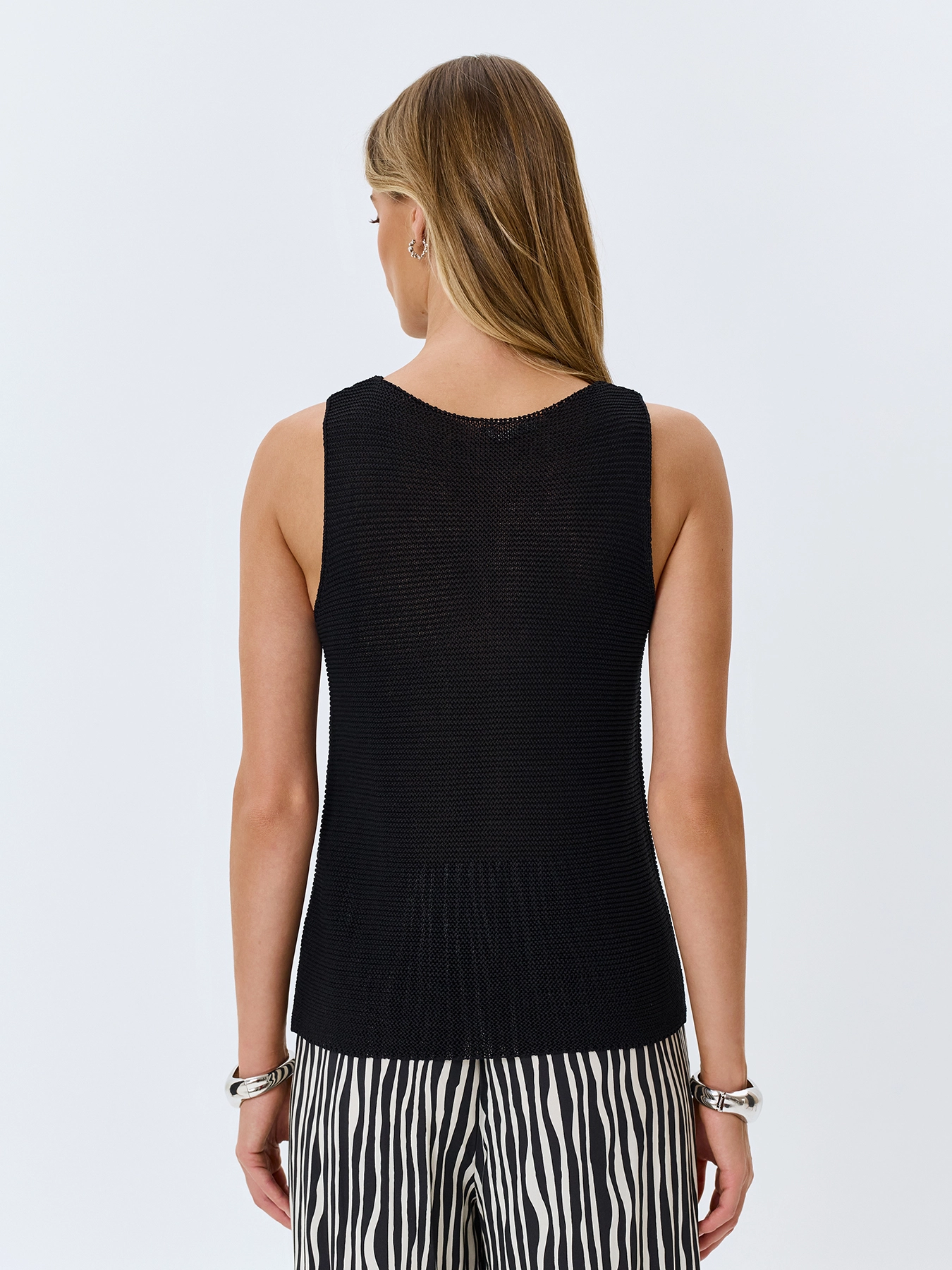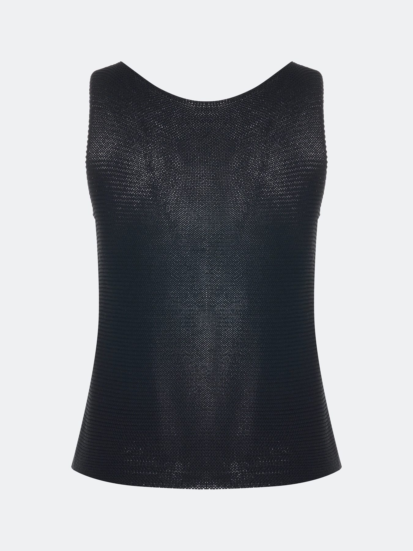 Вязаный топ из смесовой вискозы. Прямой силуэт. Фактурная вязка. Вырез лодочка. Широкие бретели.