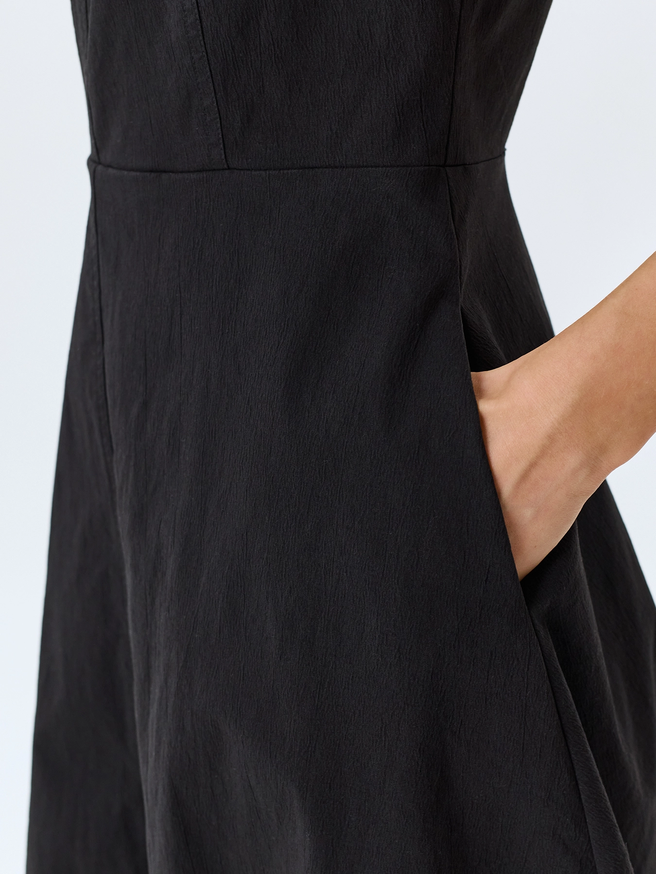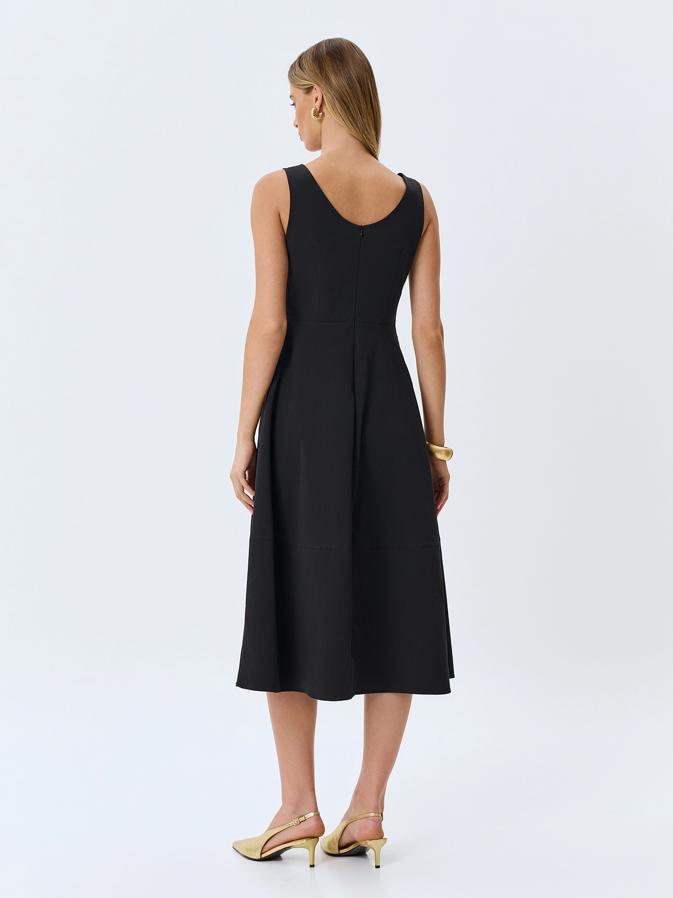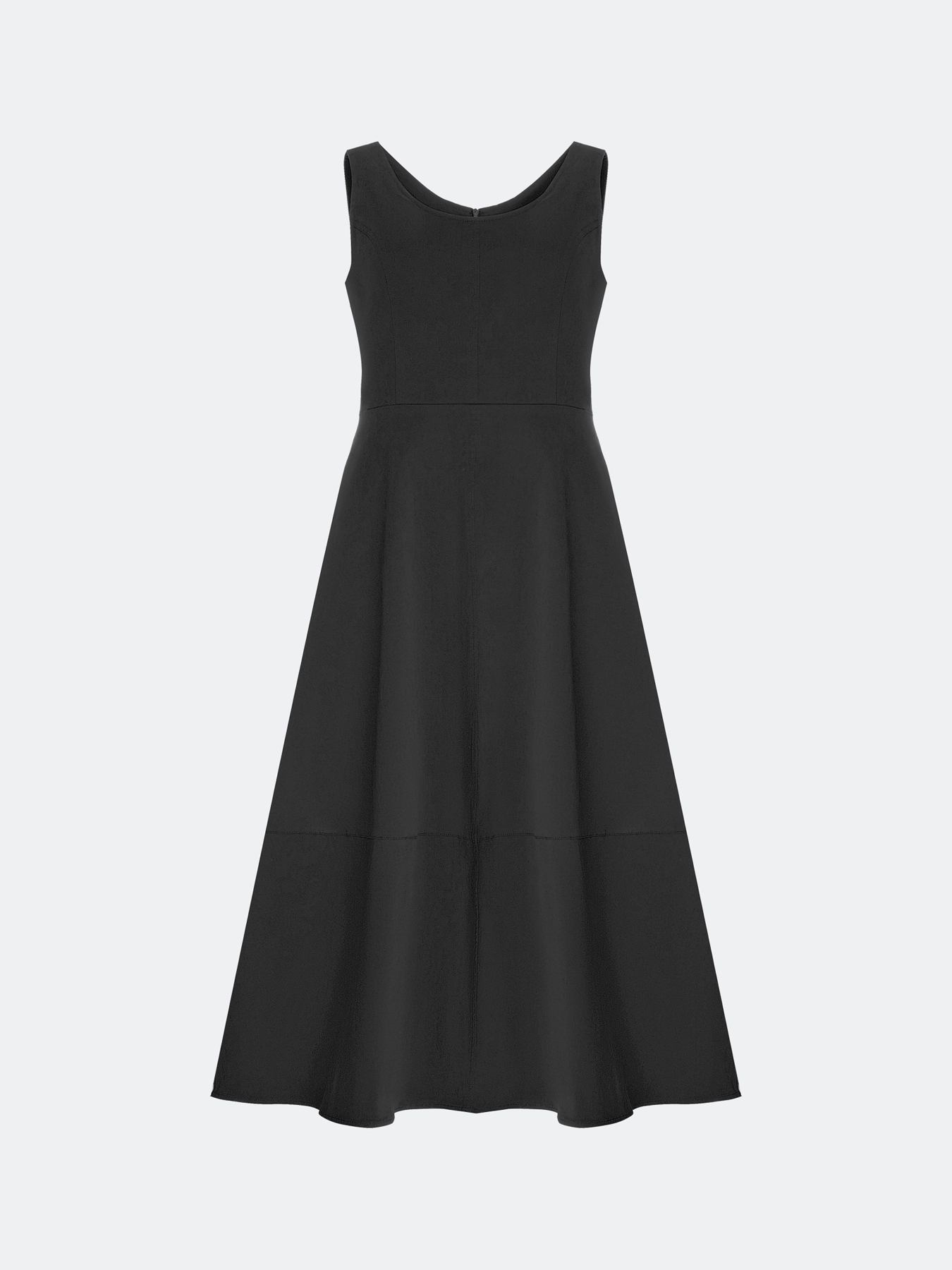 Хлопковое платье-миди приталенного силуэта. Круглый вырез с широкими бретелями. Застежка на потайную молнию. Юбка А-силуэта. Подкладка из 100% хлопка.