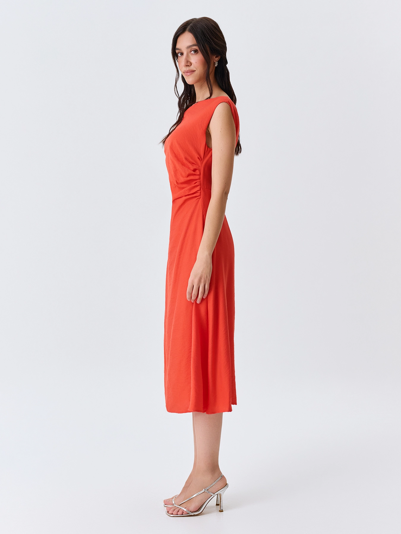 Платье-миди с асимметричным вырезом