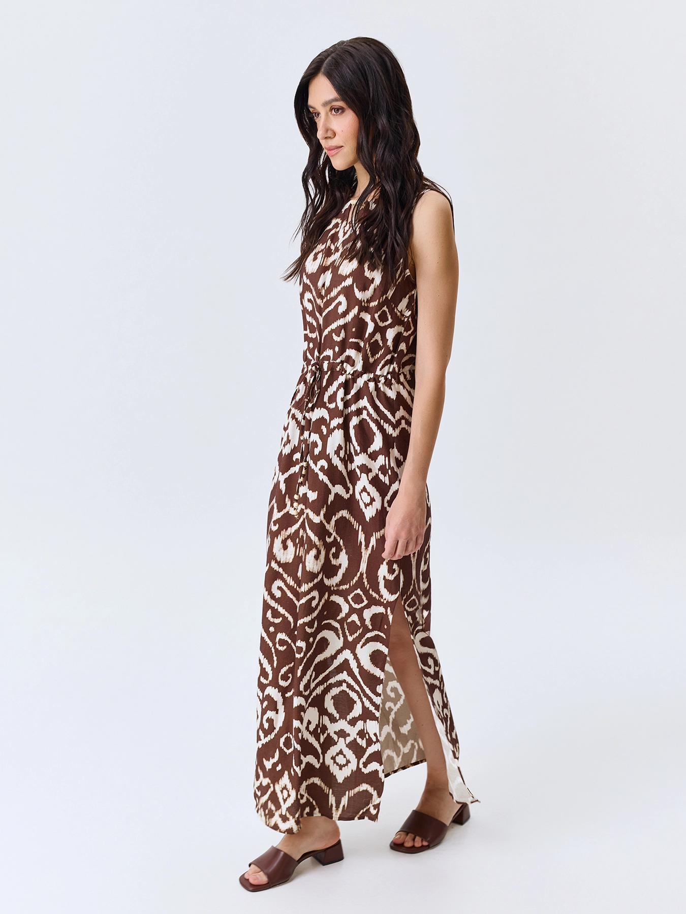 Платье с этническим принтом с высокими разрезами