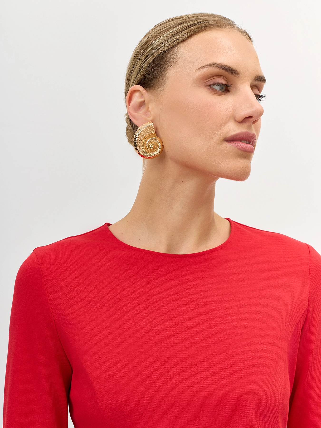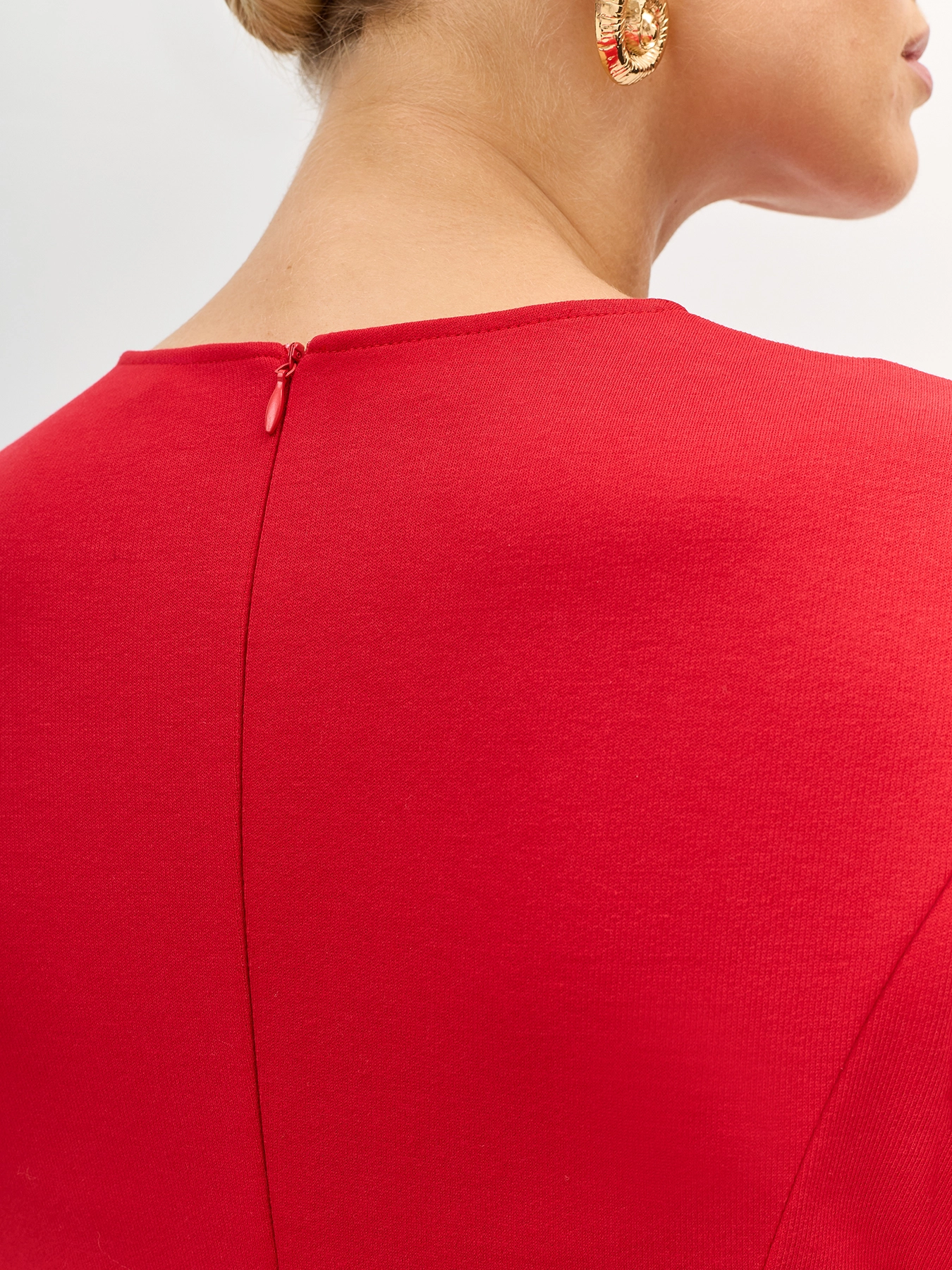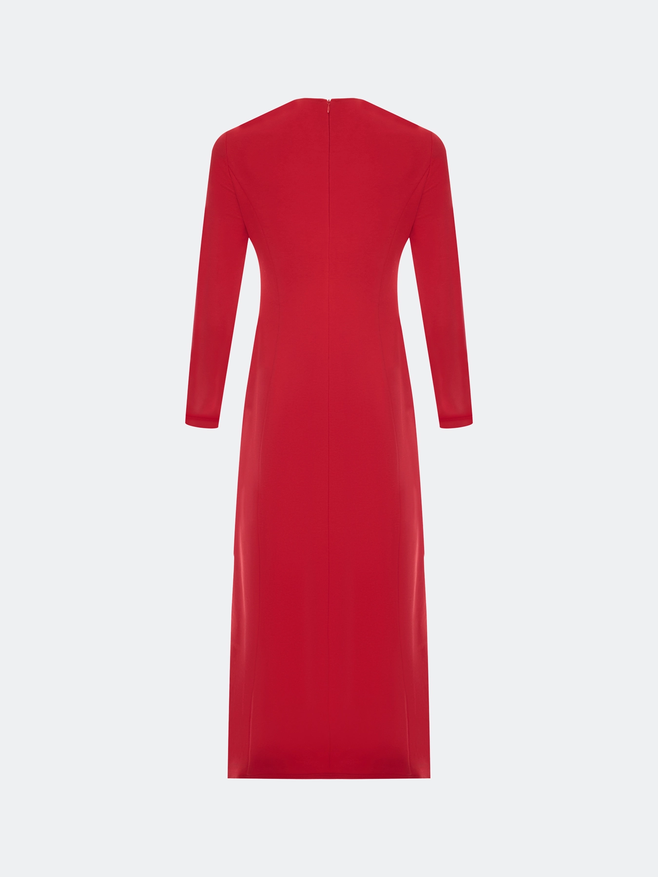 Яркое трикотажное платье-макси с высоким разрезом в шве. Полуприталенный силуэт. Круглый вырез. Застежка на потайную молнию. Дополнено рельефными швами. В составе хлопок.
