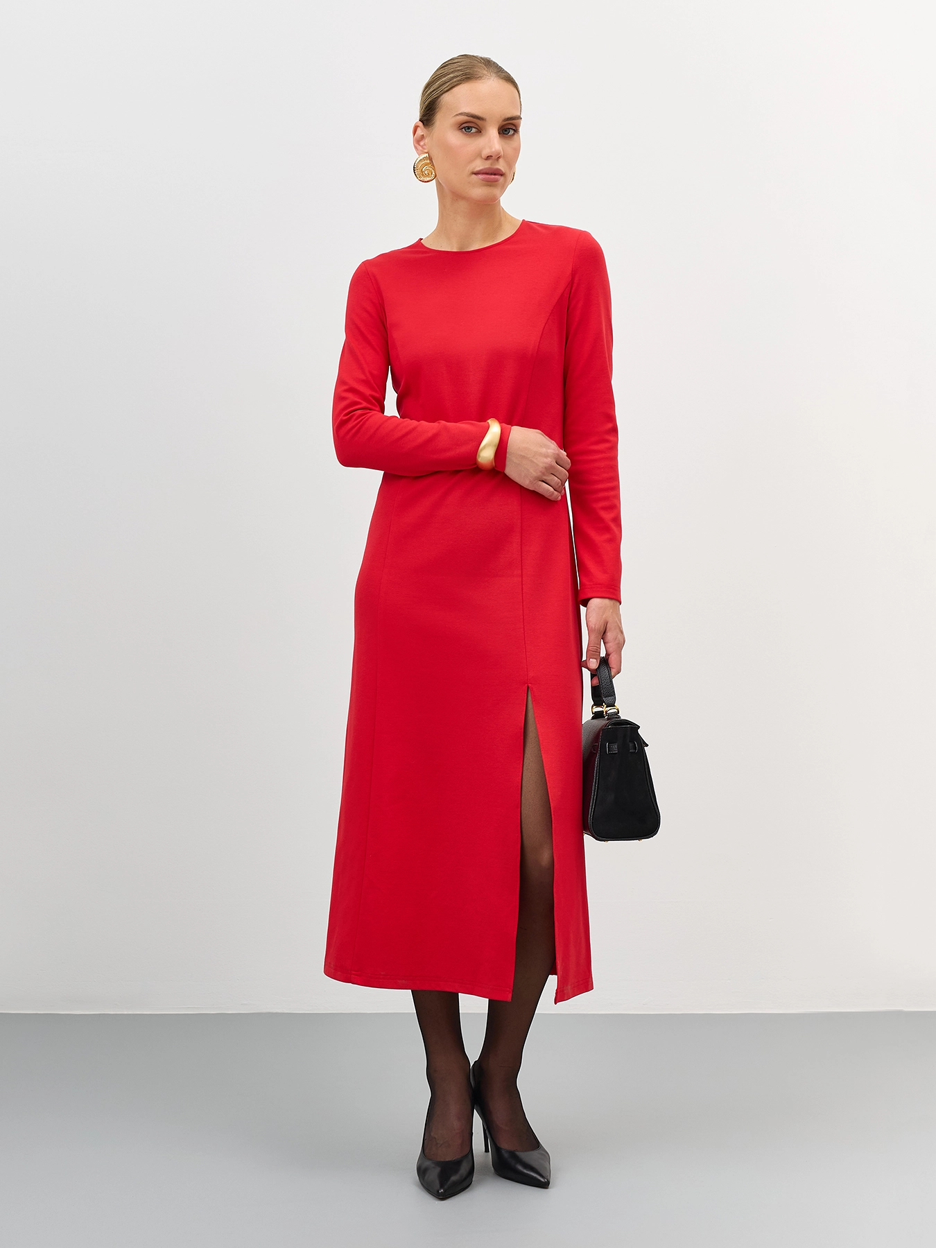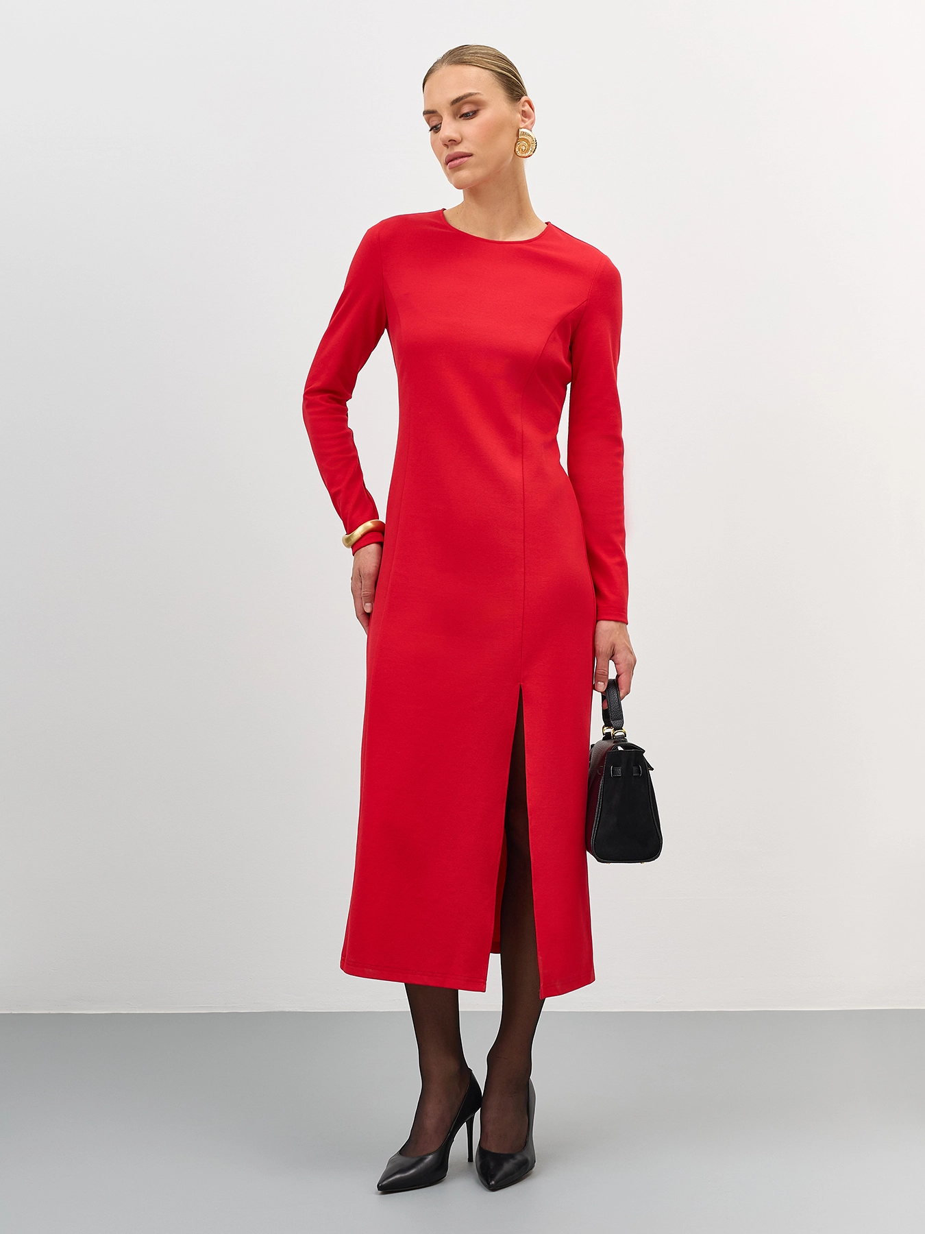 Трикотажное платье с высоким разрезом