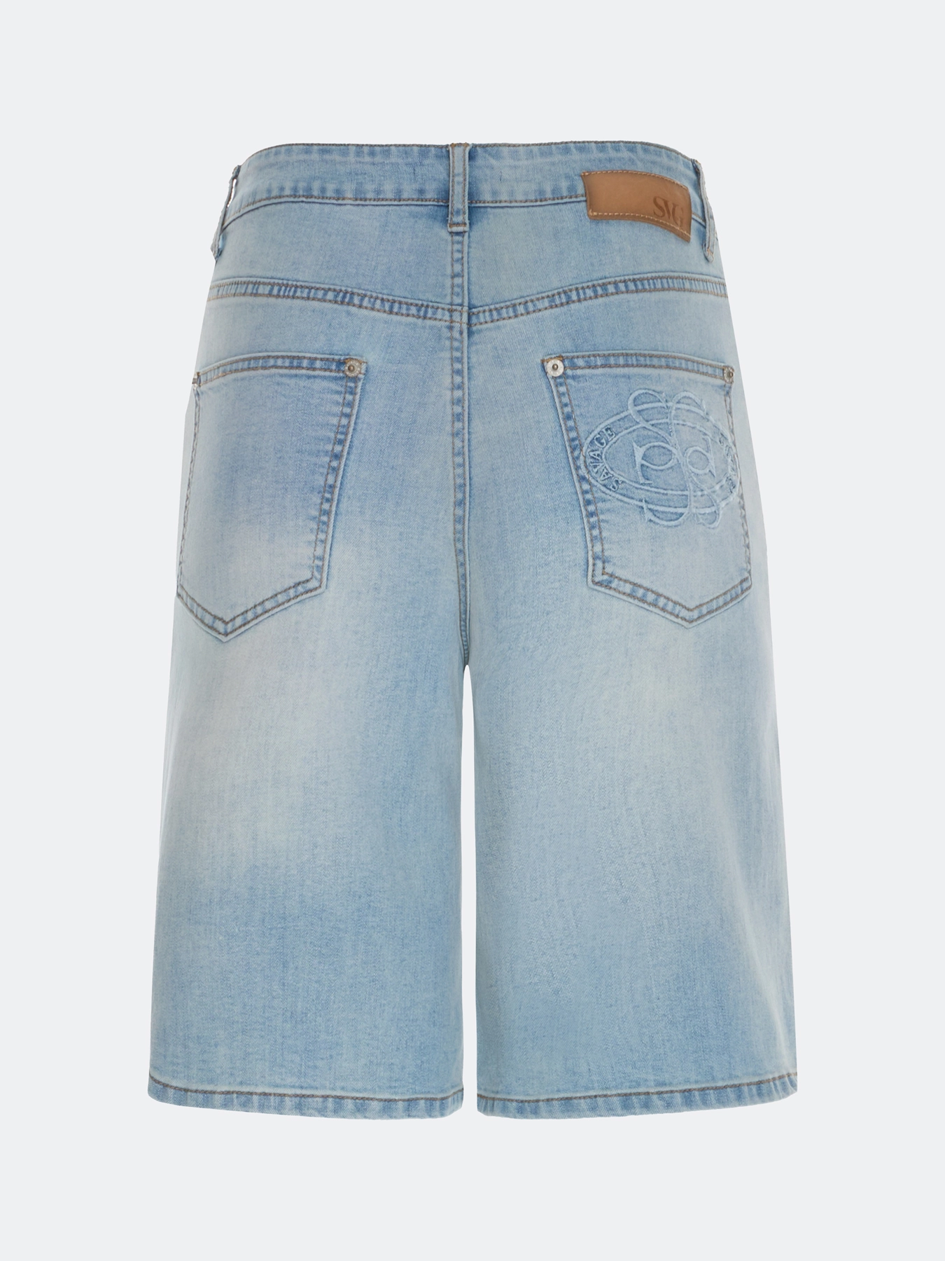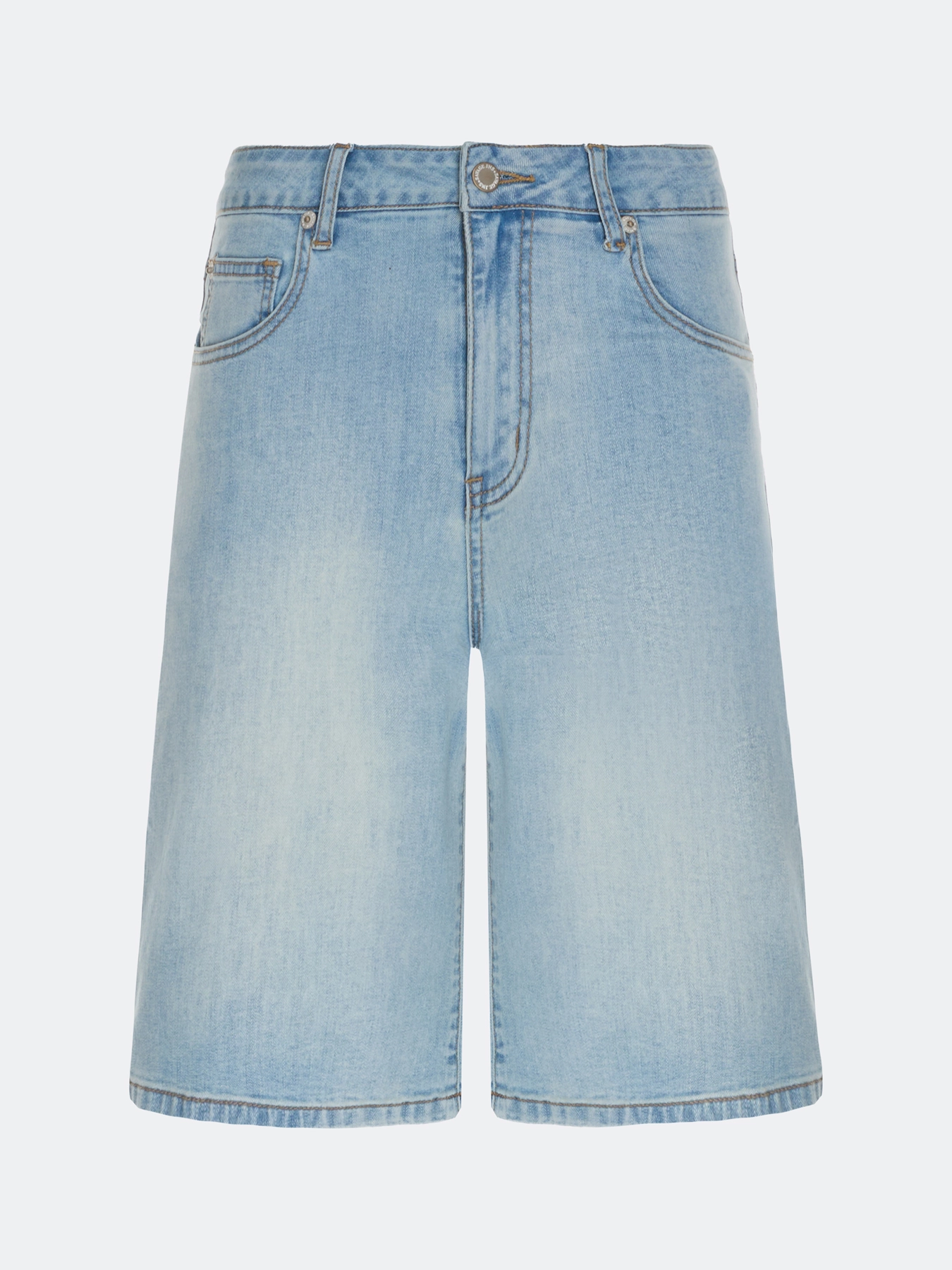 Джинсовые шорты бермуды прямого силуэта. Застежка на молнию и металлическую пуговицу. Дополнены вышивкой в цвет на заднем кармане. В составе спандекс.
