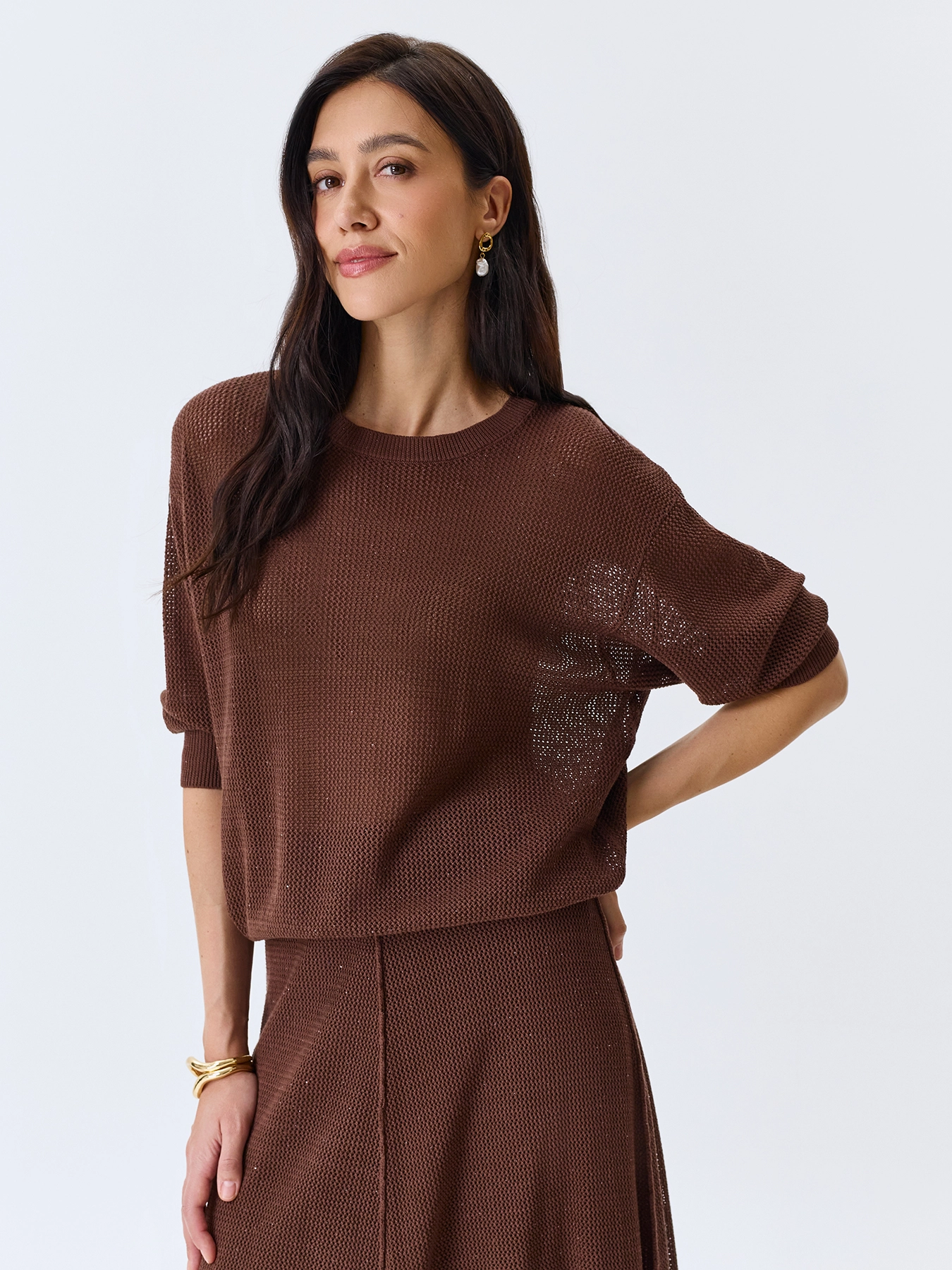 Ажурный джемпер с мерцающими пайетками