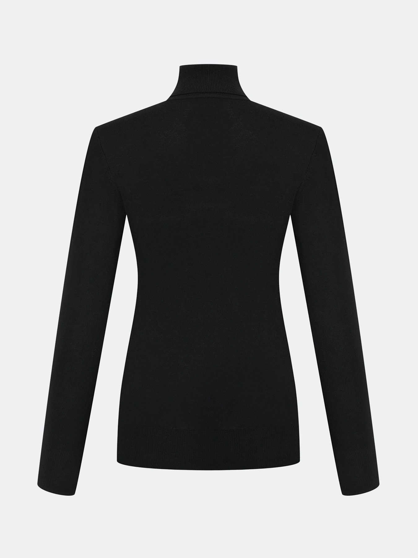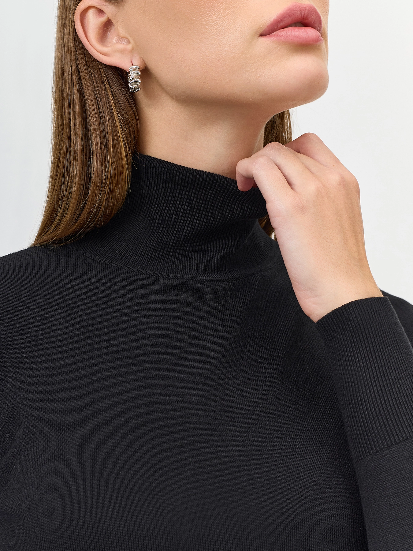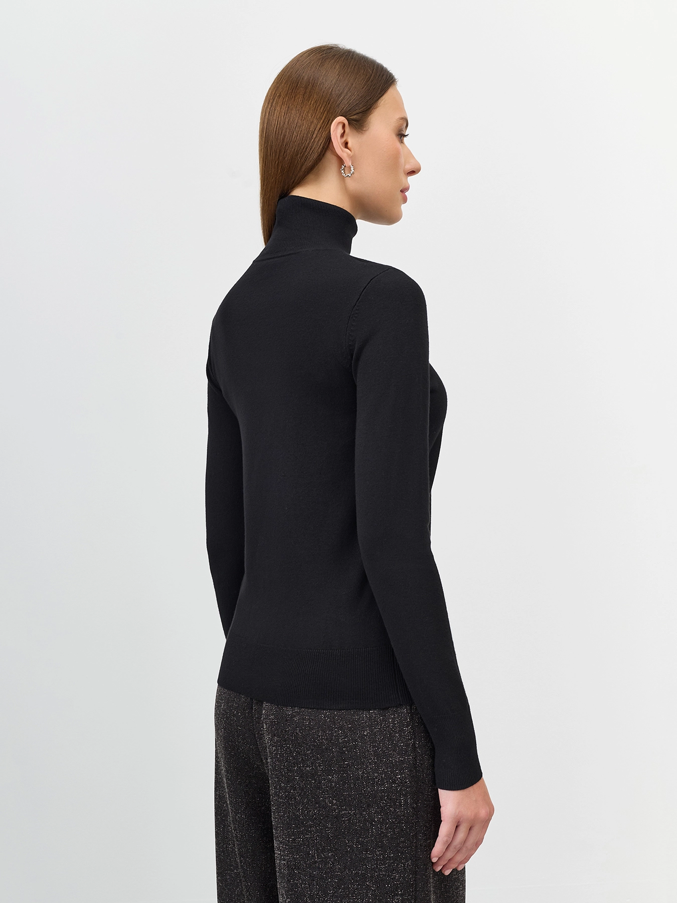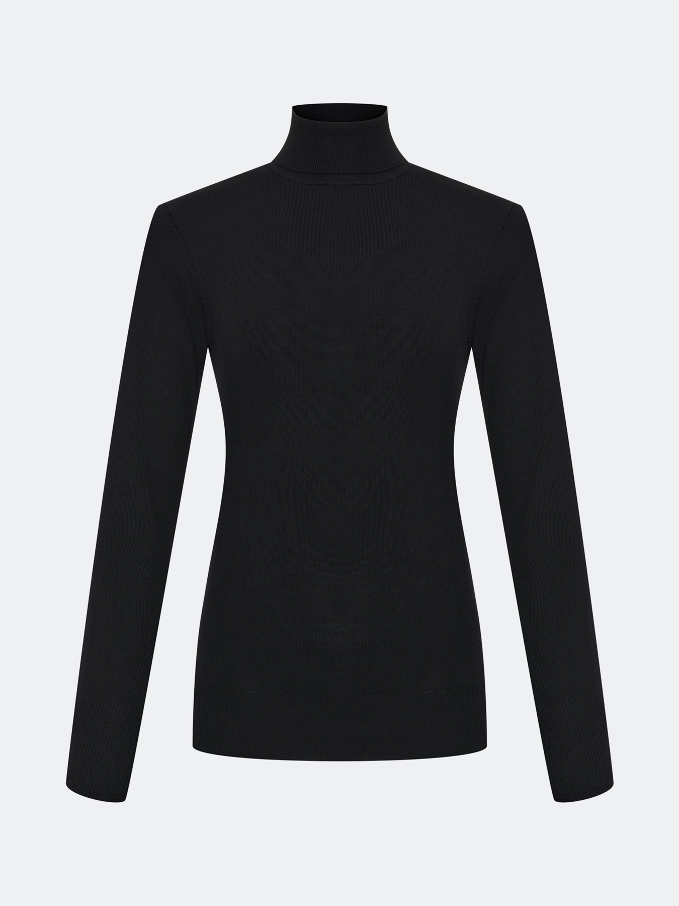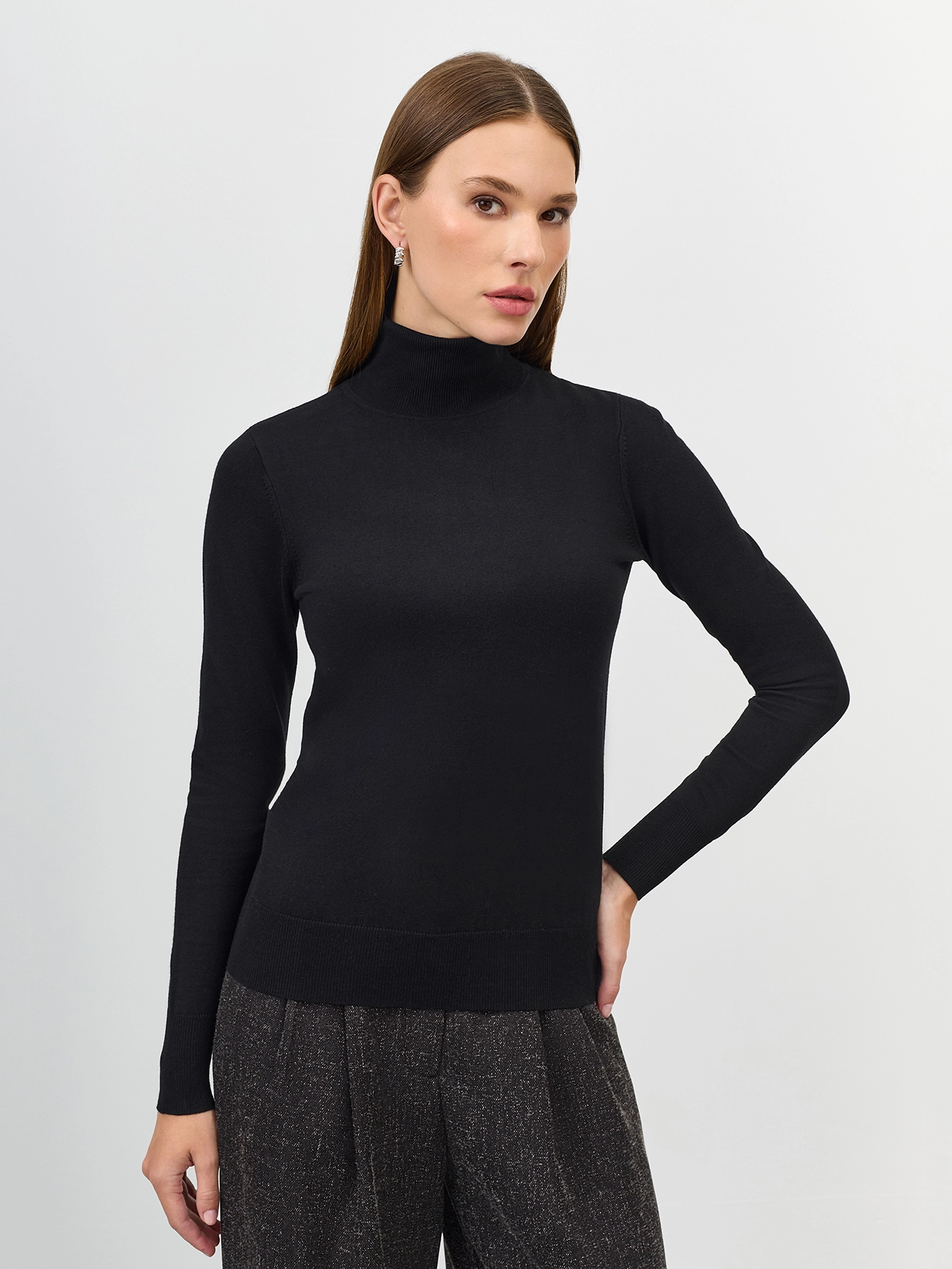 Базовая водолазка из смесовой вискозы и нейлона. Прилегающий силуэт. Высокий воротник стойка. Манжеты по низу рукавов и изделия.
