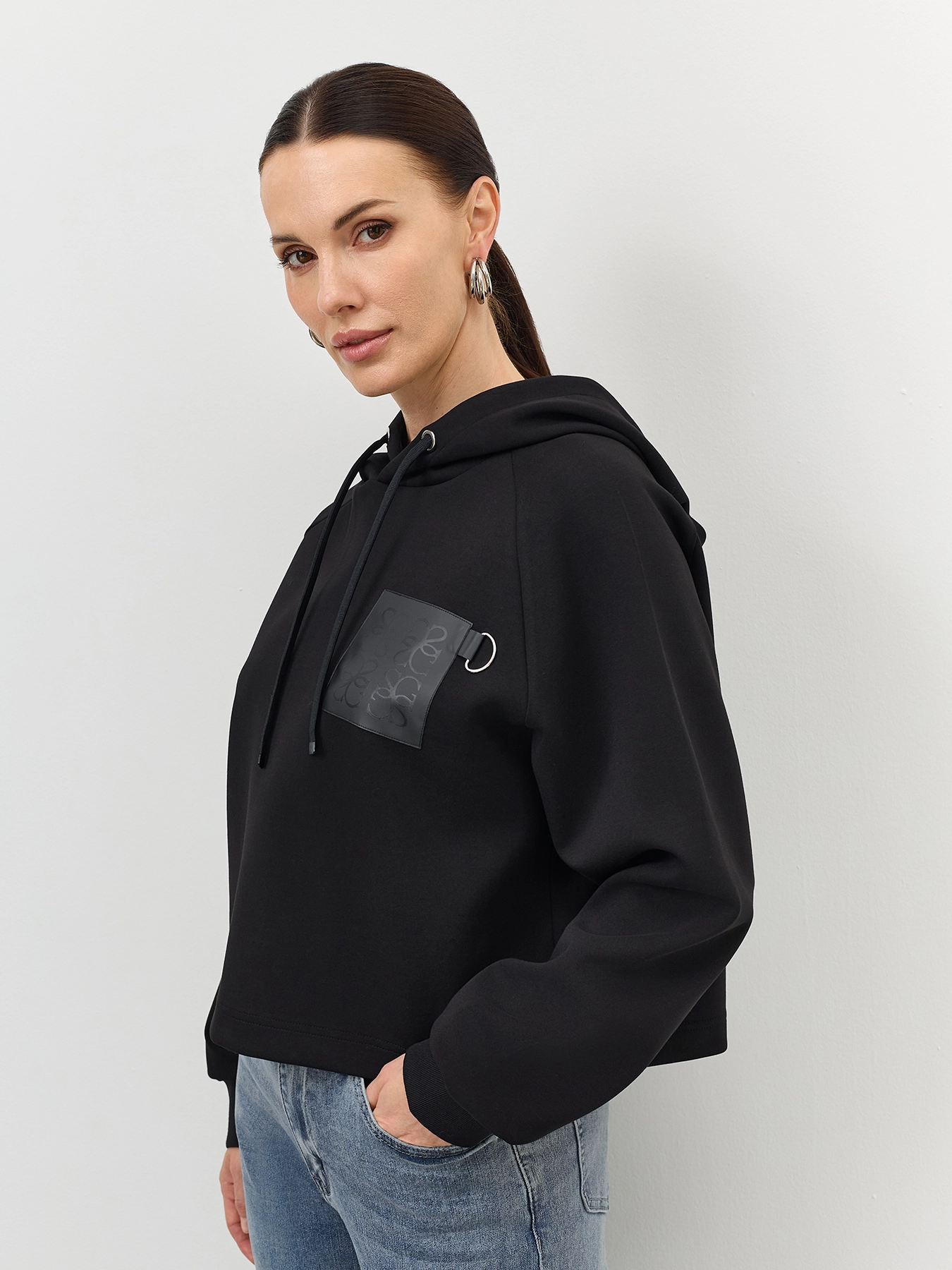 Худи с декором из экокожи
