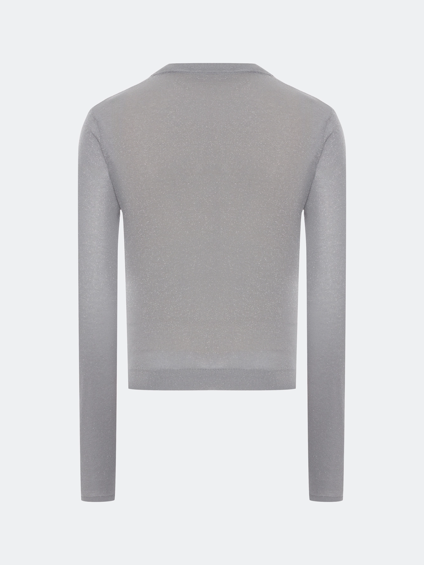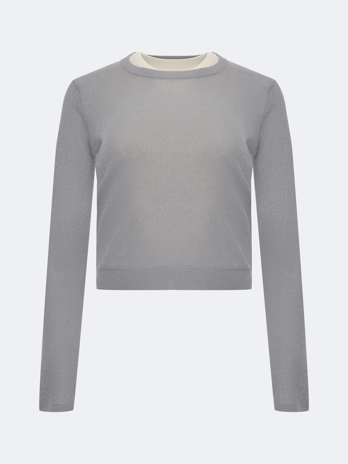 Комбинированный полупрозрачный джемпер из вискозы с люрексом с имитацией многослойности. Прямой силуэт. Круглый вырез. Риб по низу изделия. Подклдка-топ из хлопка и нейлона с круглым вырезом.