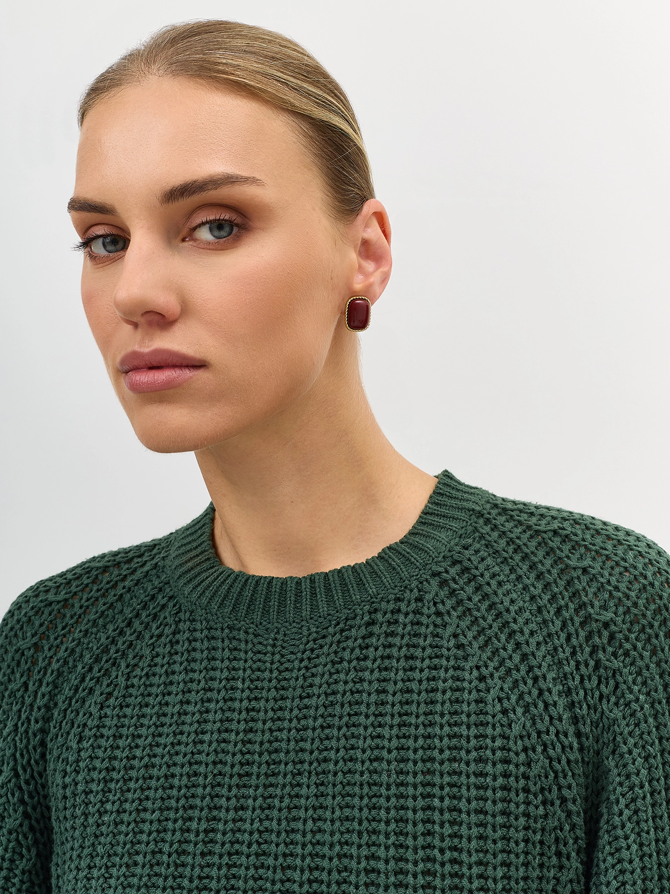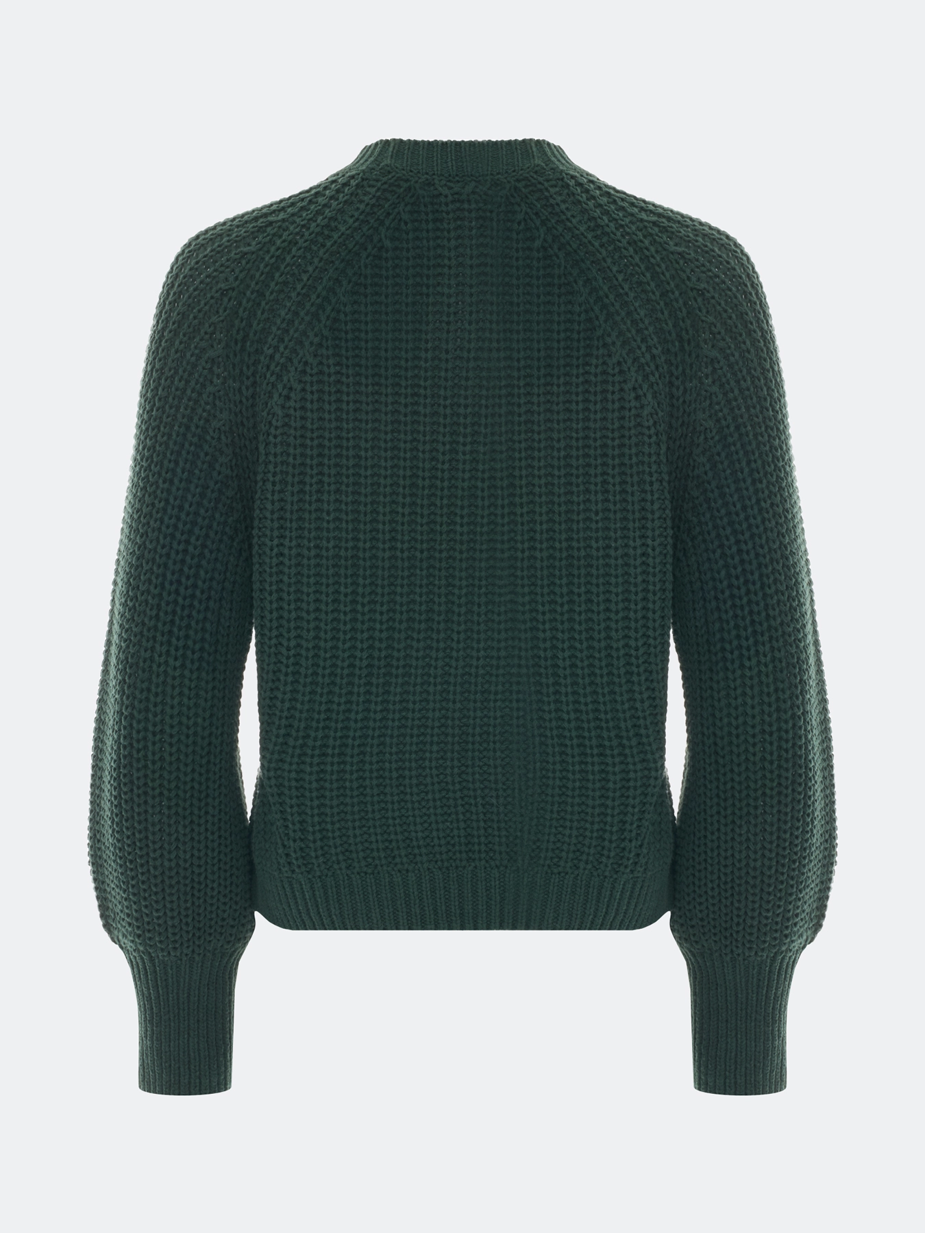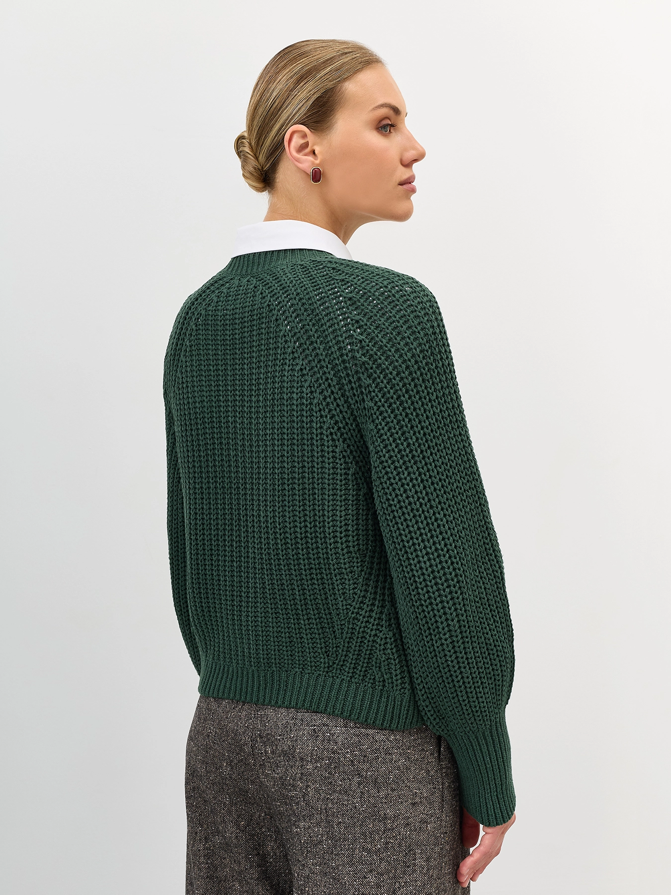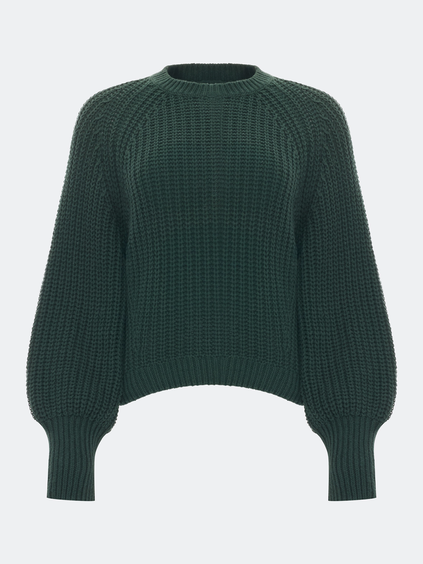 Объемный свитер крупной вязки из смесового хлопка. Свободный силуэт. Круглый вырез. Объемные длинные рукава реглан. Манжеты по низу рукавов.