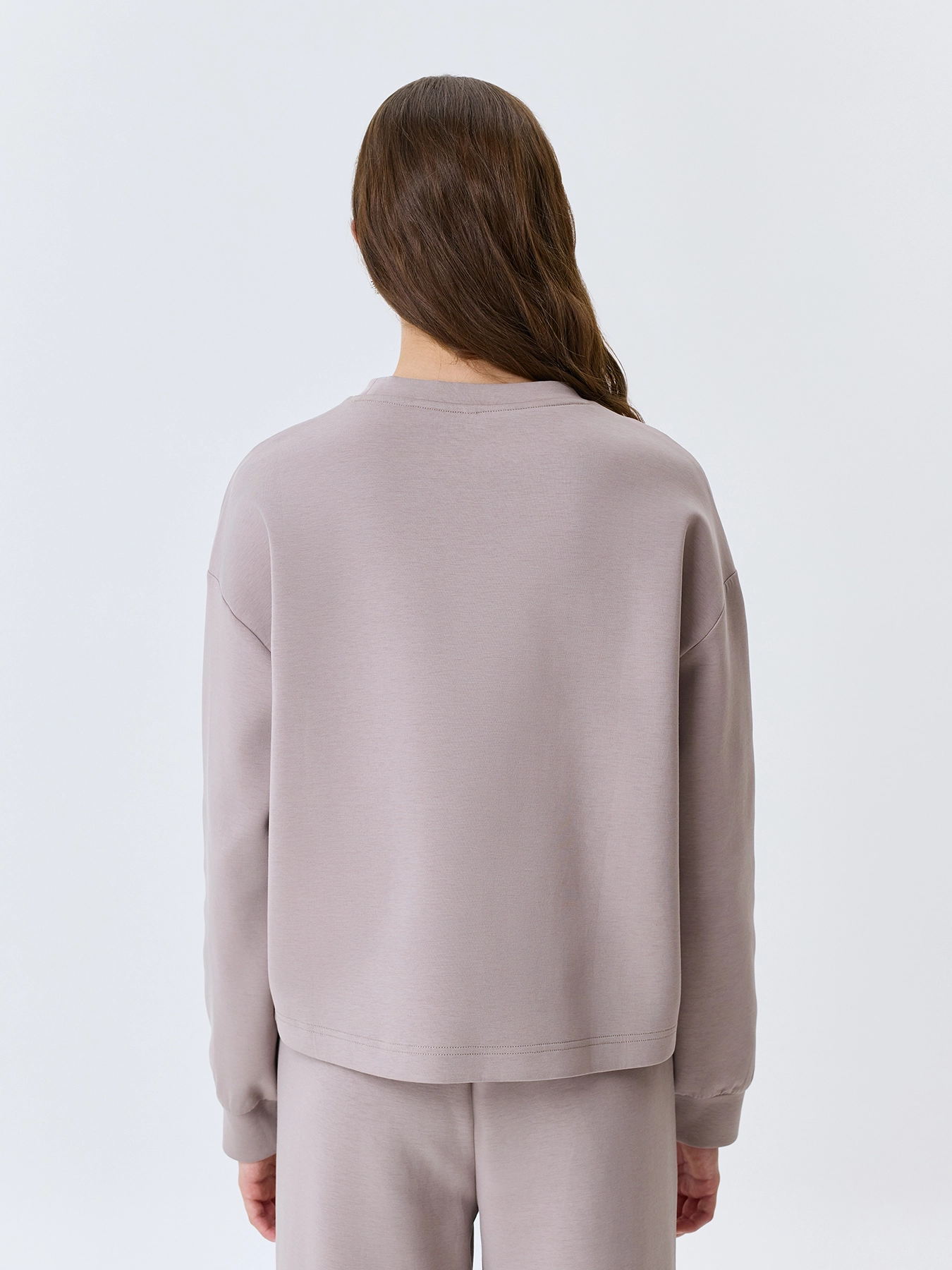 Oversize свитшот с деликатной вышивкой. Свободный силуэт. Спущенная линия плеч. Круглый вырез. Риб по горловине, низу рукавов и изделия. В составе хлопок. Комплект с 63885.
