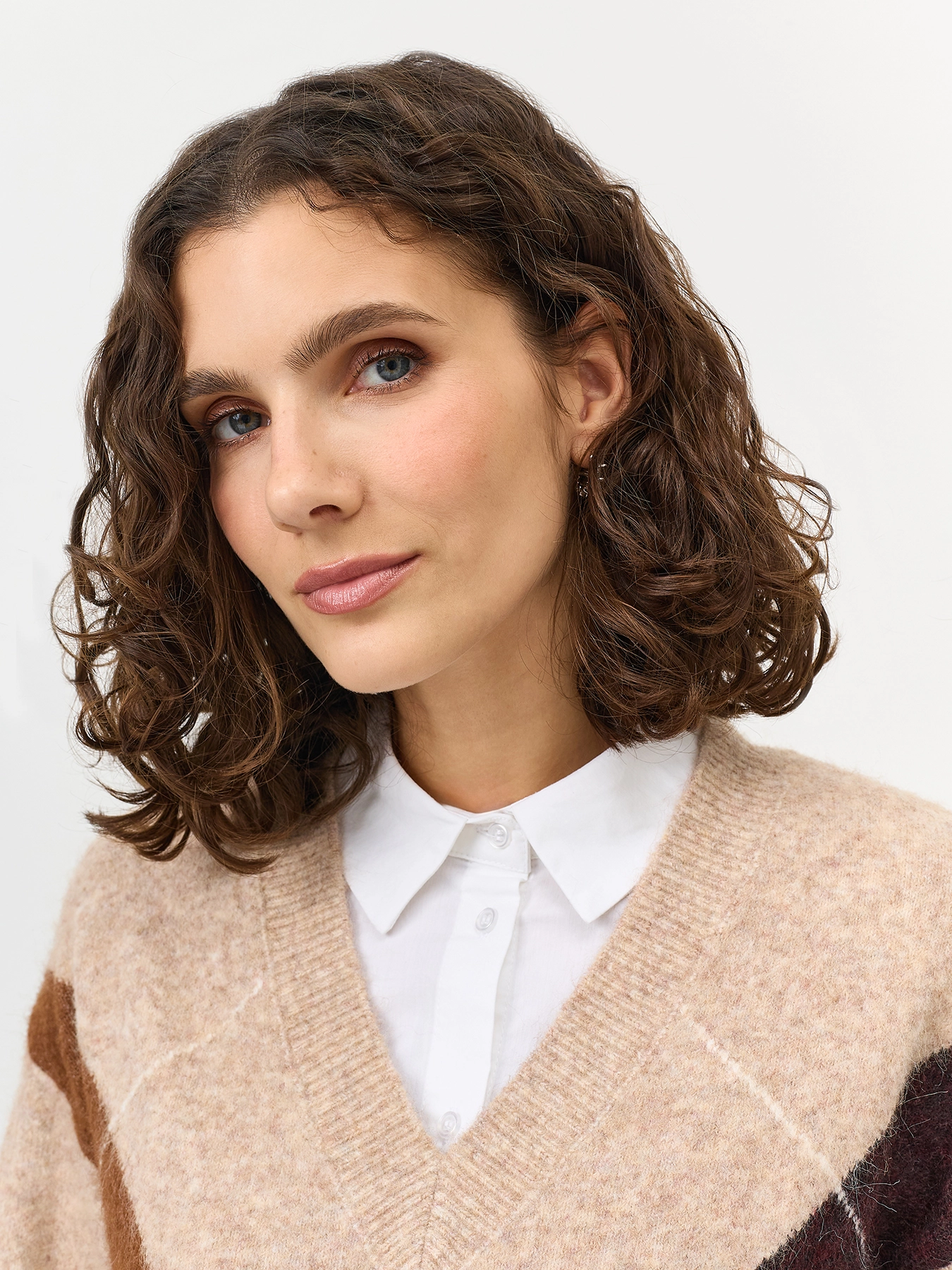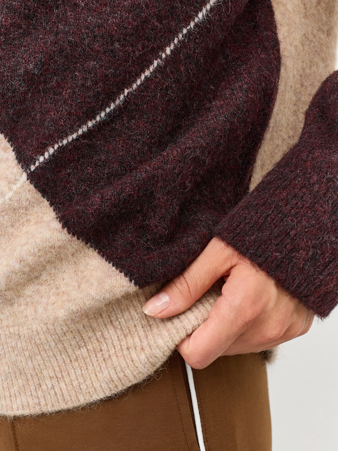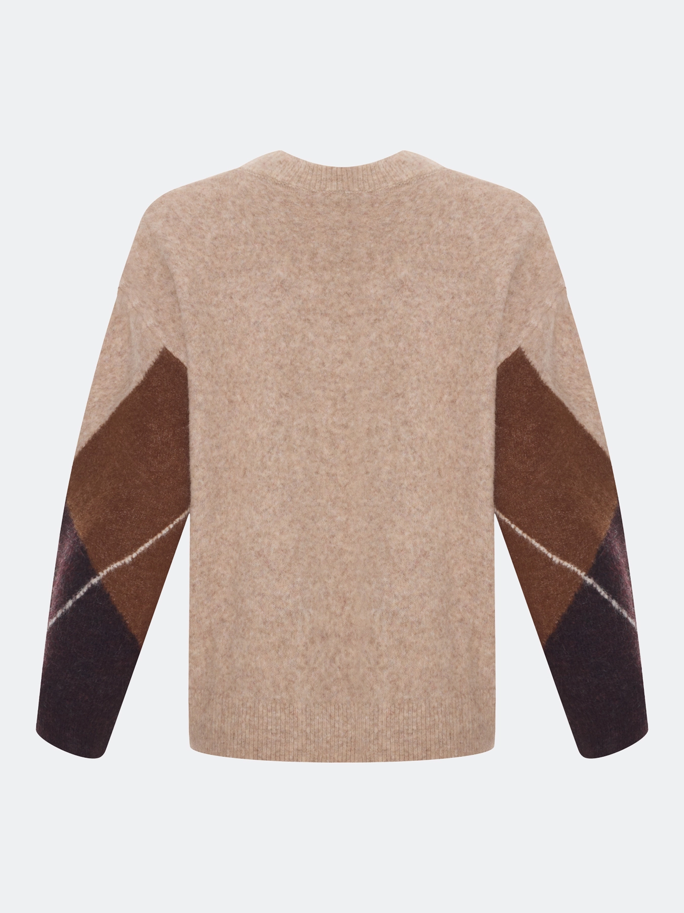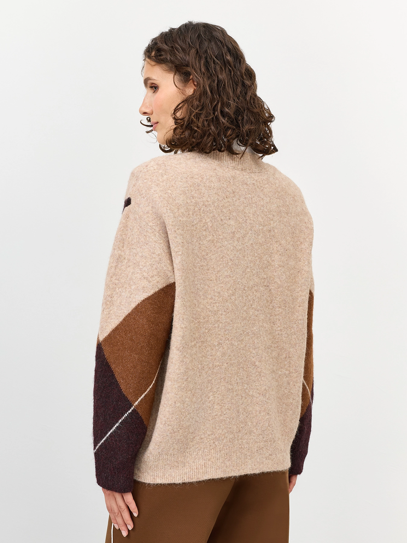 Мягкий свитер с узором "аргайл" из пряжи с добавлением шерсти. Прямой силуэт. V-образный вырез. Спущенная линия плеч. В составе шерсть.