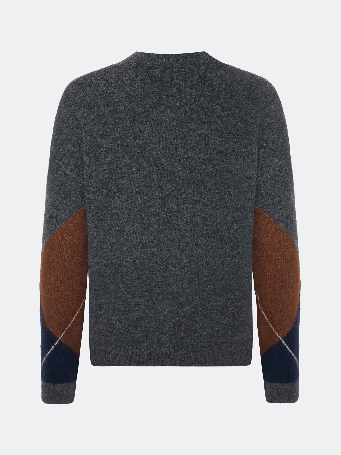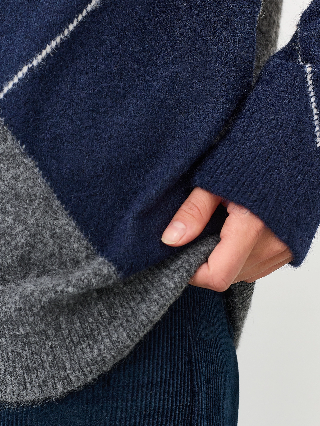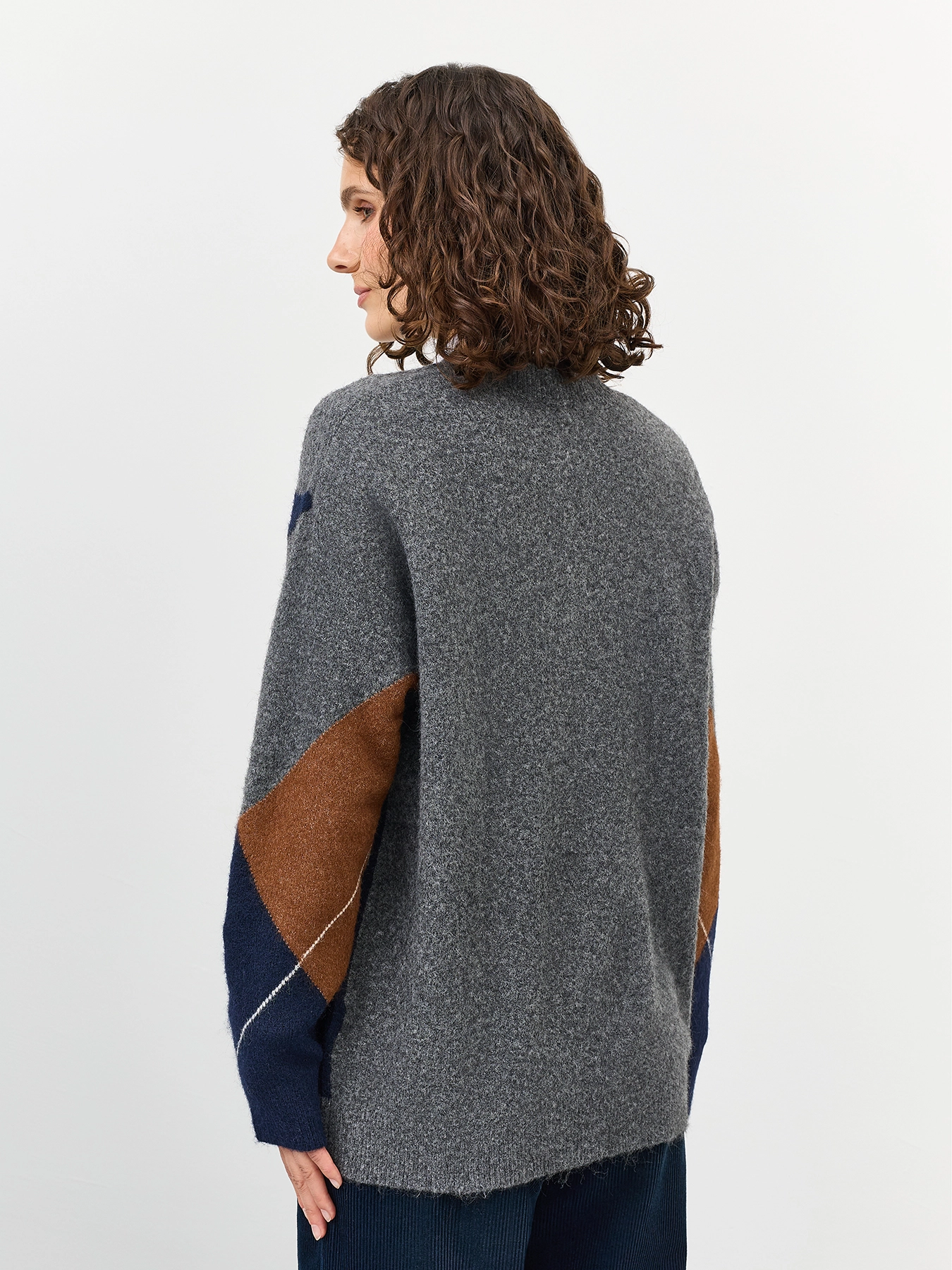 Мягкий свитер с узором "аргайл" из пряжи с добавлением шерсти. Прямой силуэт. V-образный вырез. Спущенная линия плеч. В составе шерсть.