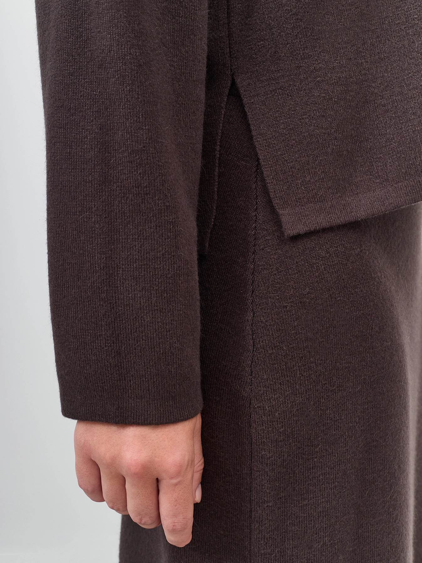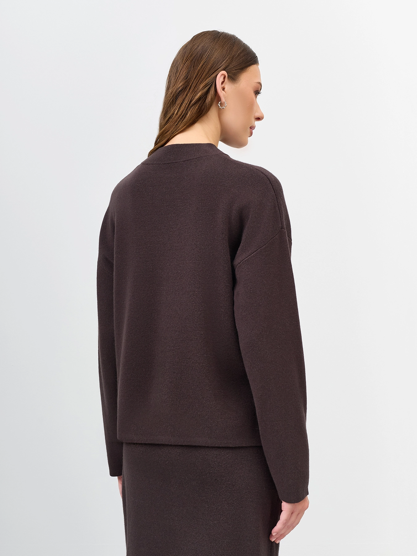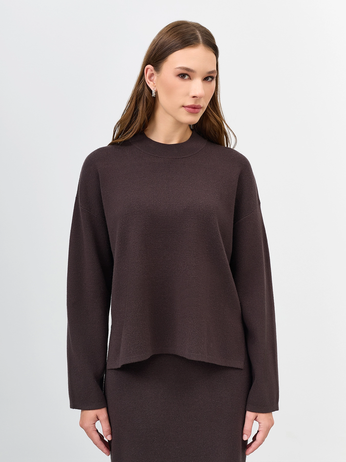 Свободный свитер плотной вязки с ангорой и вискозой в составе. Свободный силуэт. Спущенная линия плеч. Круглый вырез. Деликатные разрезы в боковых швах. Комплект с арт. 60718.