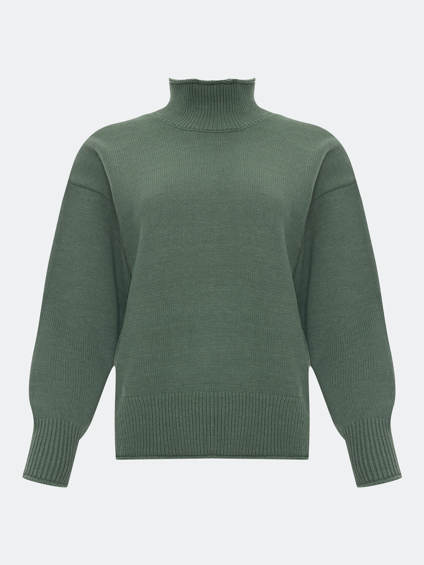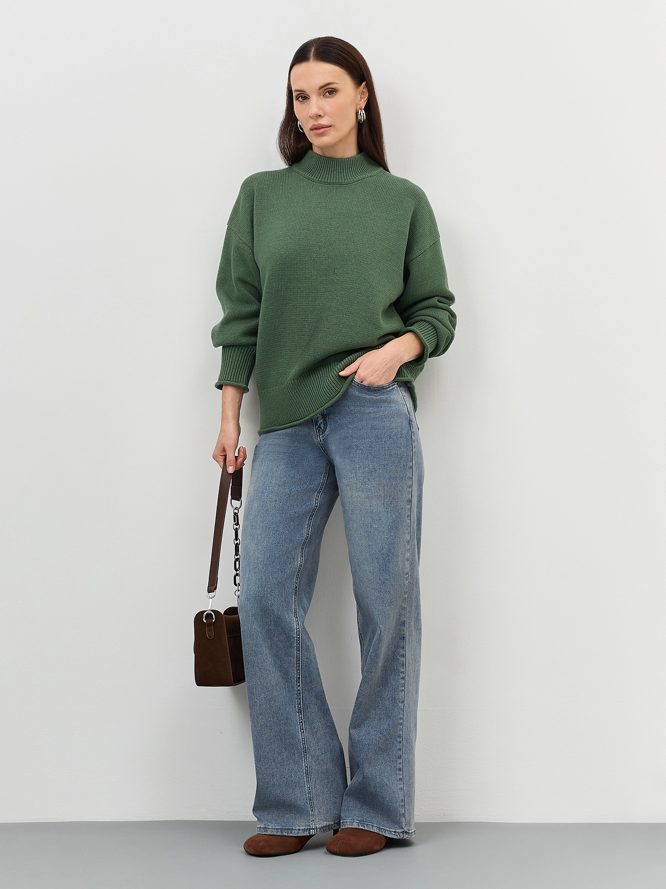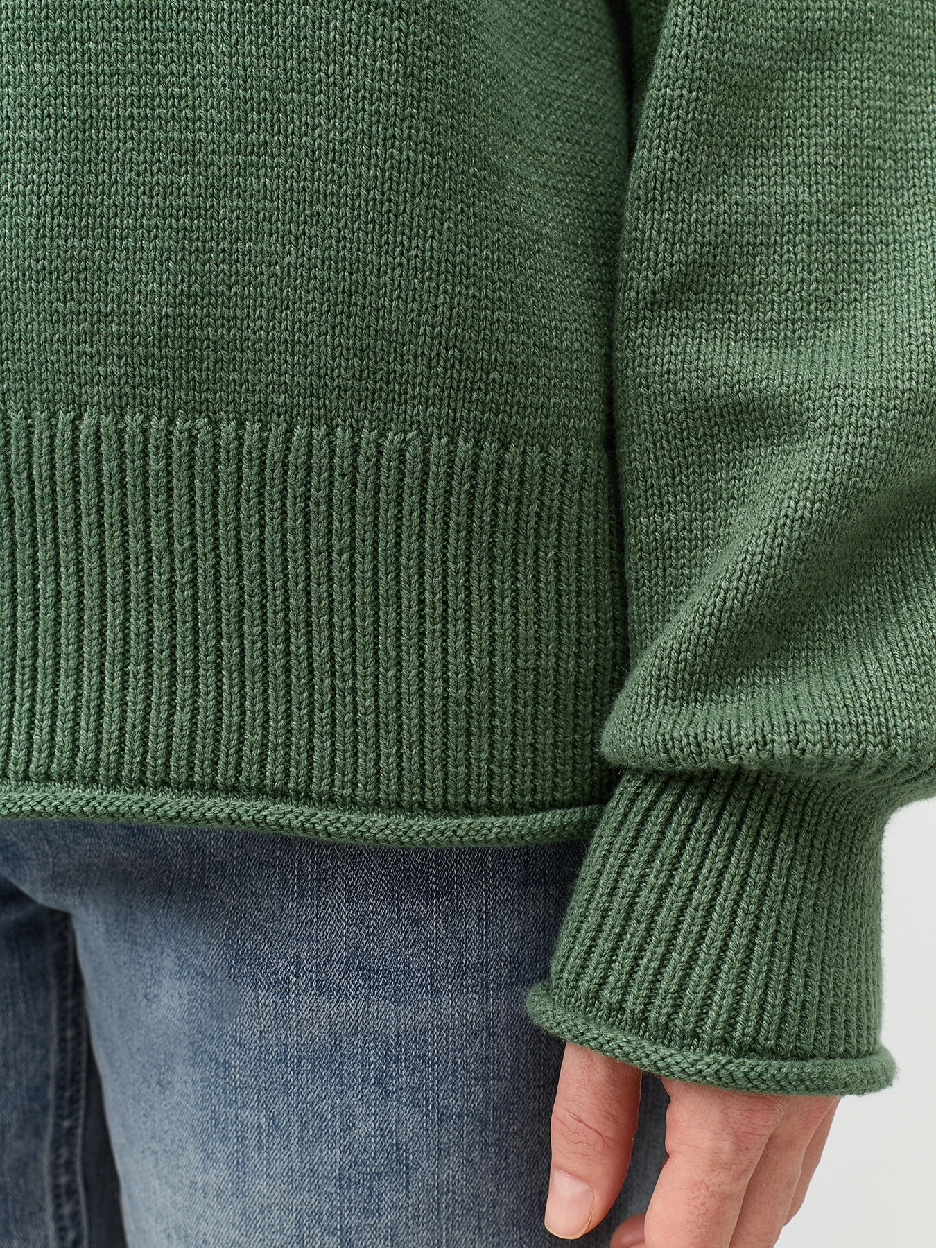 Яркий вязаный джемпер из смесового хлопка. Свободный силуэт. Круглый вырез. Спущенная линия плеч. Риб по горловине. Декоративный риб по низу рукавов и изделия.