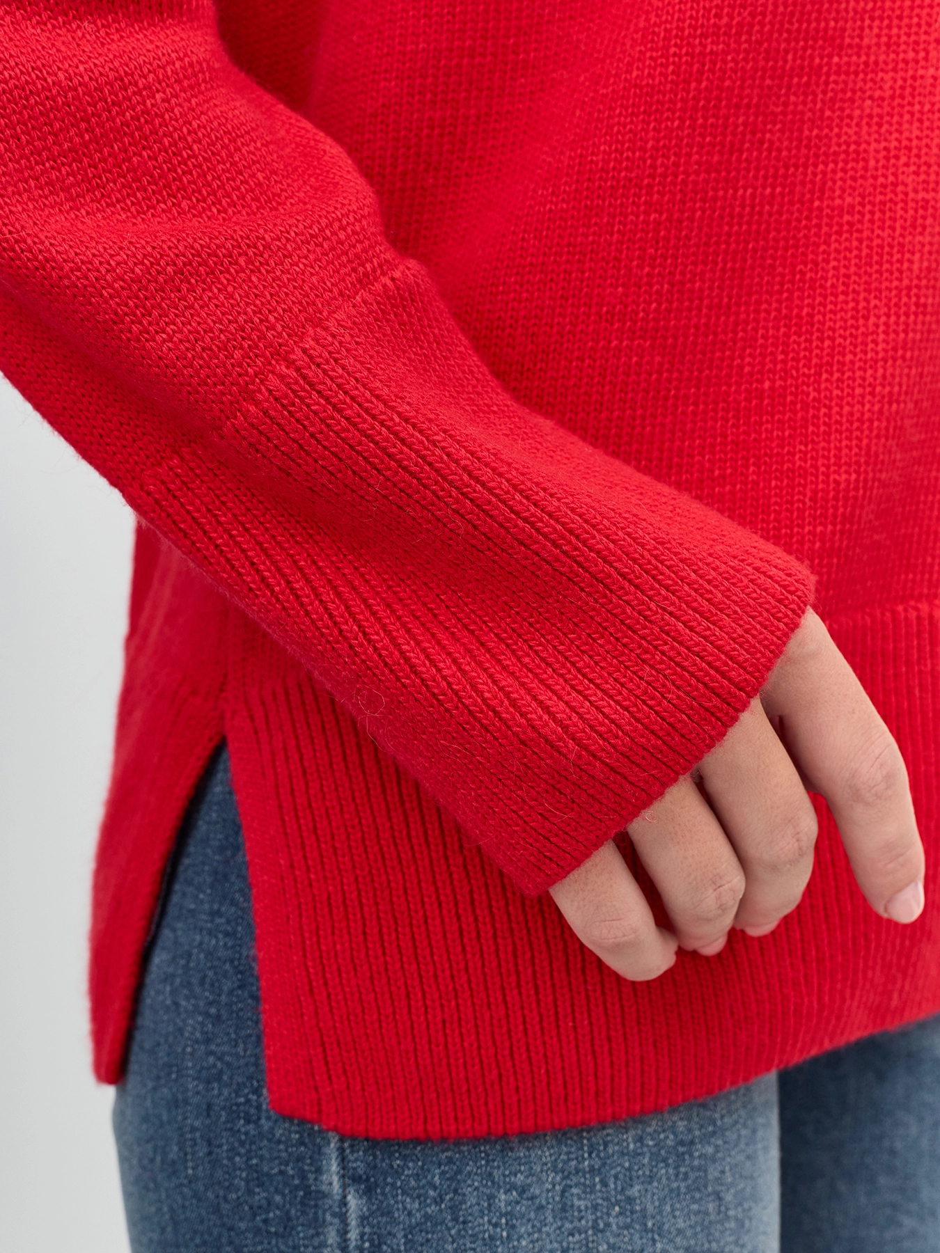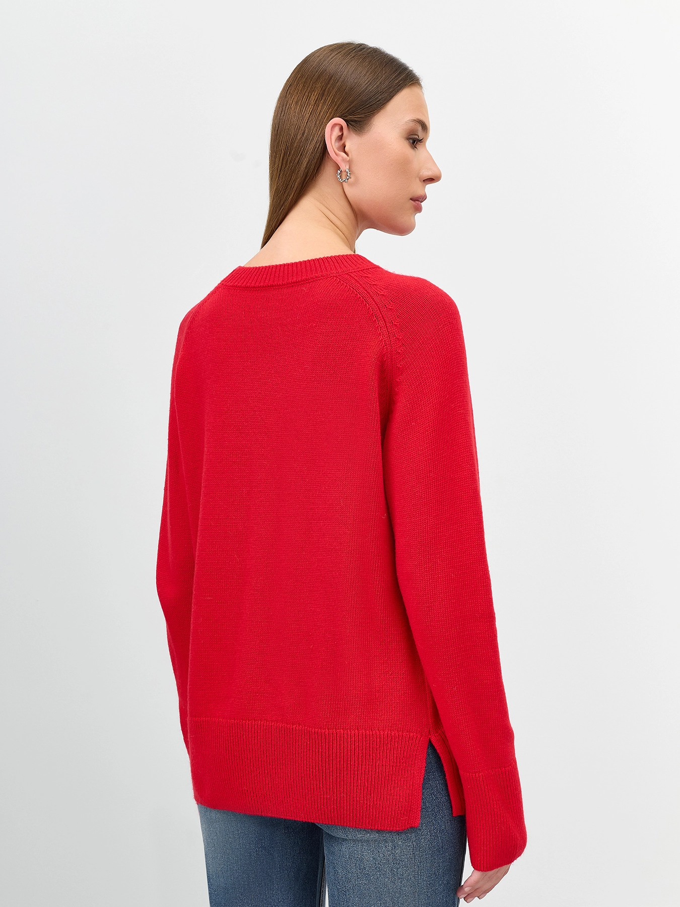 Яркий джемпер с ангорой в составе. Прямой силуэт. Круглый вырез. Длинные рукава реглан. Боковые разрезы в швах. Широкие манжеты по низу рукавов и изделия.