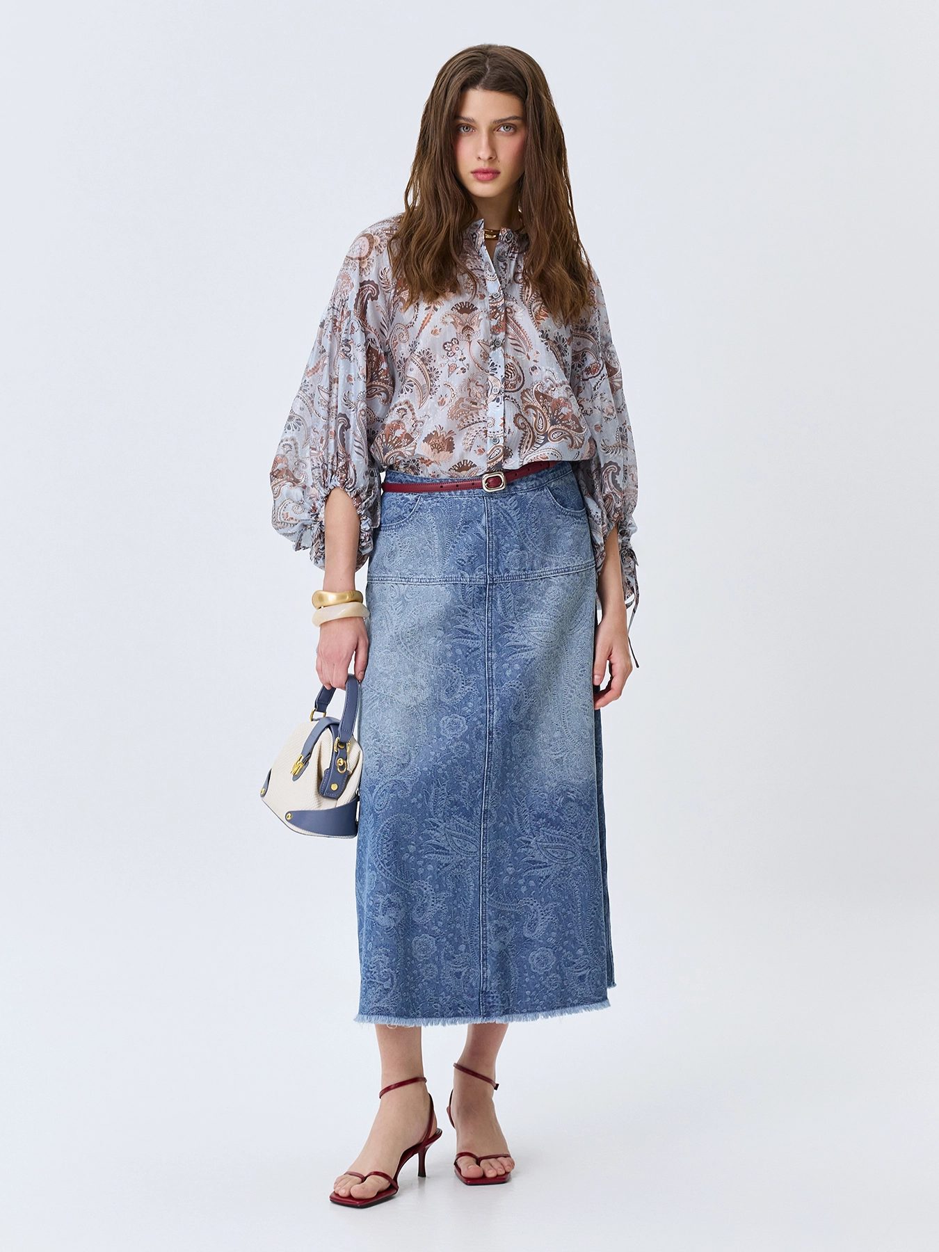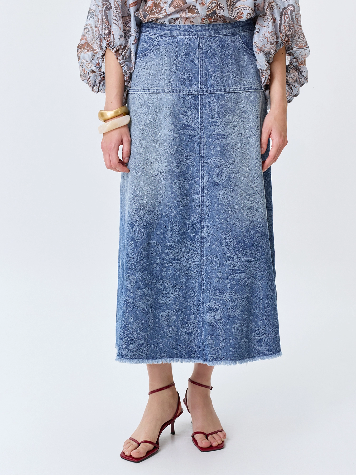 Джинсовая юбка с принтом "Пейсли"