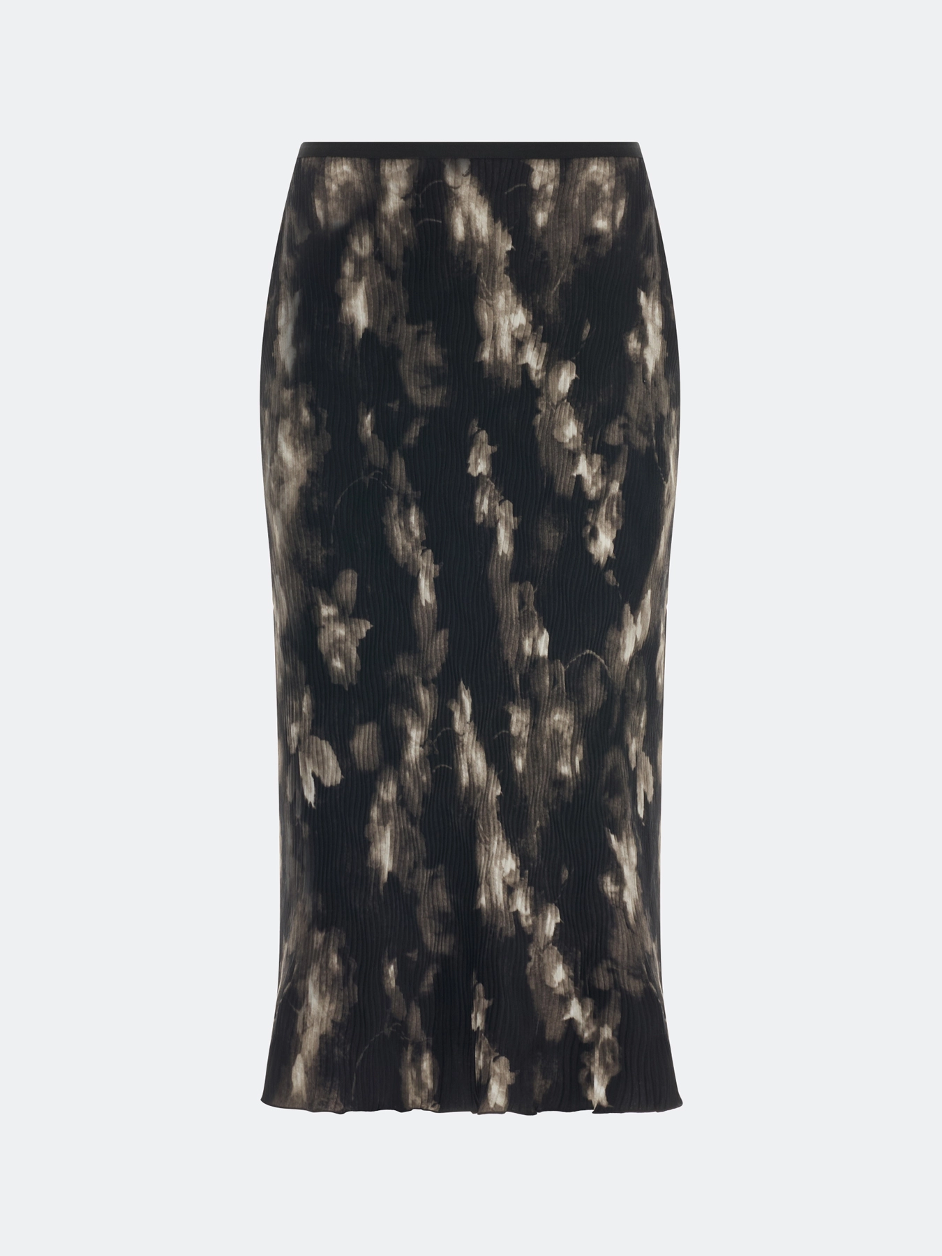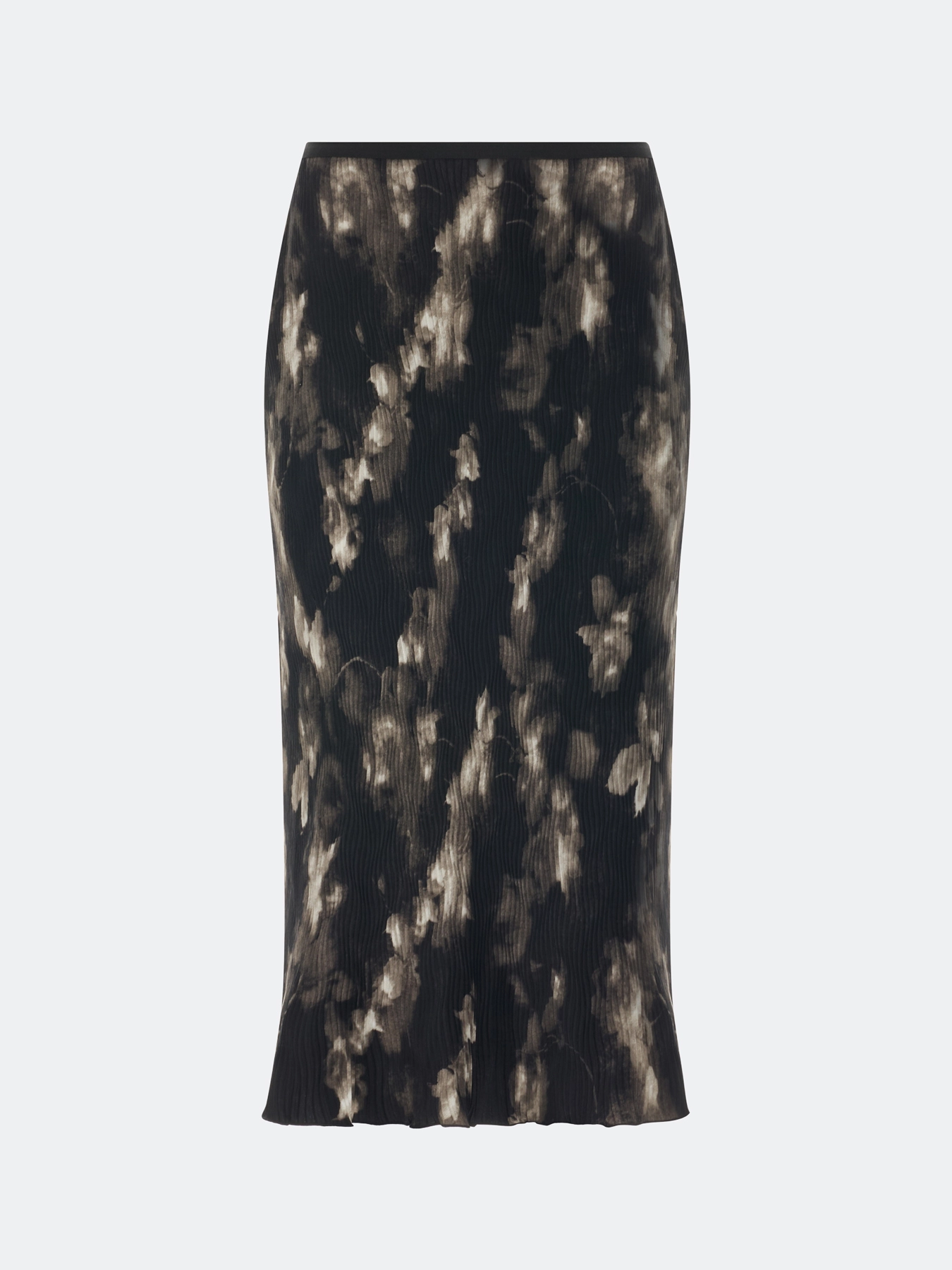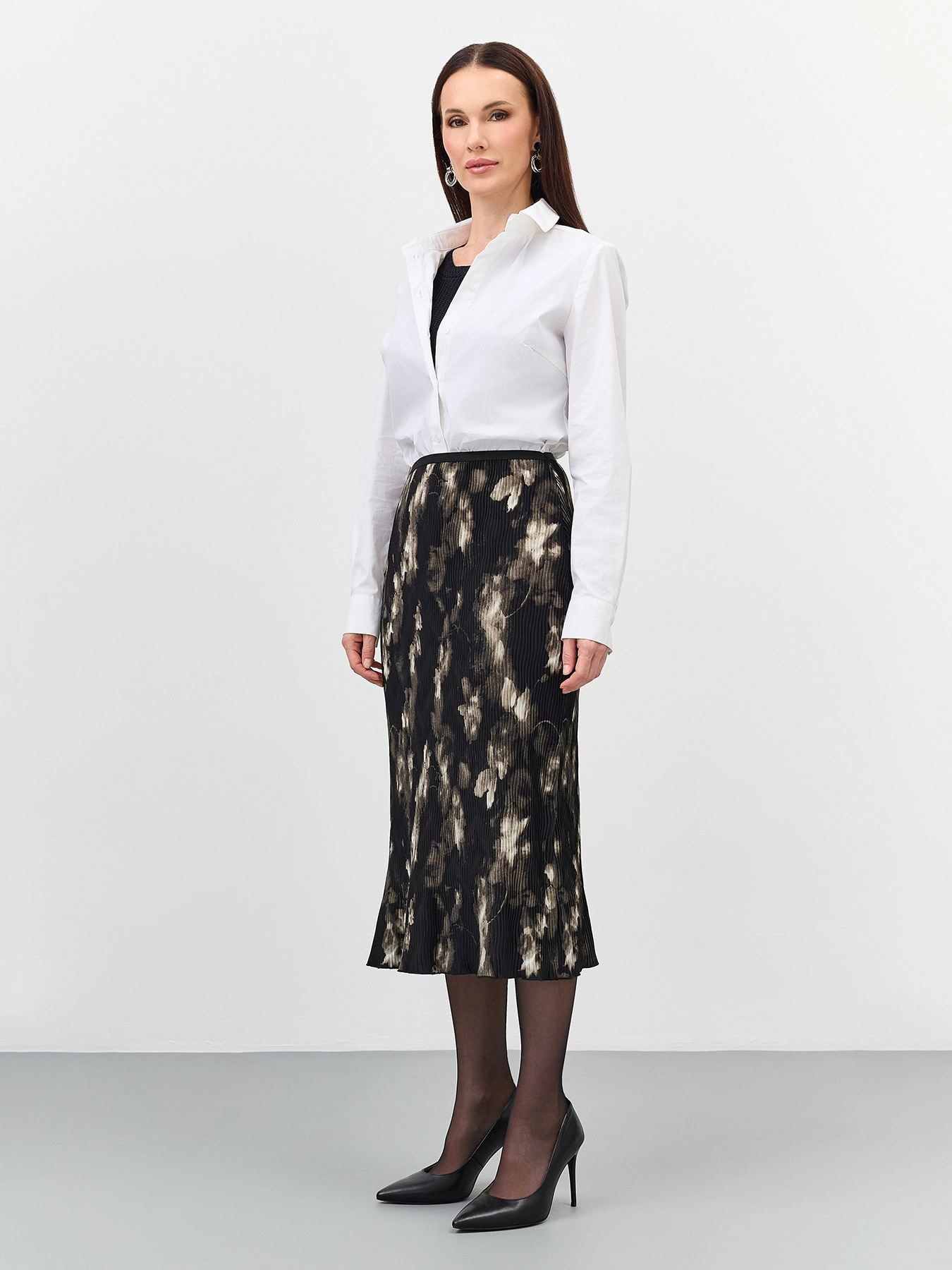 Юбка-плиссе из фактурной ткани с фантазийным принтом. Длина миди. А-силуэт. Оригинальная тонкая волнообразная плиссировка. Эластичный пояс