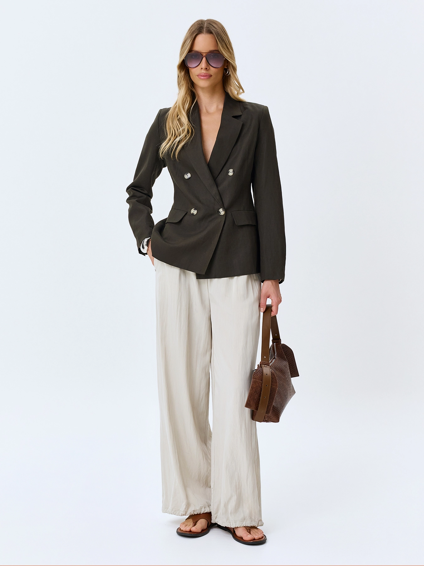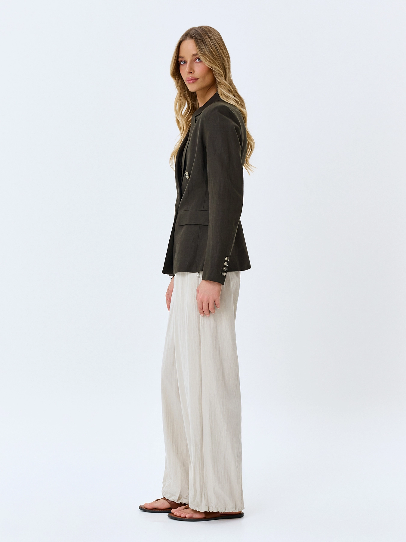 Двубортный льняной жакет