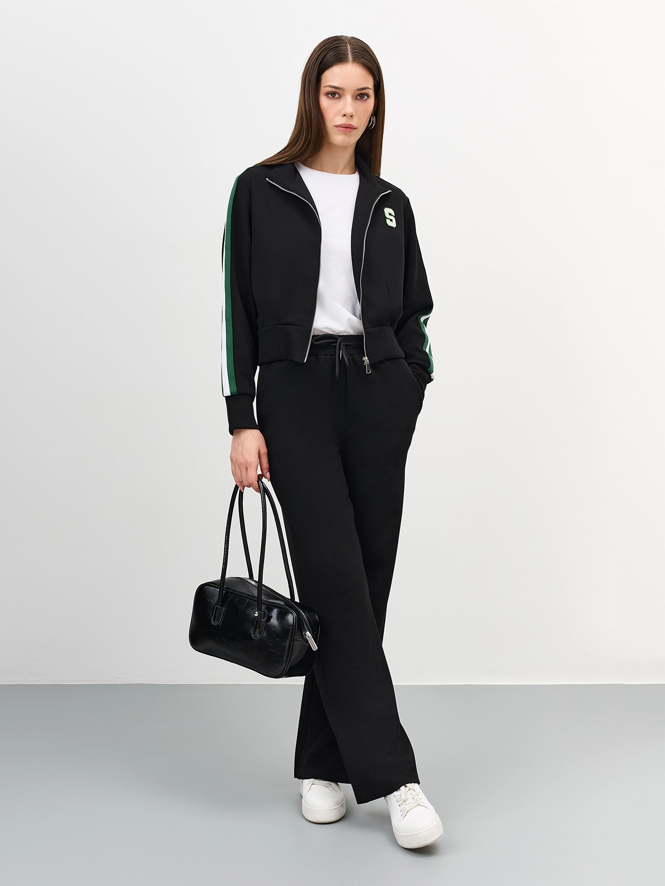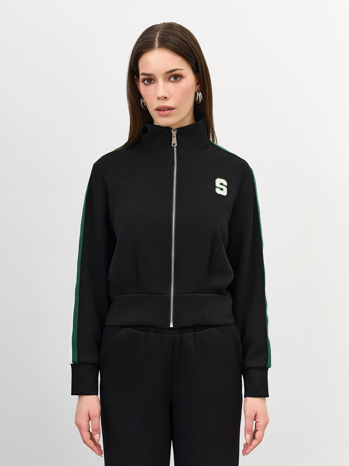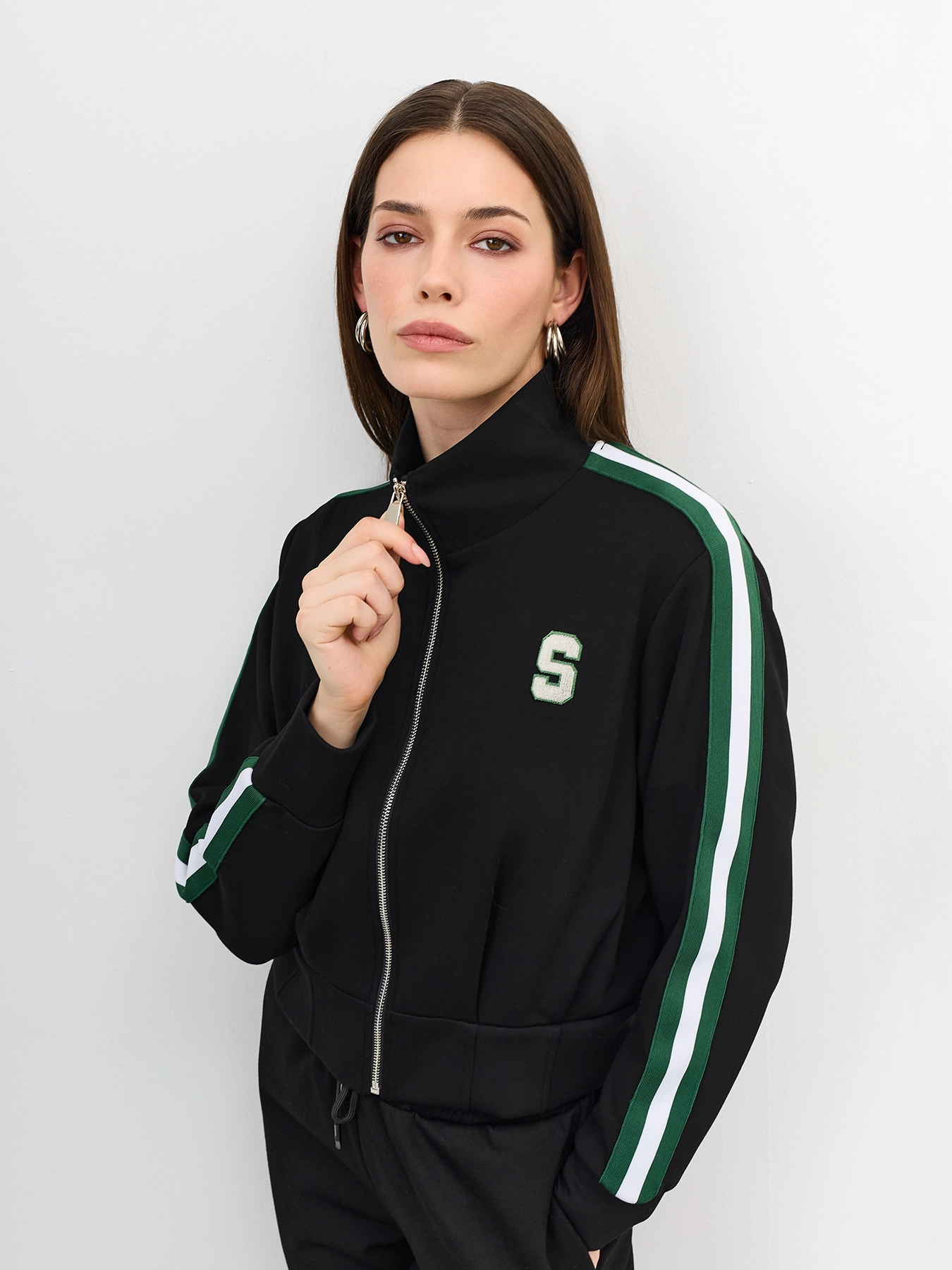 Трикотажный бомбер в спортивном стиле