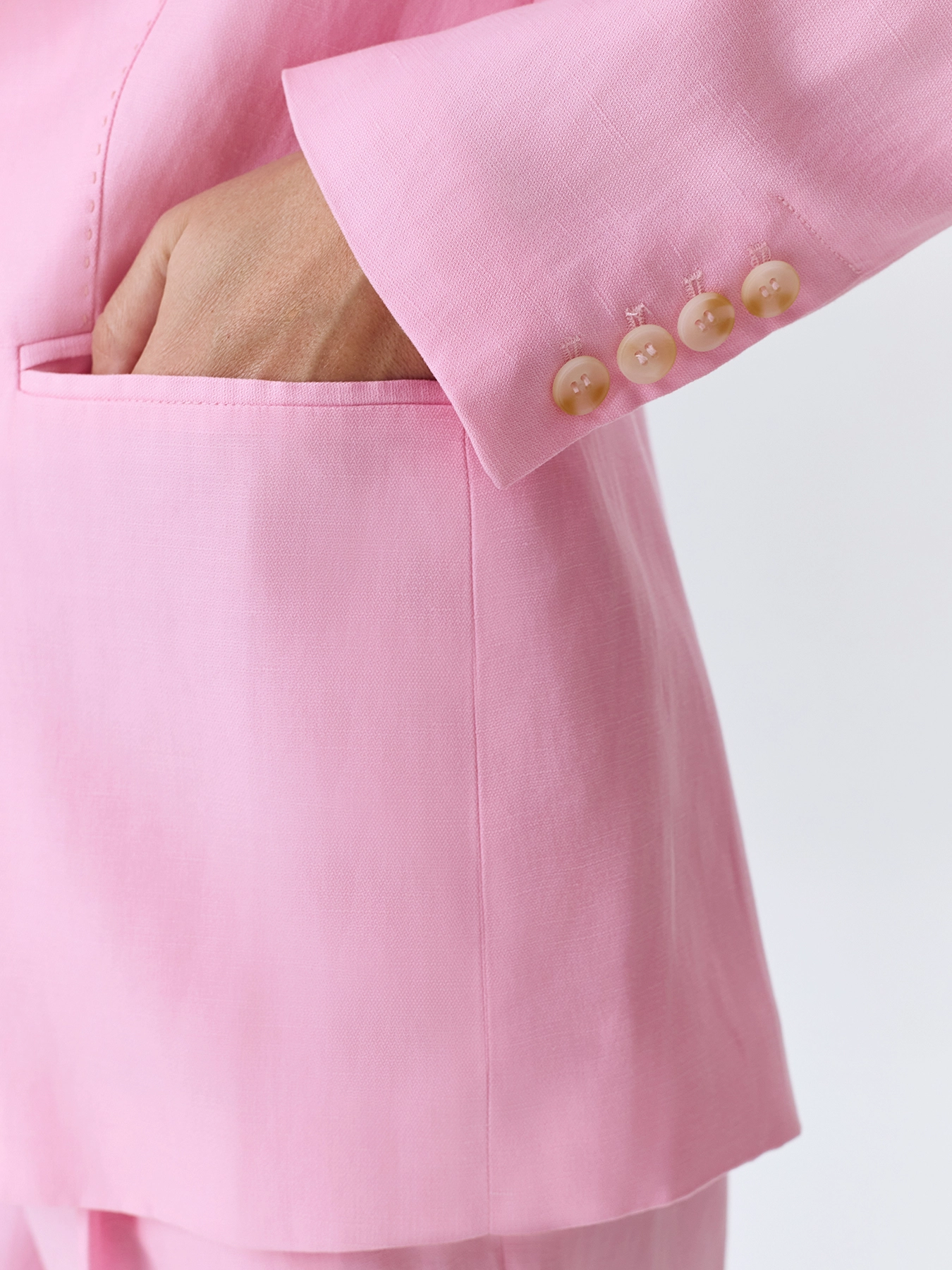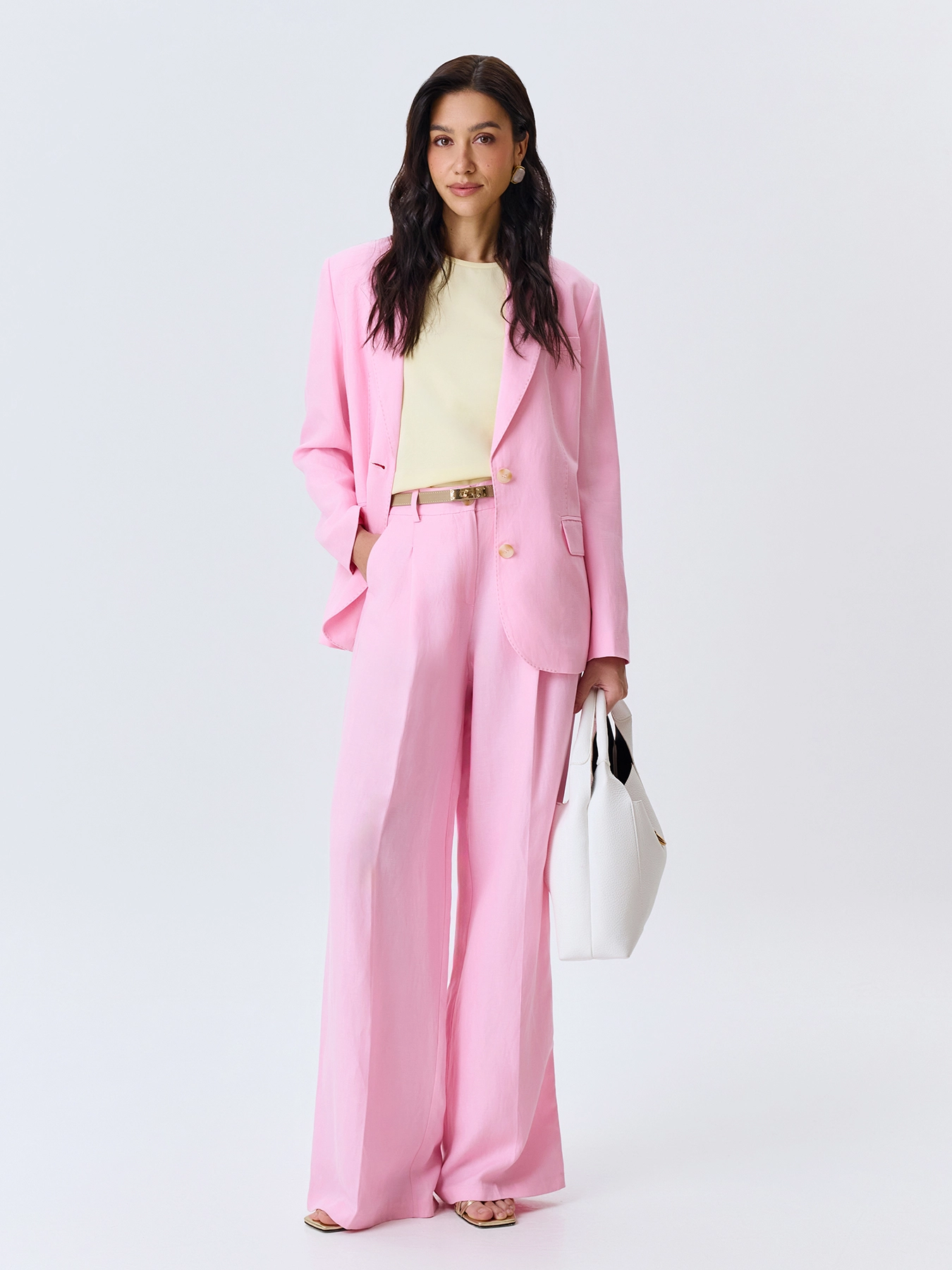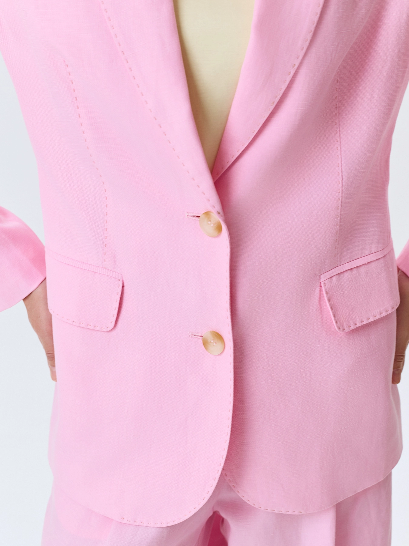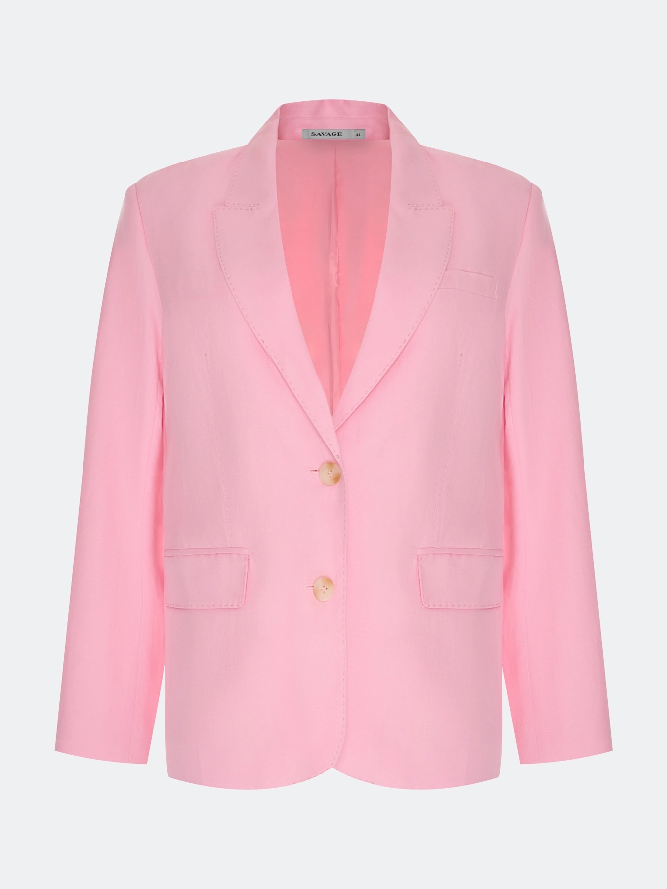 Яркий жакет из смесового тенселя со льном. Свободный силуэт. Классический английский воротник. Застежка на пуговицы. Боковые карманы с клапанами. Имитация нагрудного кармана с листочкой. Дополнен отделкой имитирующей ручной стежок. Комплект с 63412.