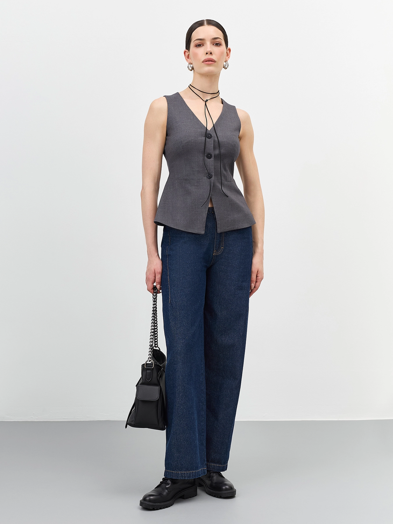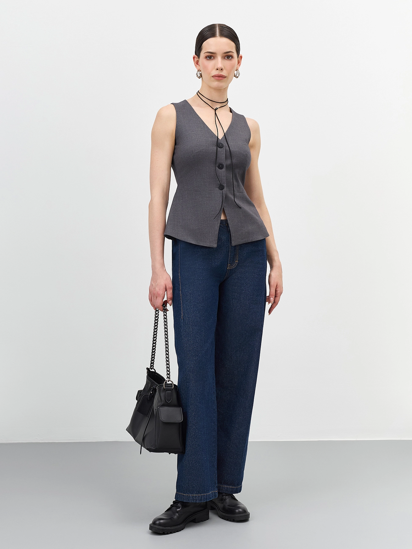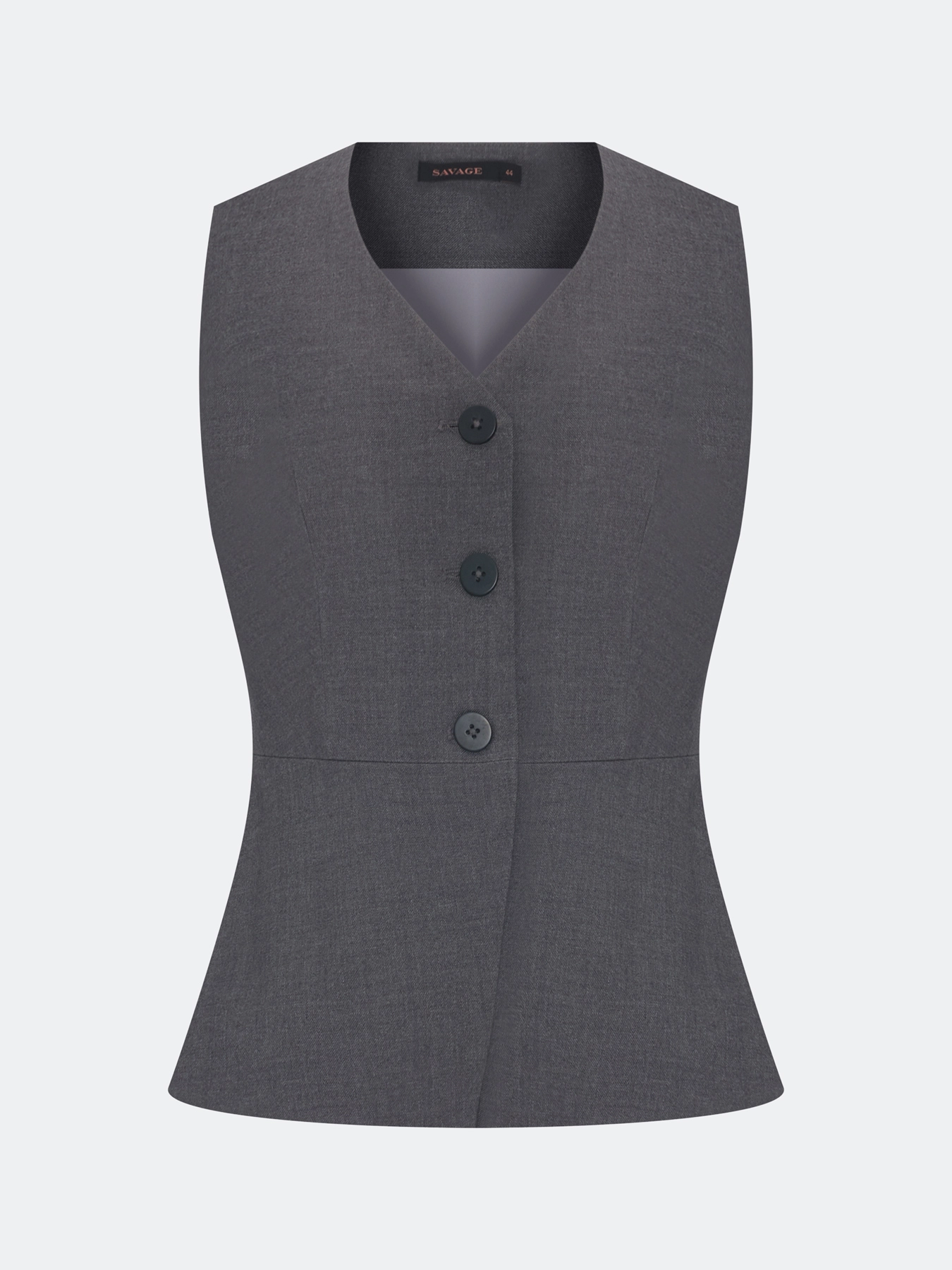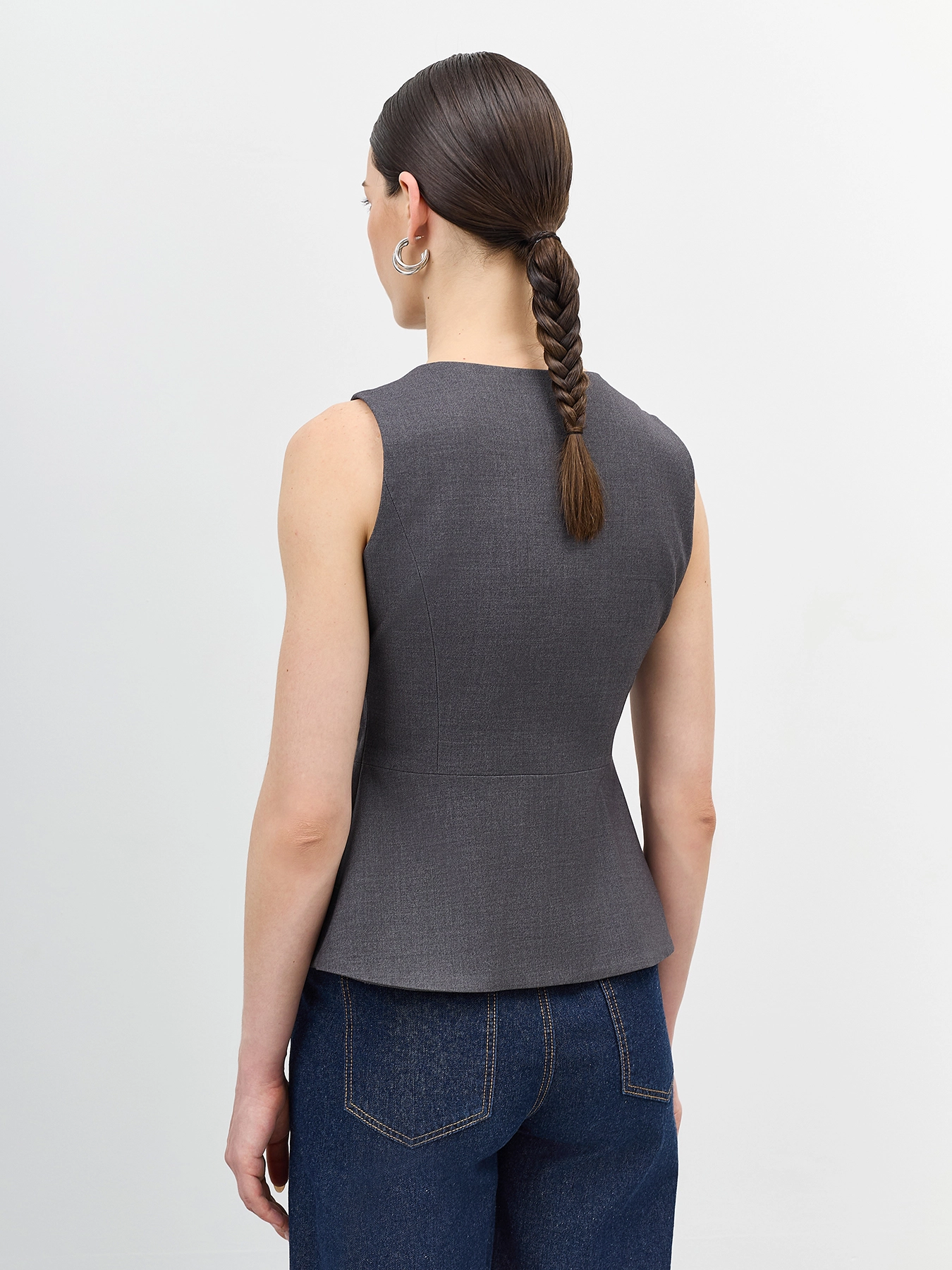 Удлиненный приталенный классический жилет. V-образный вырез. Застежка на пуговицы. В составе вискоза и шерсть. Подкладка из 100% вискозы. Комплект с арт. 60517.