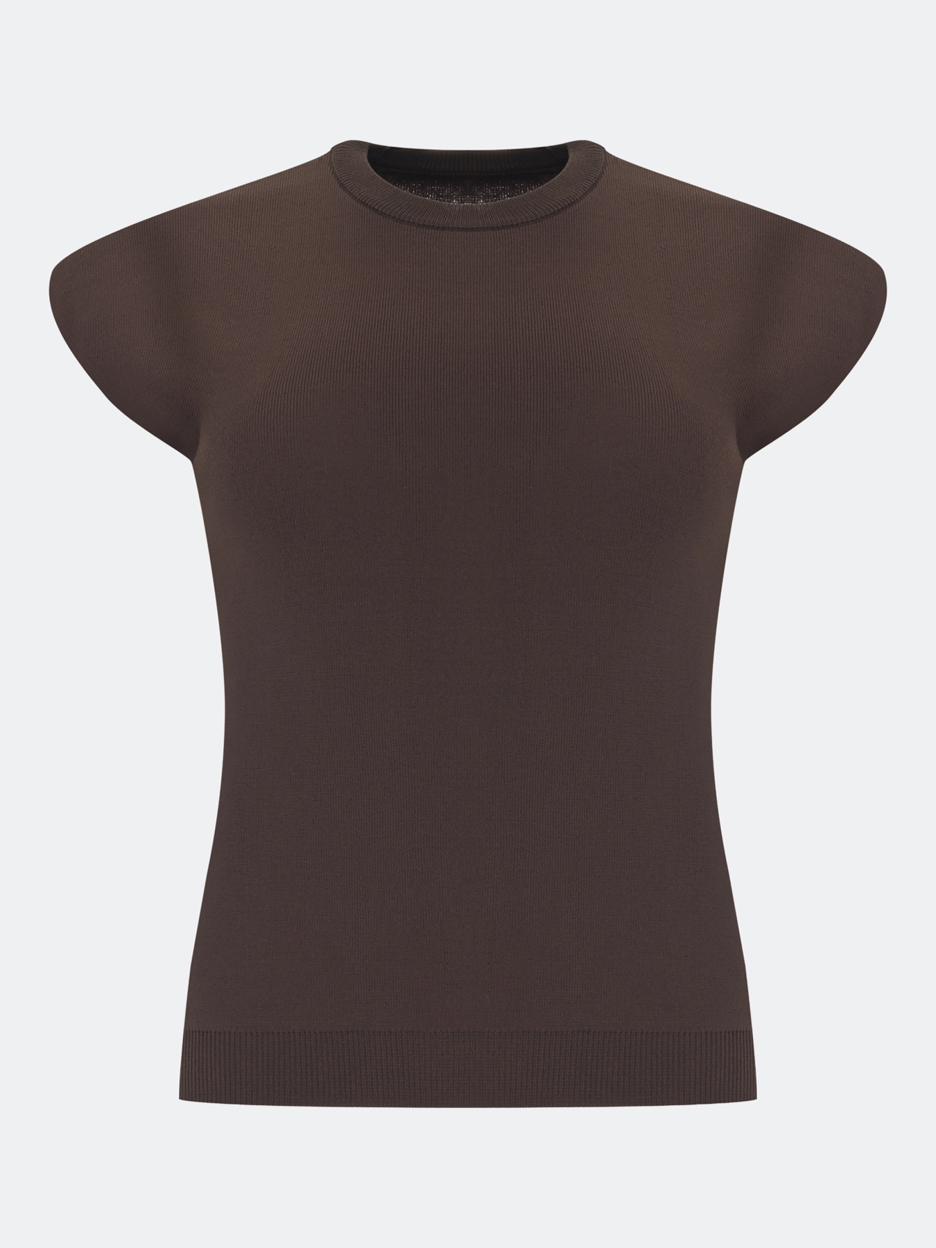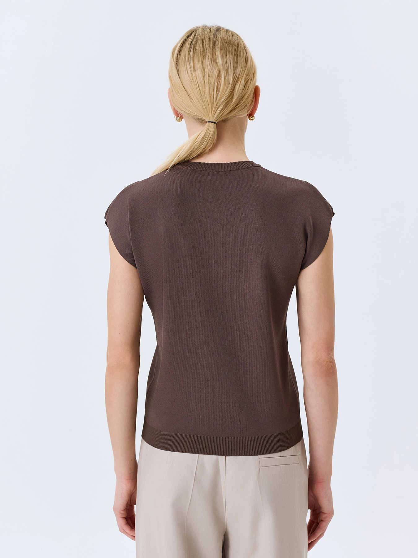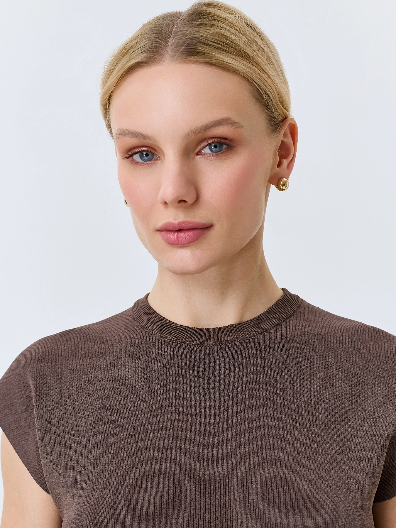 Вязаный топ из вискозы. Свободный силуэт. Круглый вырез. Риб по низу изделия. Спущенная линия плеч.