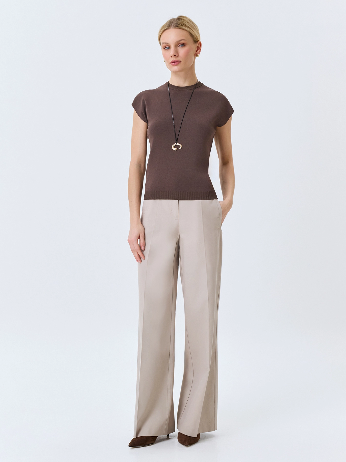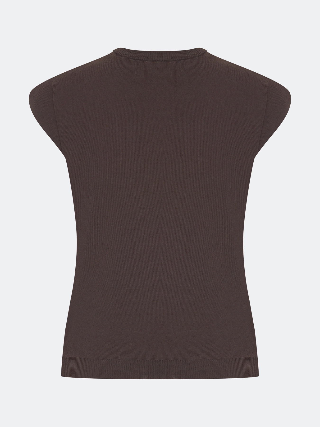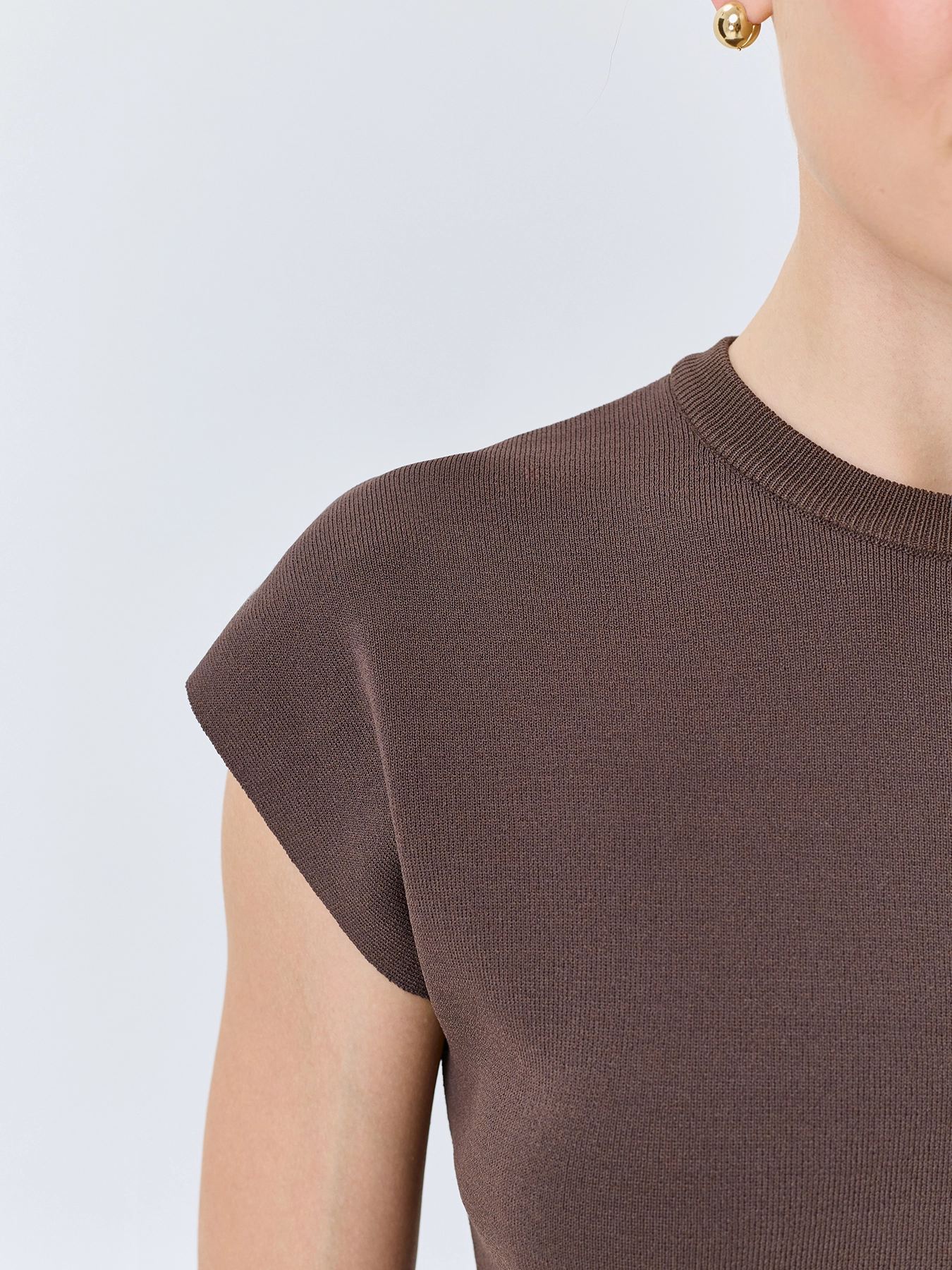 Вязаный топ из вискозы. Свободный силуэт. Круглый вырез. Риб по низу изделия. Спущенная линия плеч.