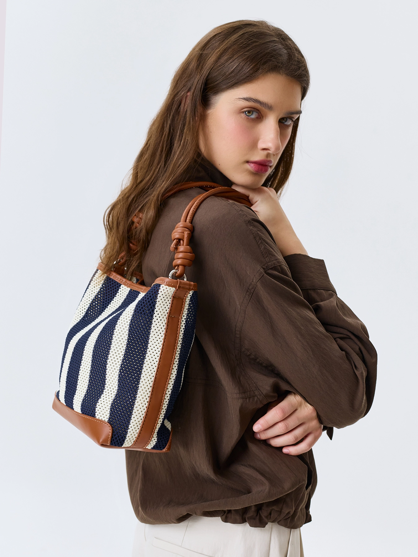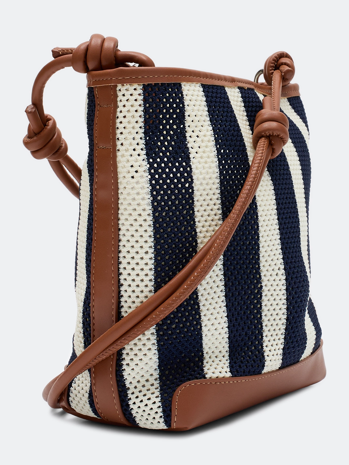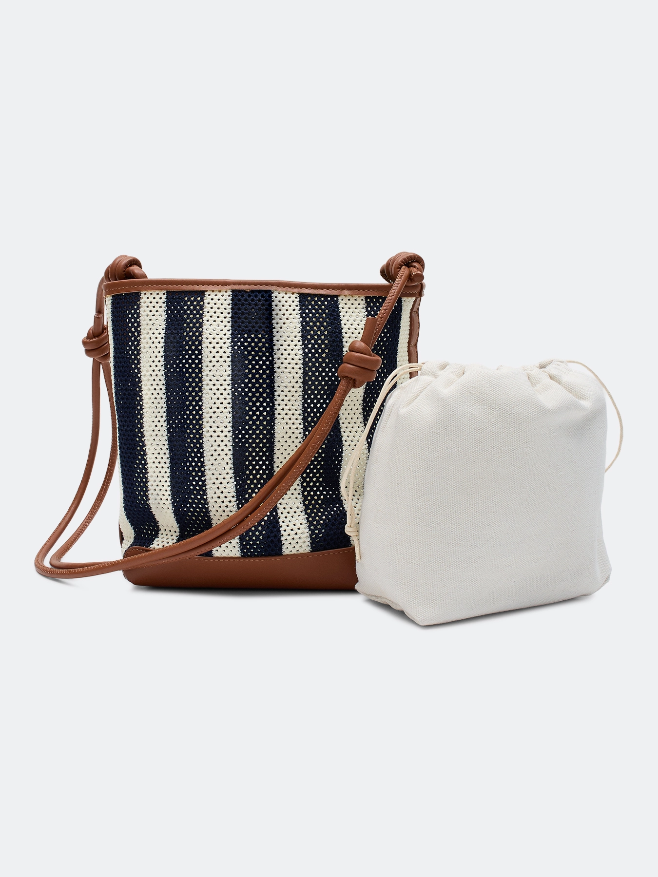 Плетеная сумка из хлопка с текстильной косметичкой в комплекте. Одна длинная ручка с акцентными декоративными узлами. Застежка на внутреннюю кнопку. Косметичка на шнурке.