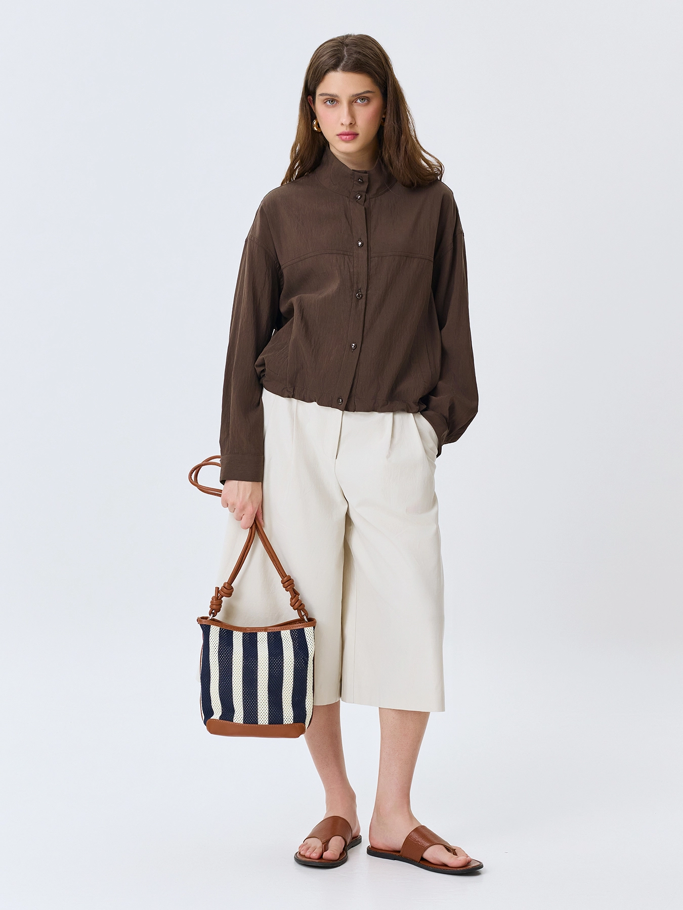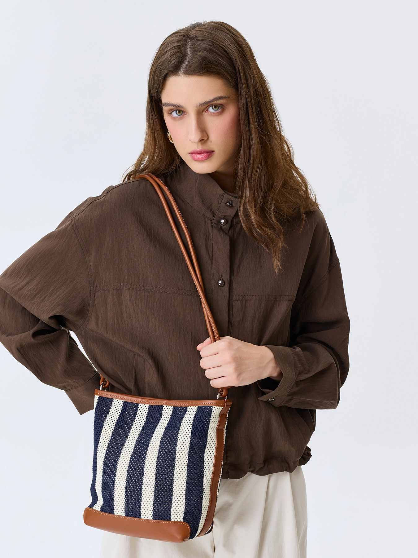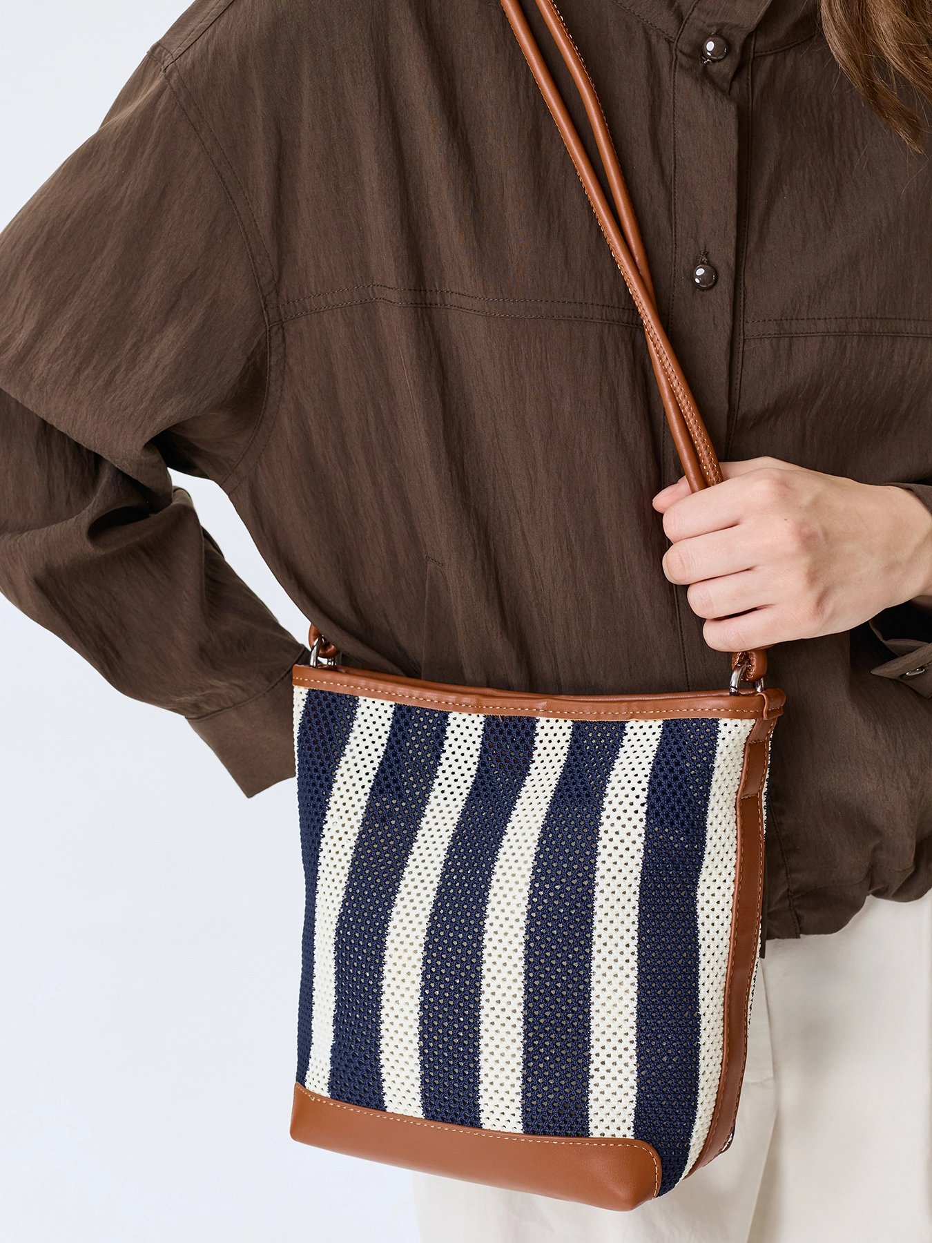 Плетеная сумка из хлопка с текстильной косметичкой в комплекте. Одна длинная ручка с акцентными декоративными узлами. Застежка на внутреннюю кнопку. Косметичка на шнурке.