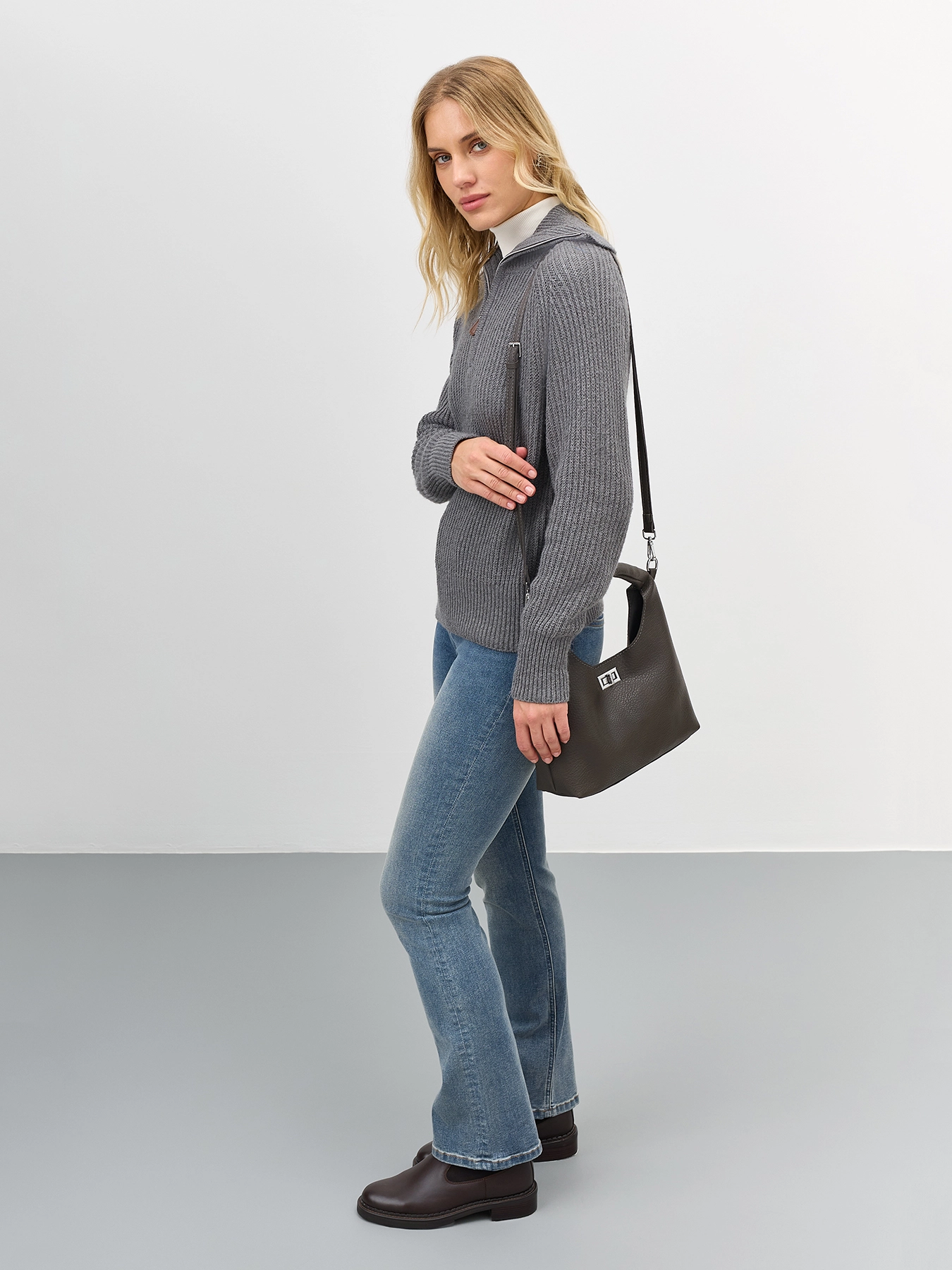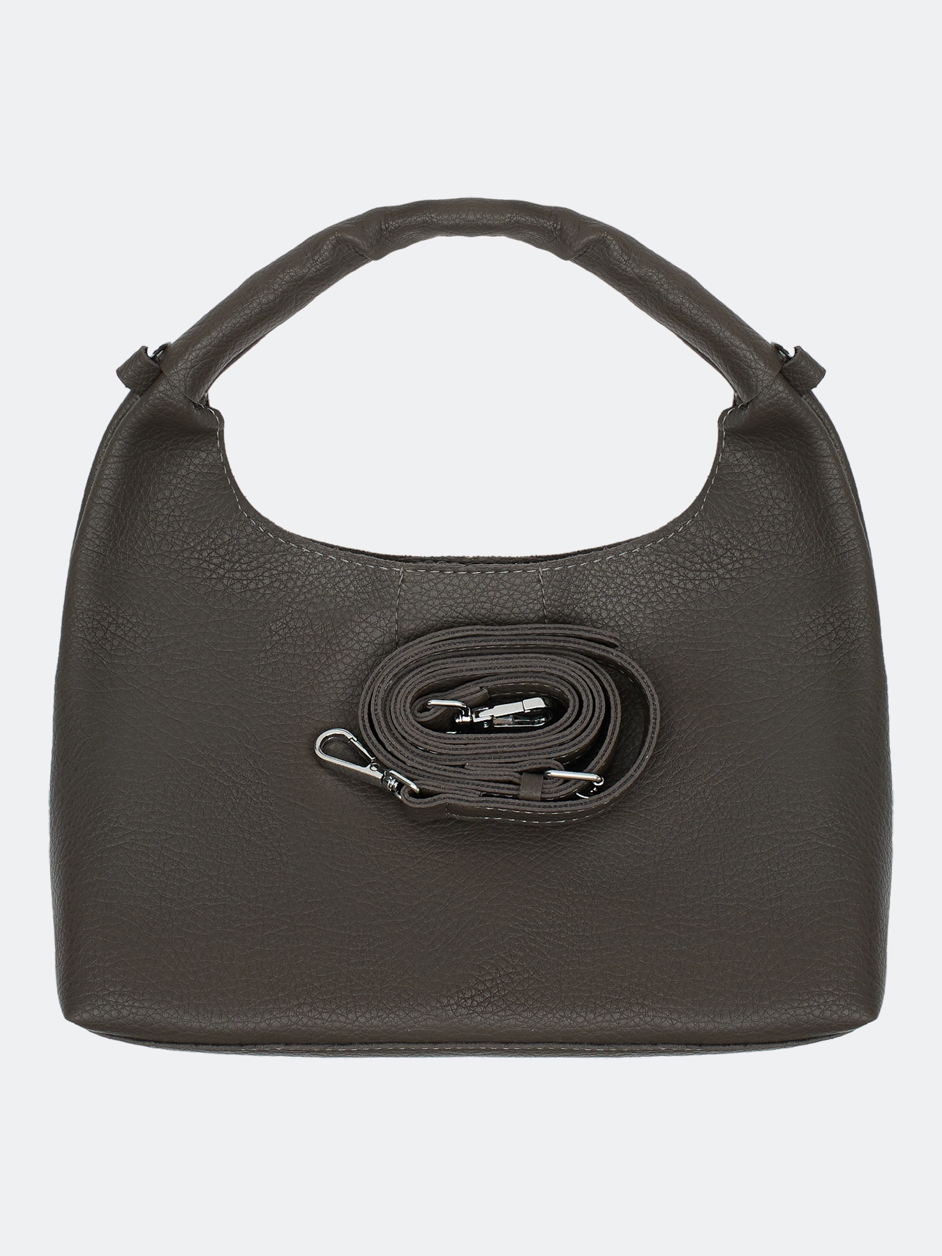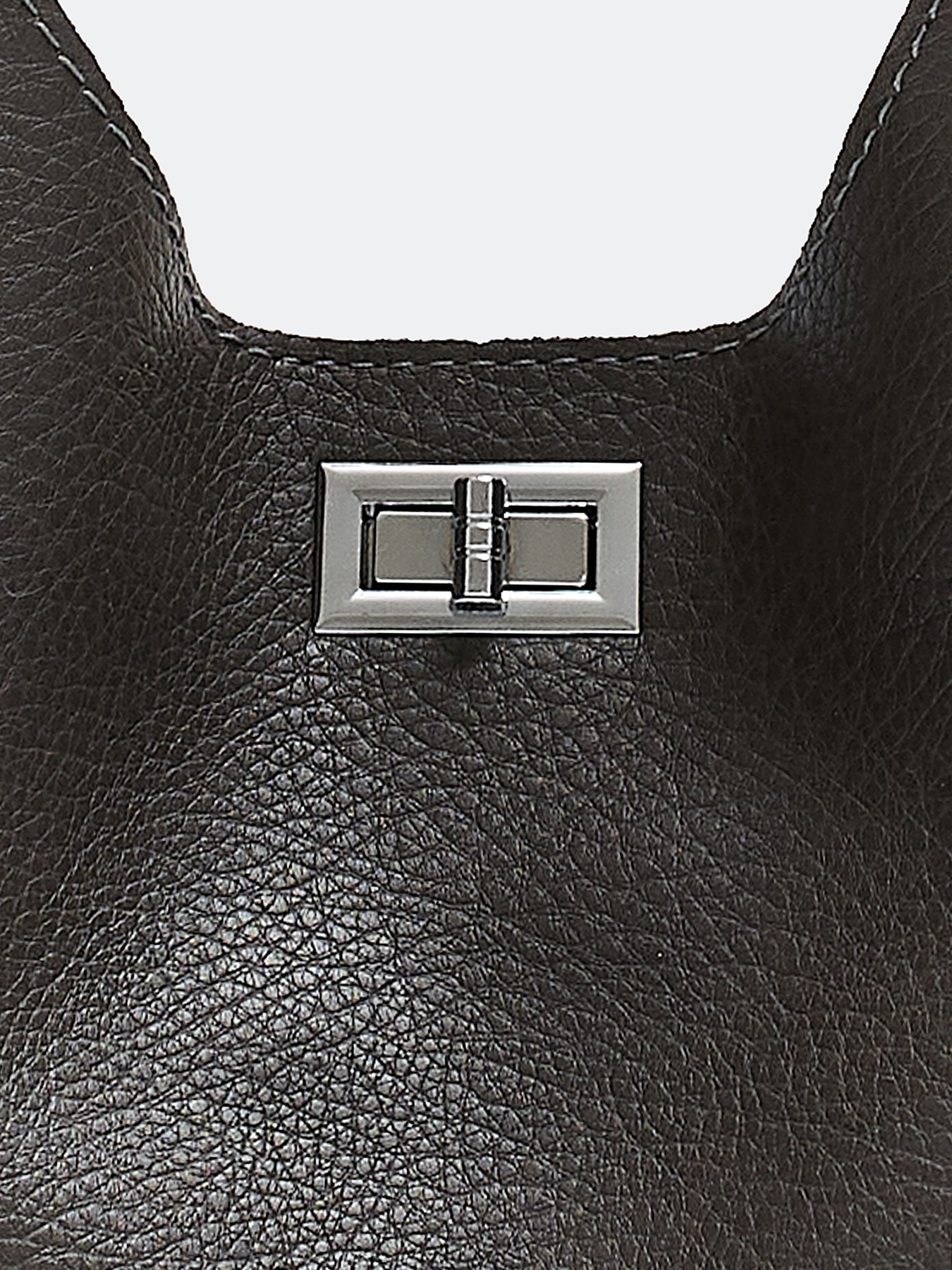 Комплект сумка с фигурной ручкой и косметичка из искусственной кожи. Одно вместительное отделение и карман. Дополнительный потайной карман на молнии. Застежка на поворотный механизм. Длинный съемный ремешок и короткая фактурная ручка. В комплекте косметичка с застежкой на молнию.