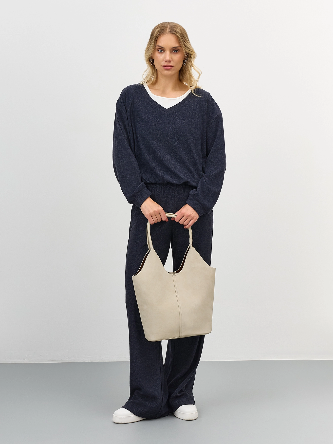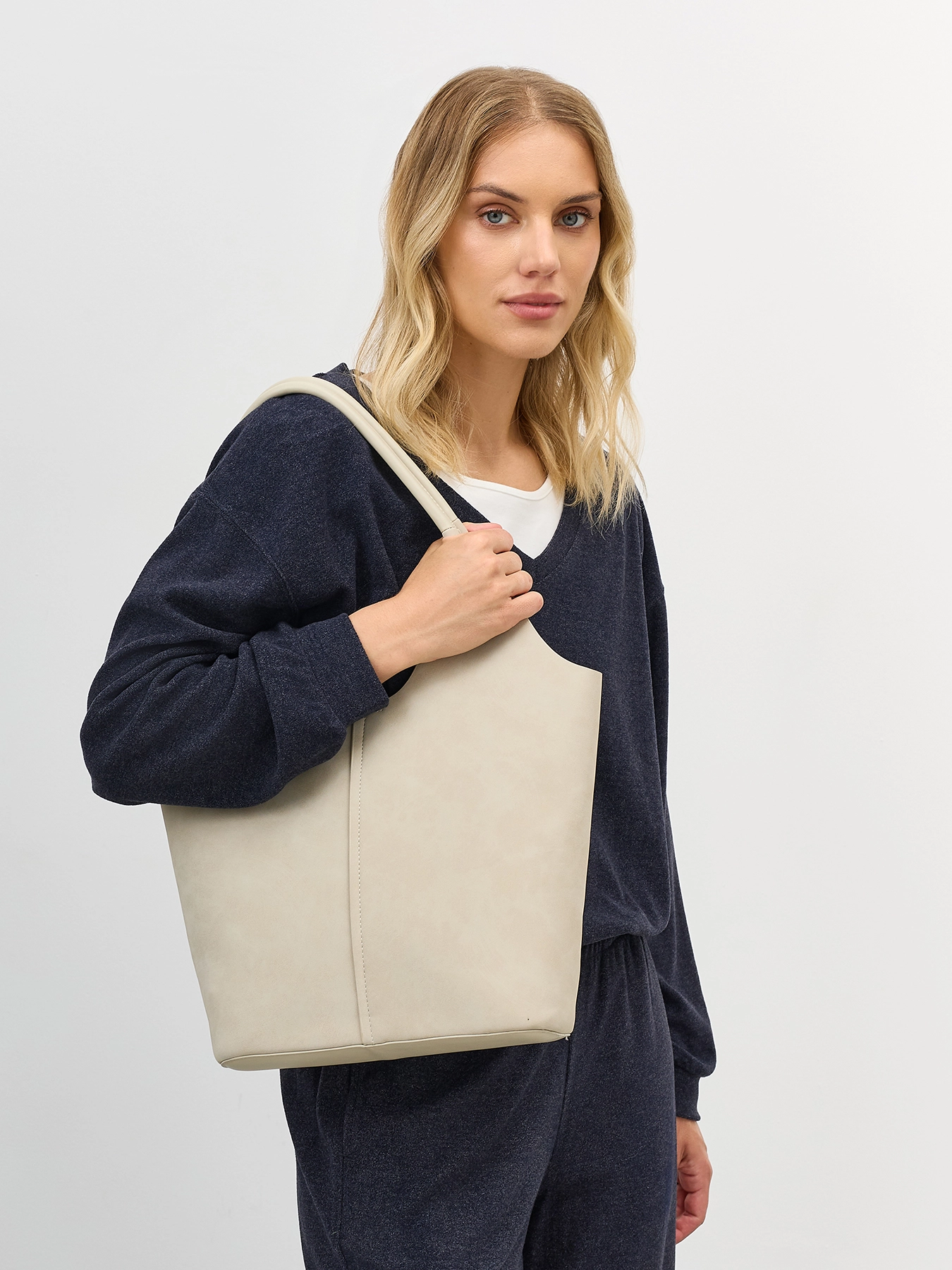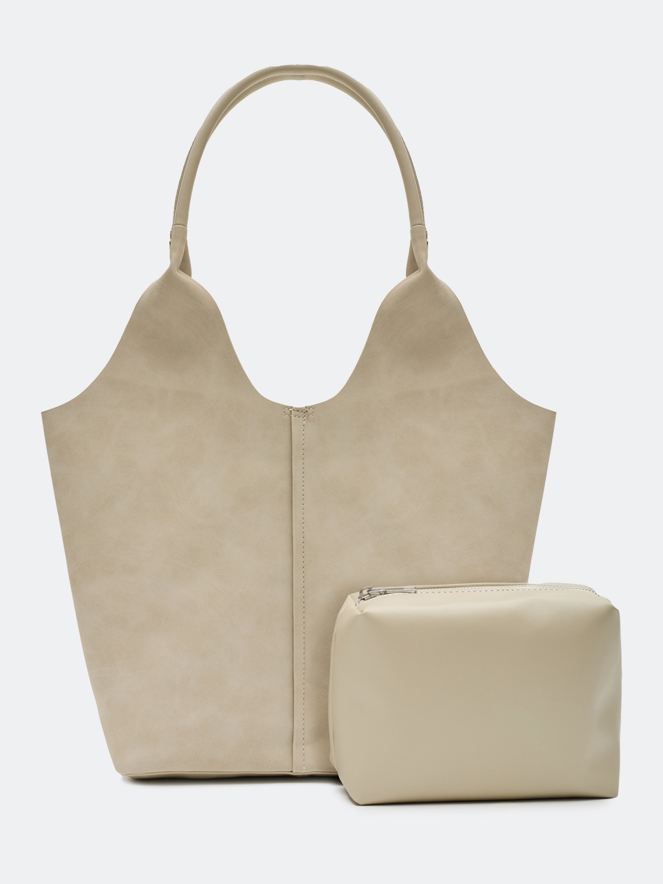 Комплект: сумка-шоппер и косметичка из эко кожи. Одно вместительное отделение. Застежка на магнитную кнопку. Две короткие ручки. В комплекте косметичка с застежкой на молнию.