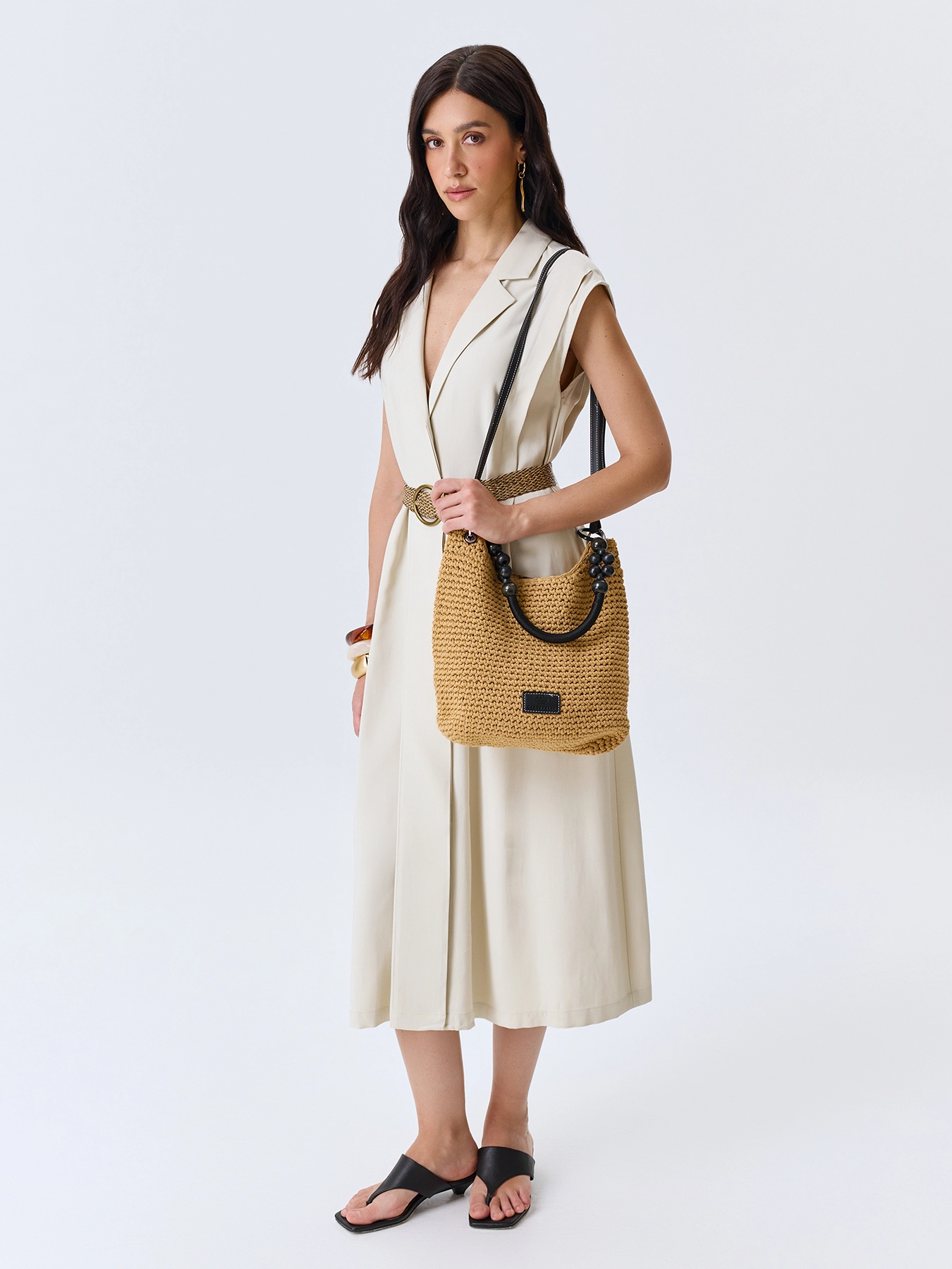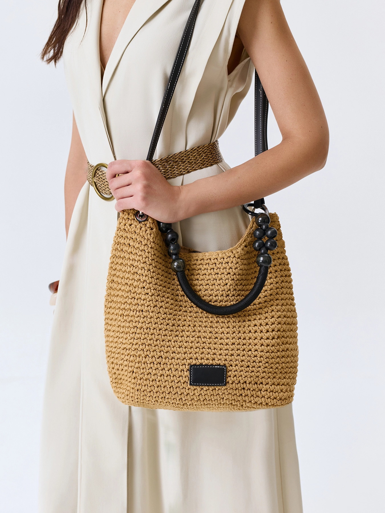 Плетеная сумка с акцентной ручкой