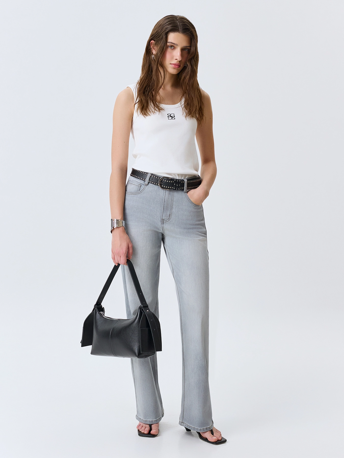Прямые серые джинсы