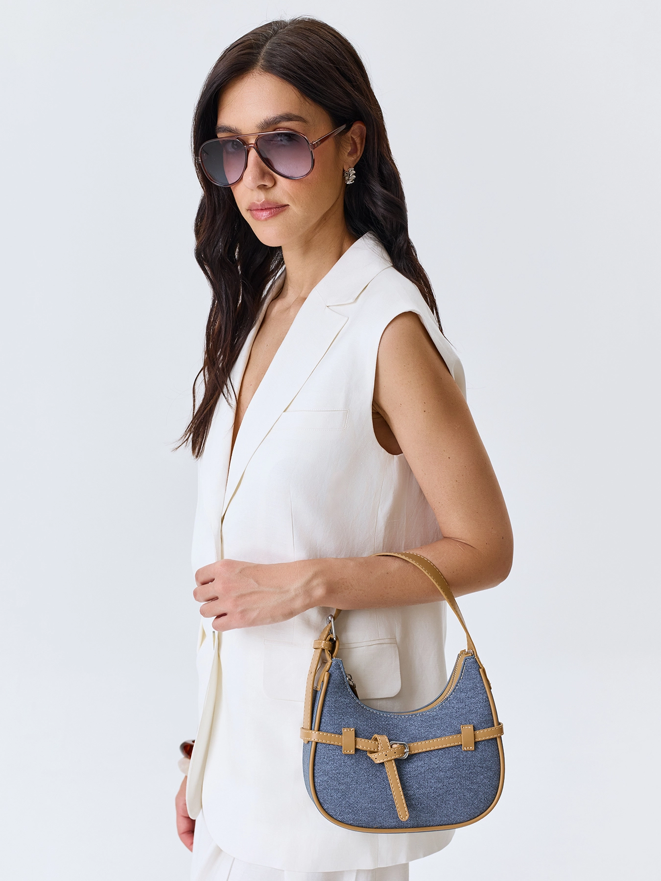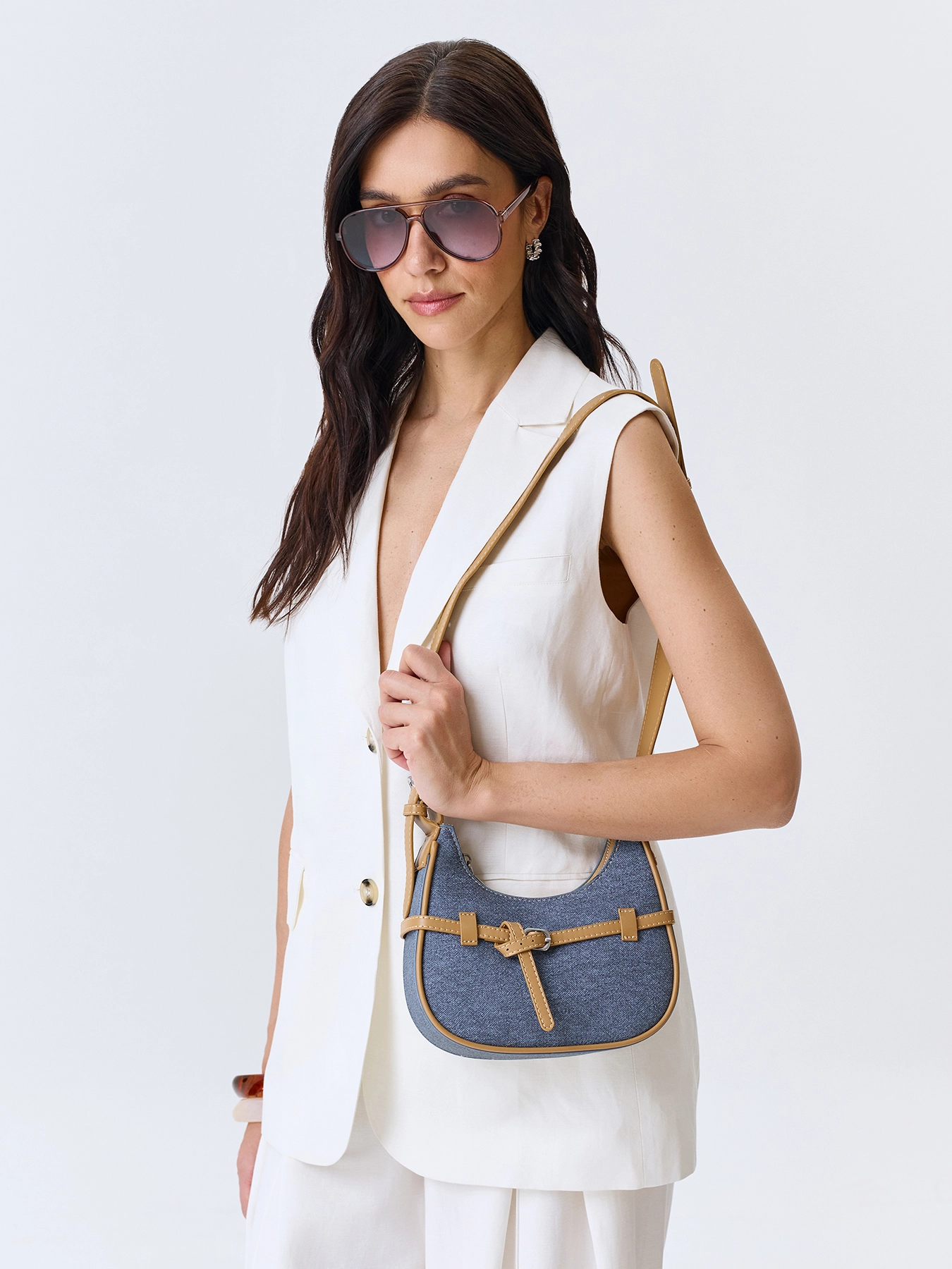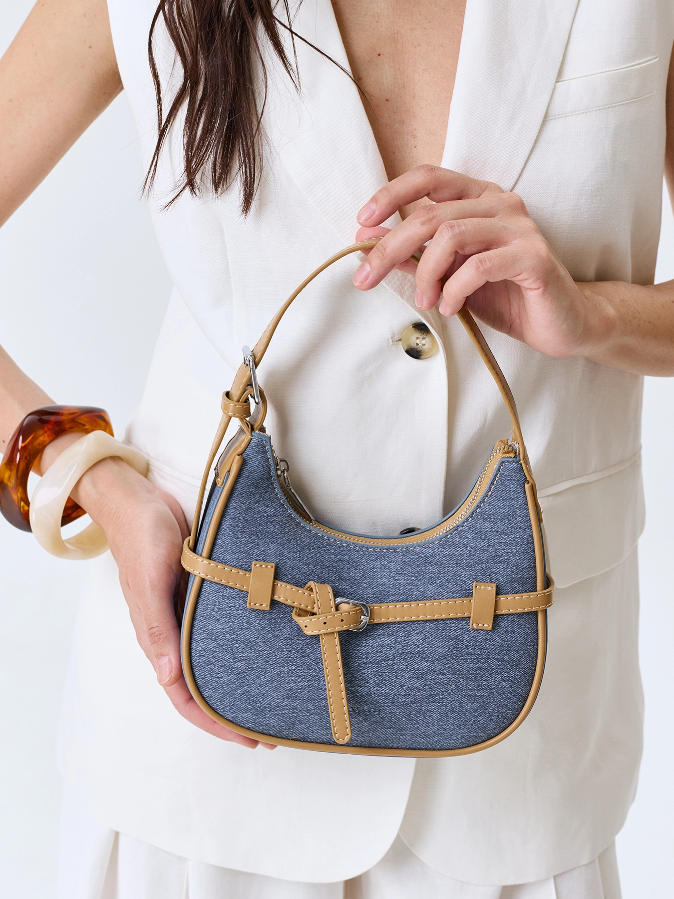Сумка-багет с акцентными ремешками
