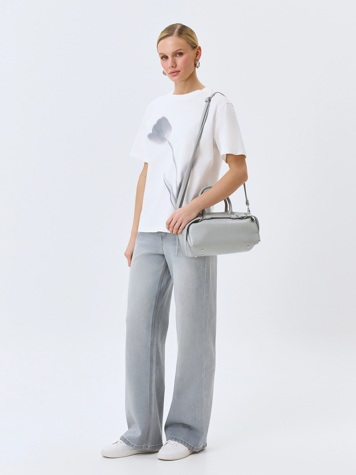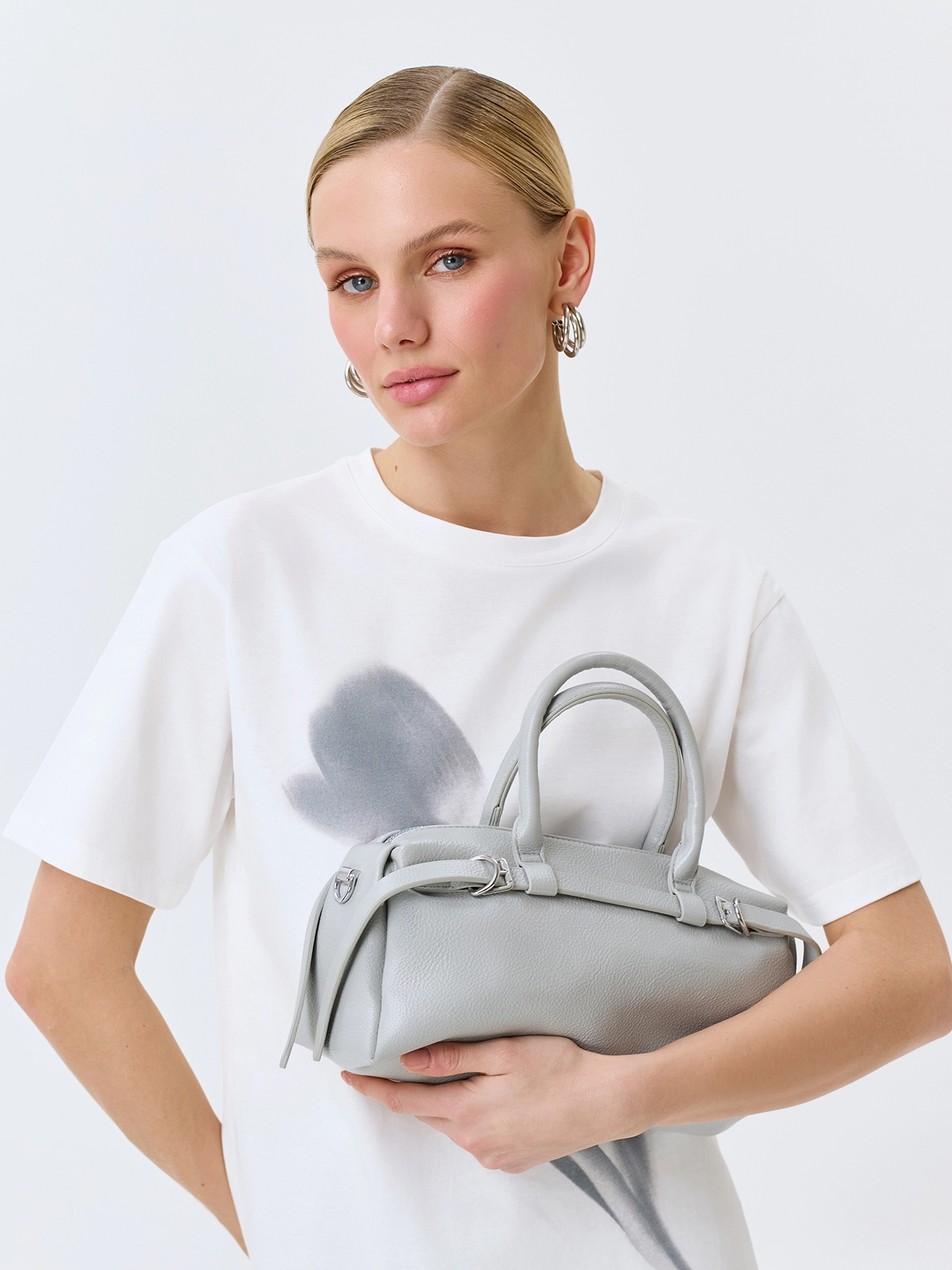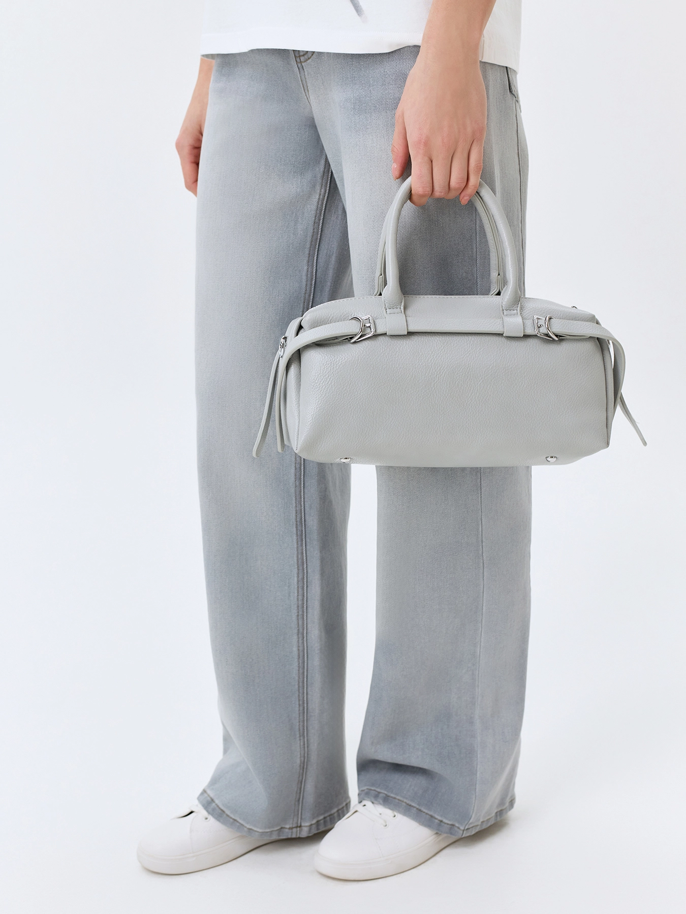 Сумка-багет из мягкой эко кожи коричневого цвета. Мягкая форма, две короткие ручки и длинный регулируемый ремешок в комплекте. Застёжка на молнию. Подкладка из 100% полиэстера.