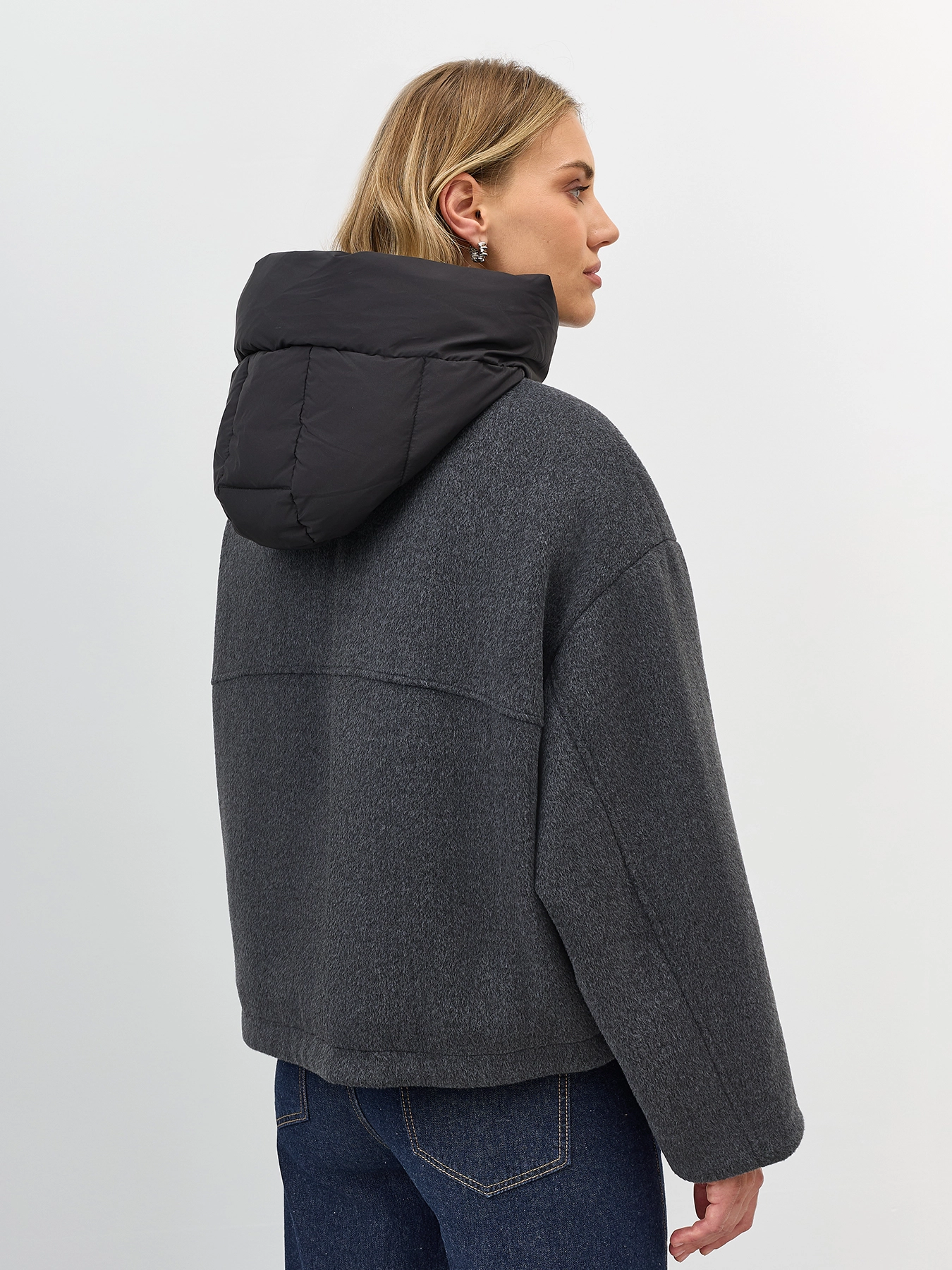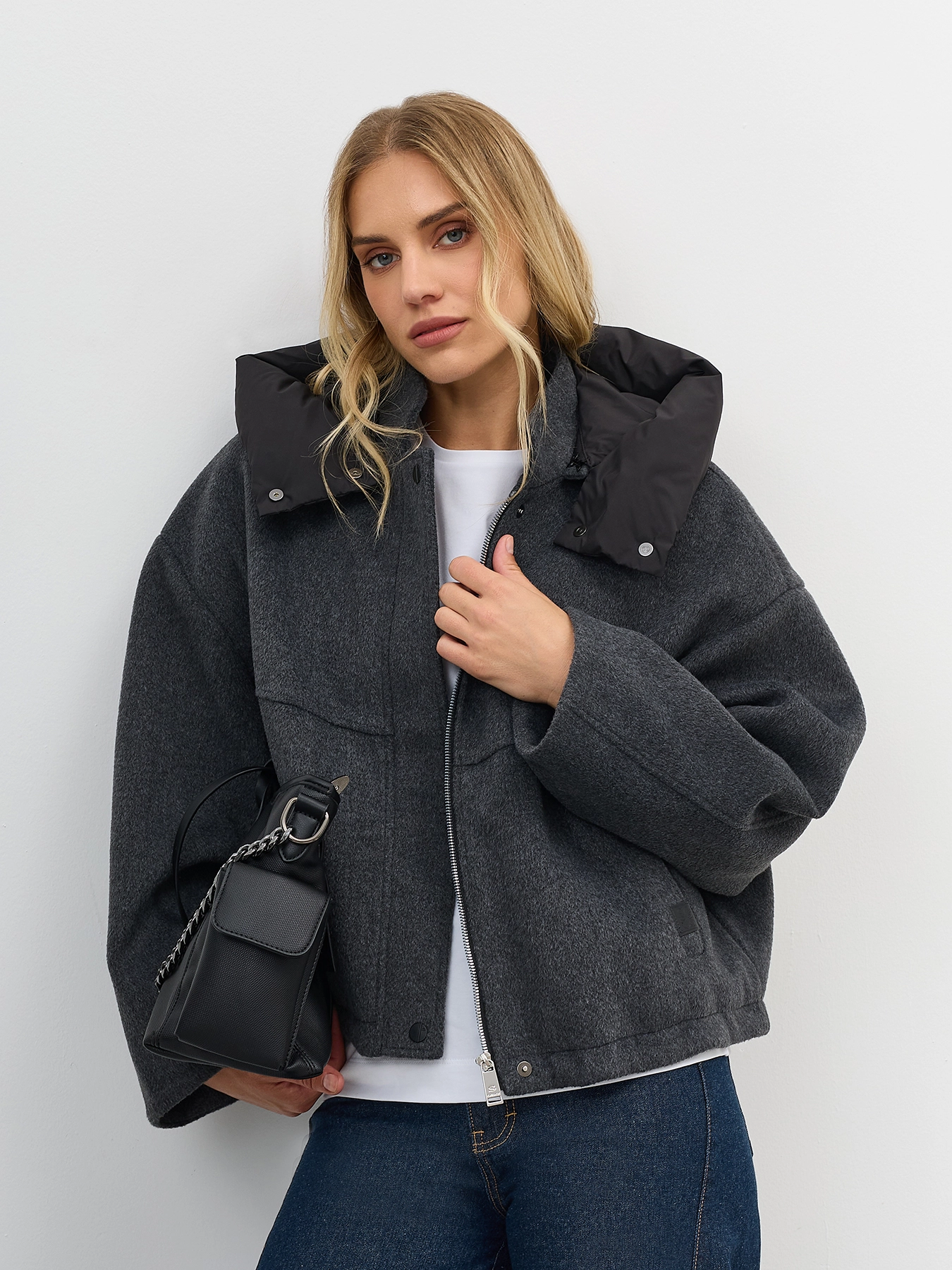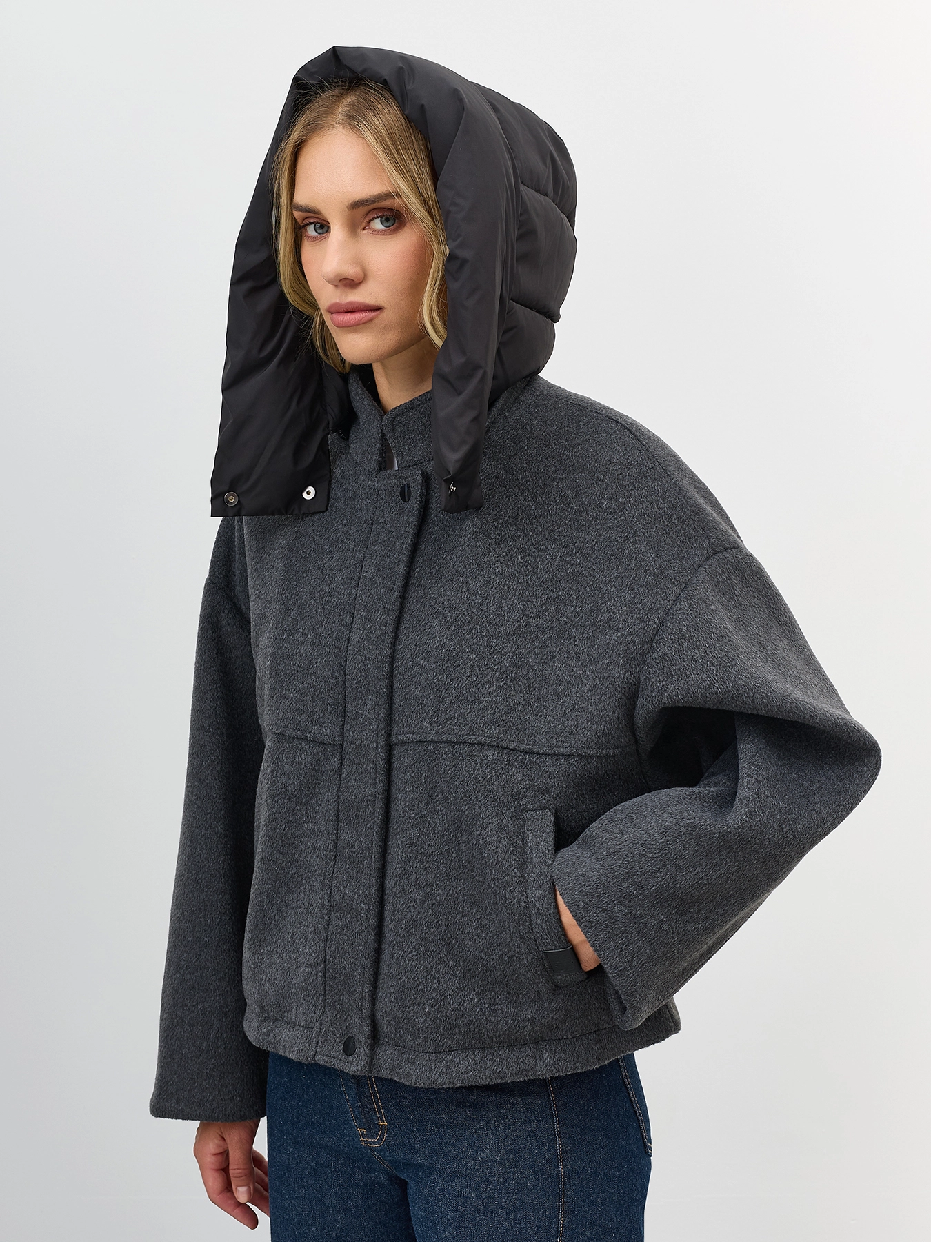 Укороченная куртка с акцентным капюшоном