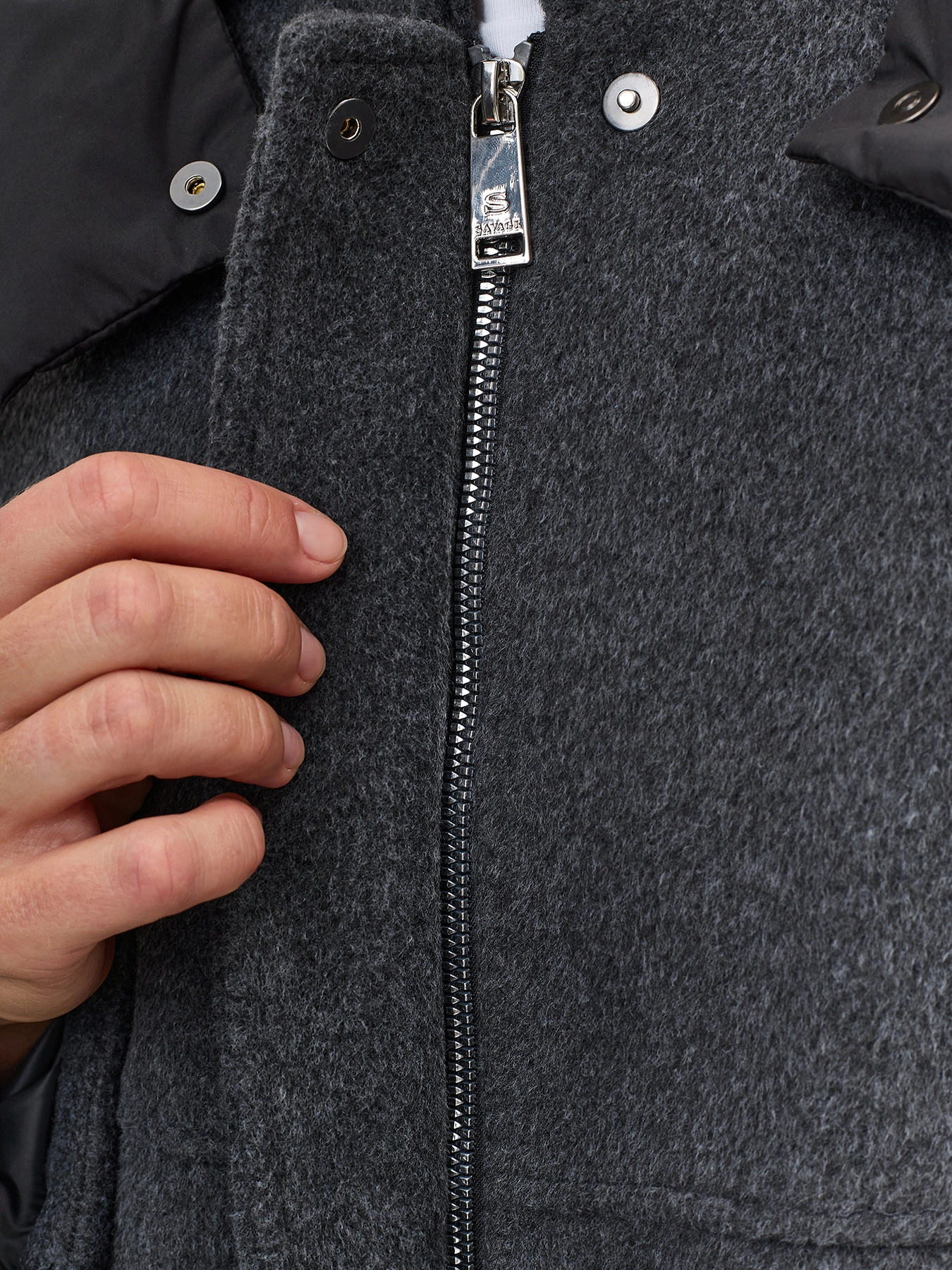 Укороченная куртка Oversize из ворсового текстиля с акцентным съемным капюшоном на кнопках. Свободный объемный силуэт. Спущенная линия плеч. Сборка и кулиса по низу изделия для защиты от ветра. Боковые карманы с листчоками. Воротник стойка. Застежка на молнию и планку с кнопками.