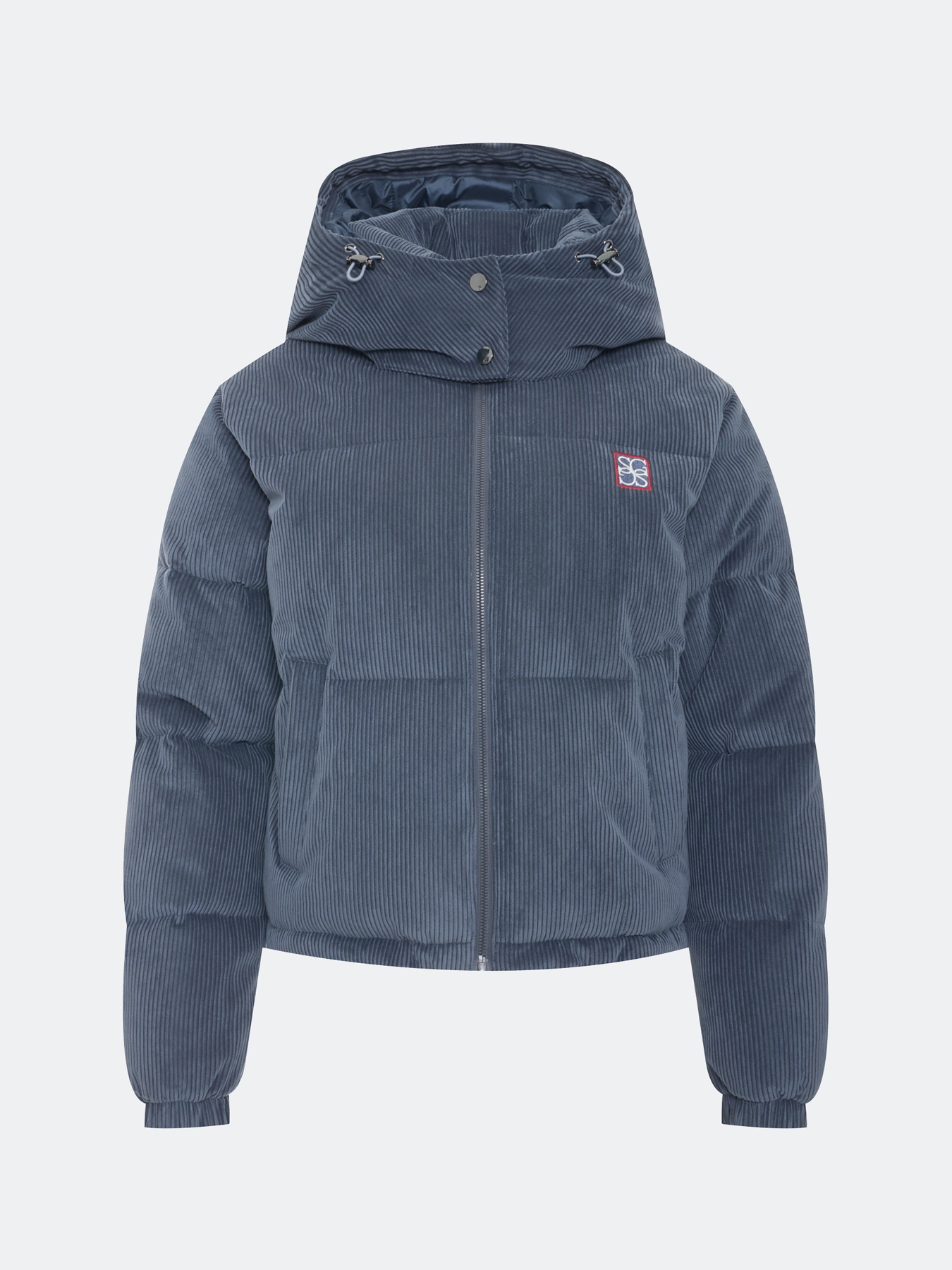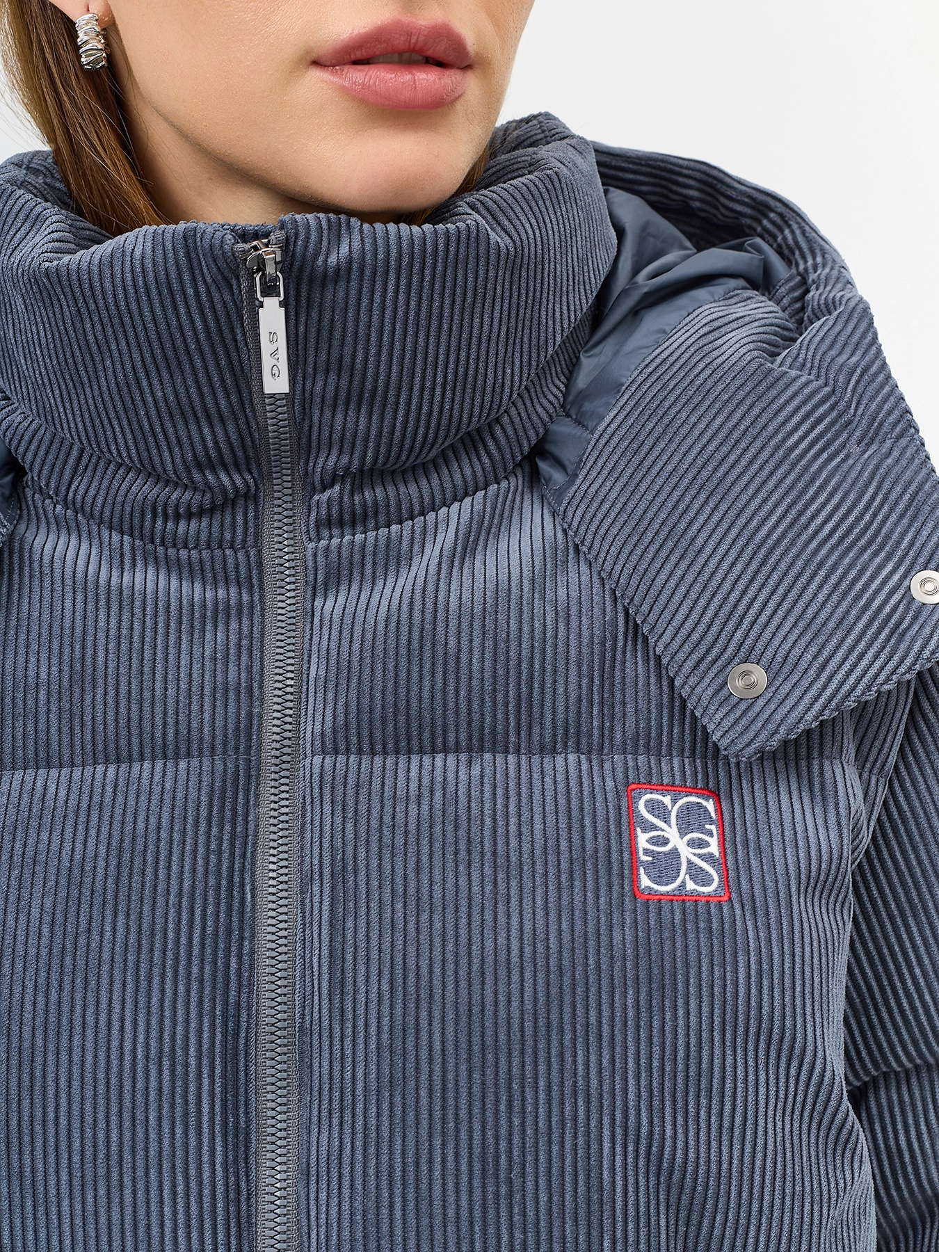 Вельветовая куртка с деликатной варкой. Свободный силуэт. Воротник стойка дополнен съемным капюшоном на кнопках с утяжниками. Застежка на молнию. Боковые карманы с листочками. Резинки по низу рукавов. Утяжники по низу изделия для защиты от ветра. Дополнена контрастной вышивкой.