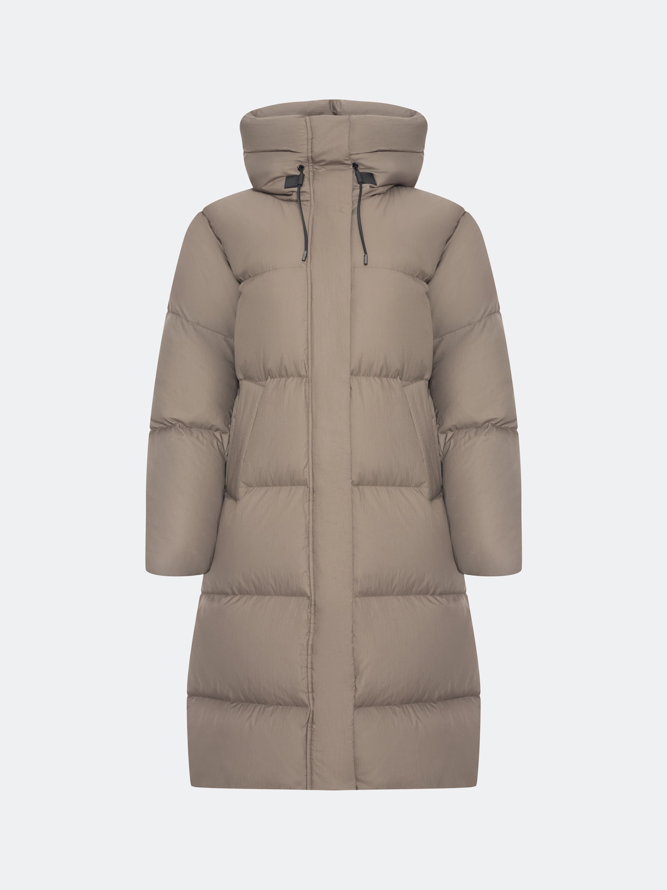 Длинный Oversize пуховик из фактурного нейлона с крэш эффектом. Свободный силуэт. Длина миди. Спущенная линия плеч. Воротник стойка дополнен капюшоном с утяжниками. Застежка на молнию и планку с потайными кнопками. Боковые карманы с листочками. Дополнен трикотажными манжетами по низу рукавов. Утепленная подкладка изделия и воротника. Дополнен внутренними лямками- подтяжками. Утеплитель- натуральный пух.