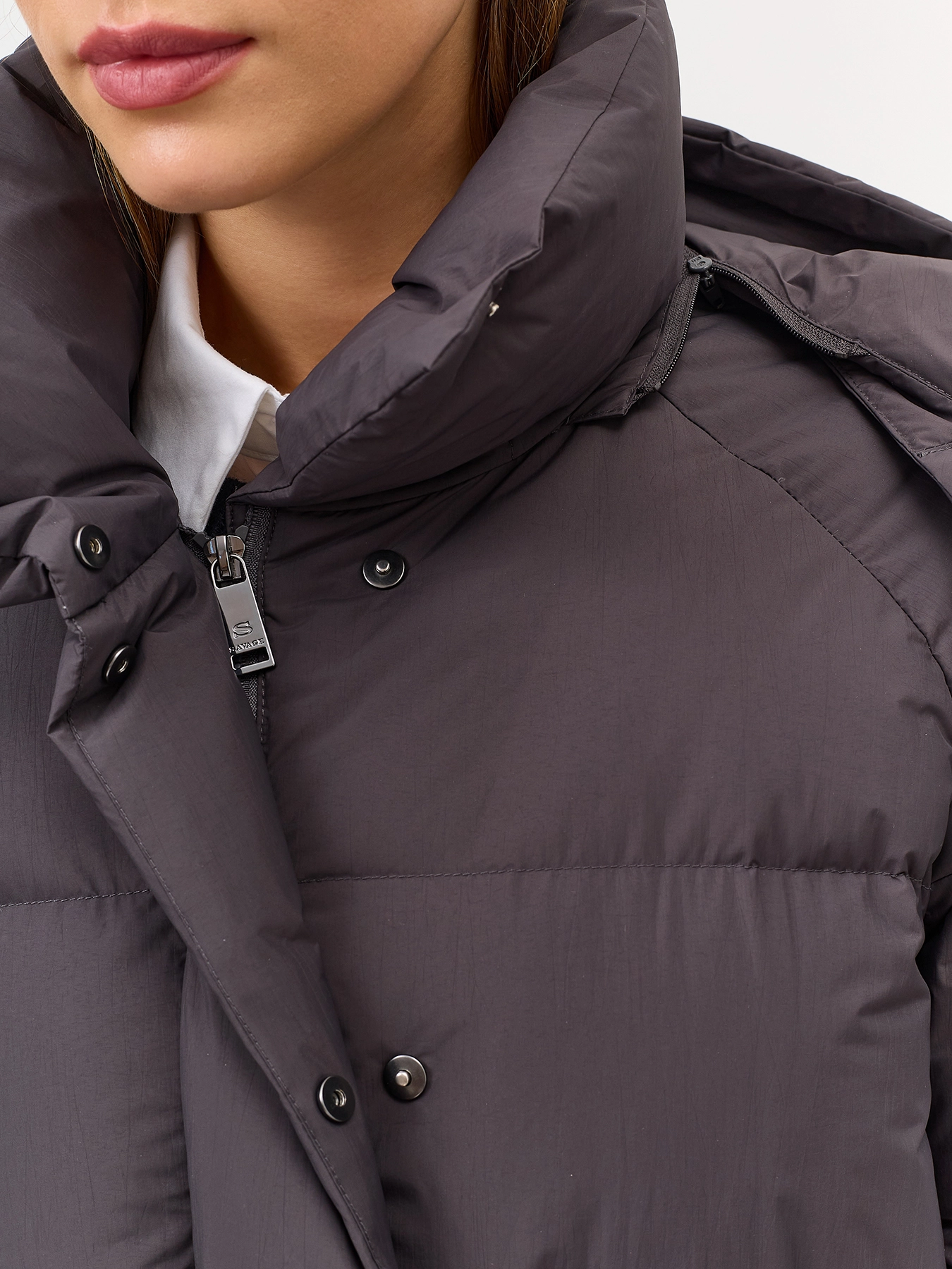 Пуховик из нейлона с крэш эффектом
