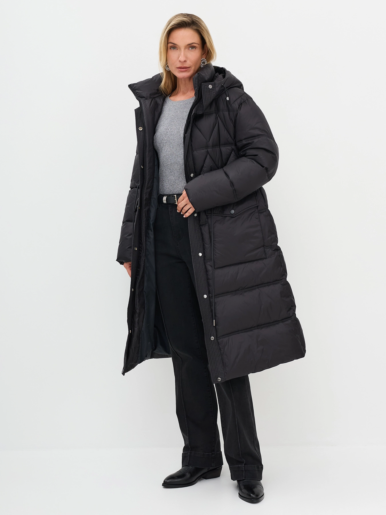 Удлиненная парка с фигурной стежкой
