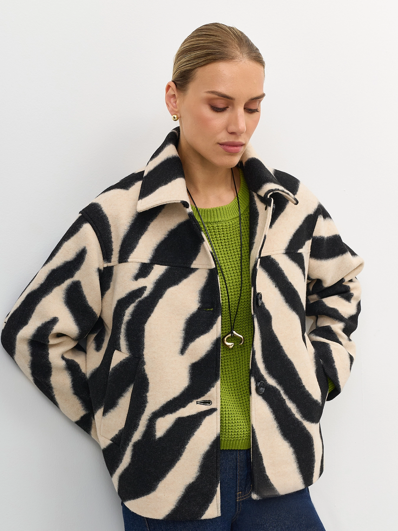 Укороченное пальто с анималистичным принтом